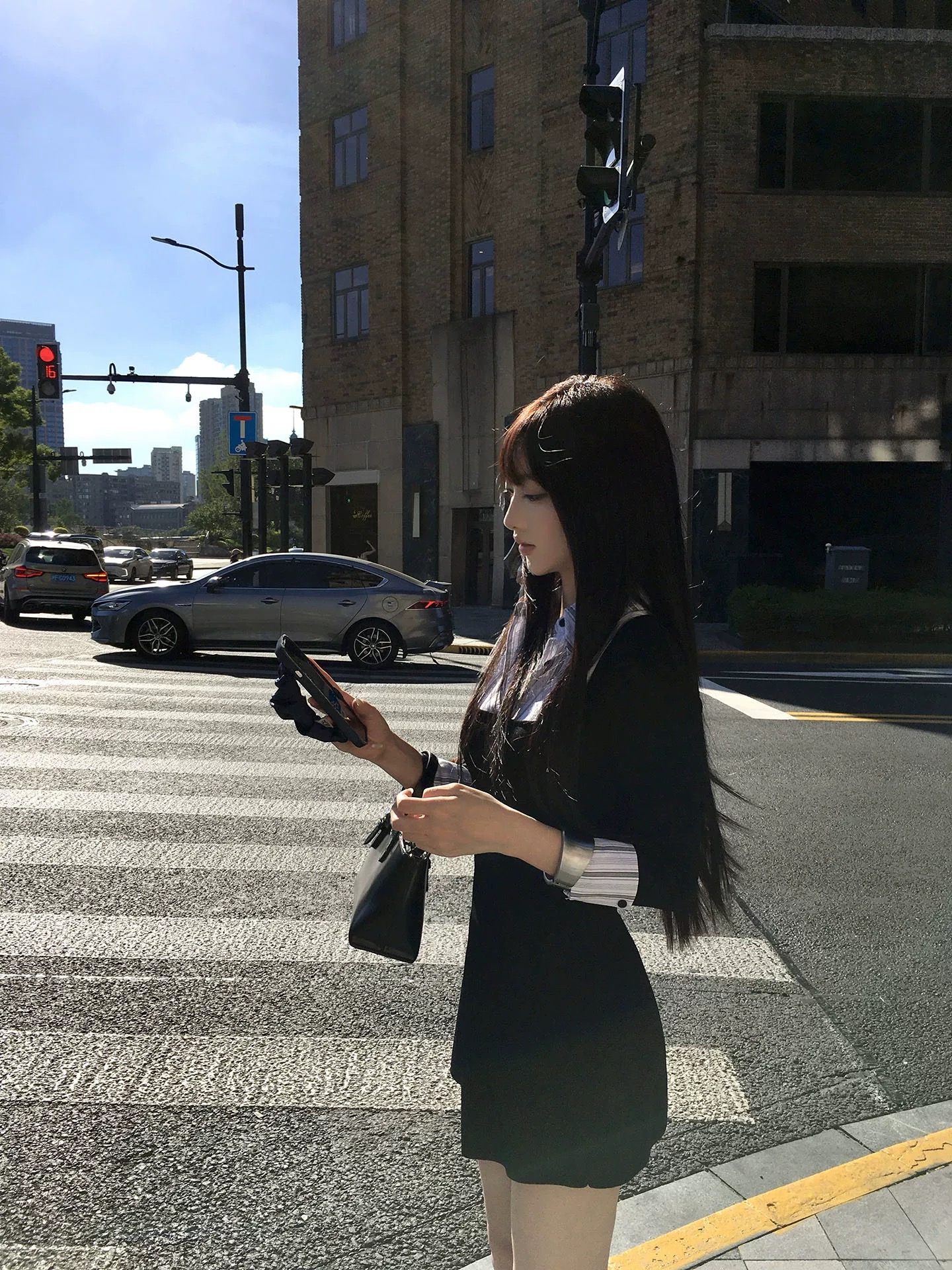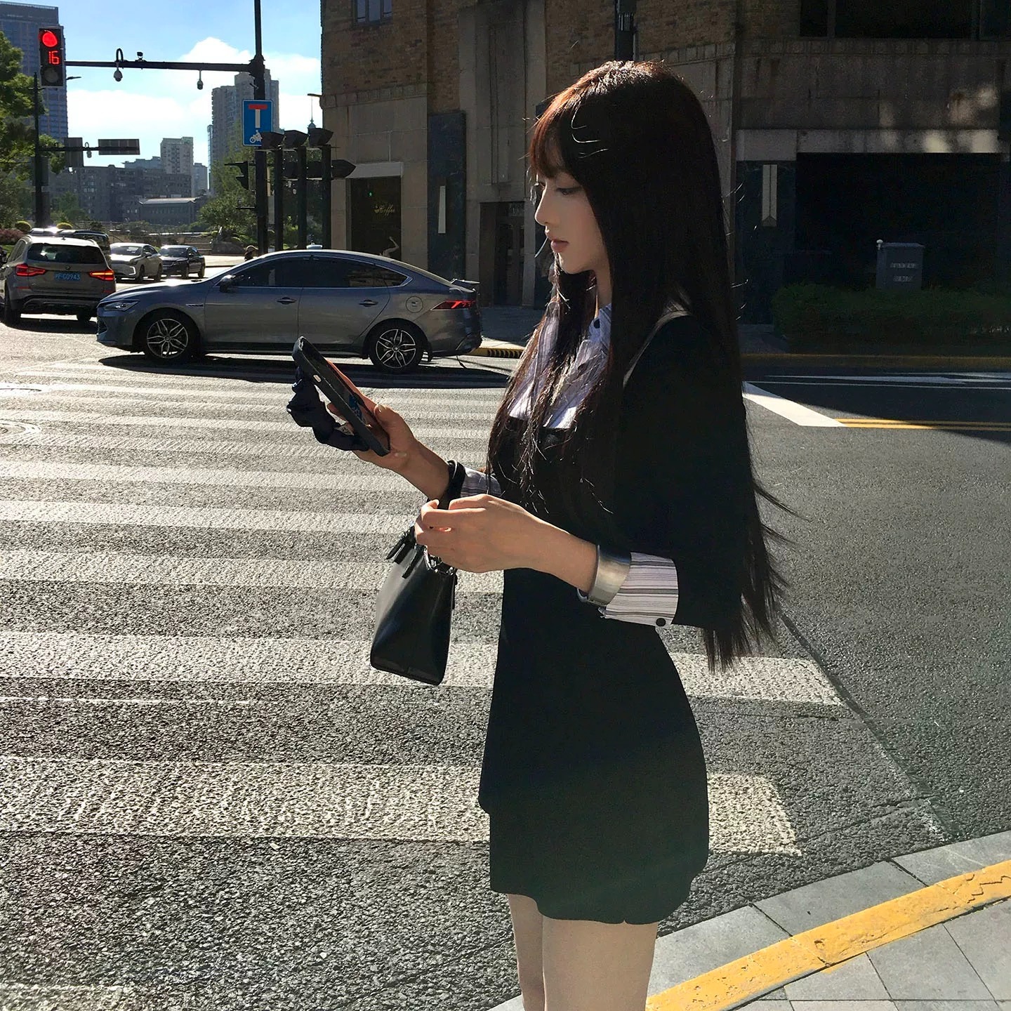 PF20444#黑色穿搭时尚气质显瘦轻奢华夫格长裙打底连衣裙女女裝貨源服裝...