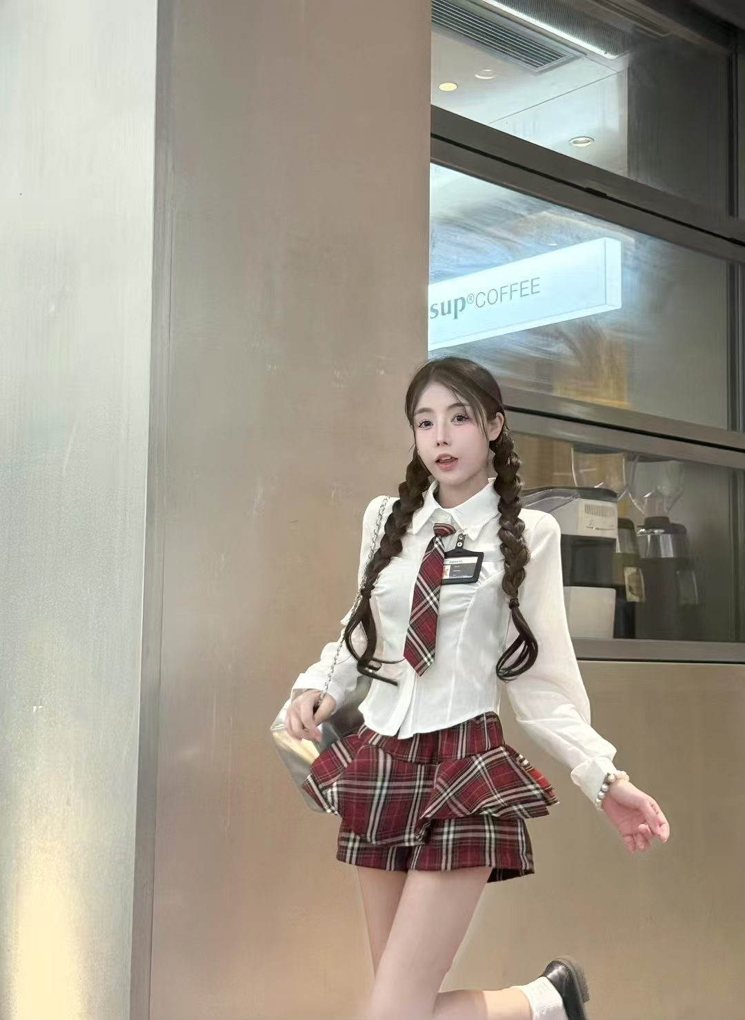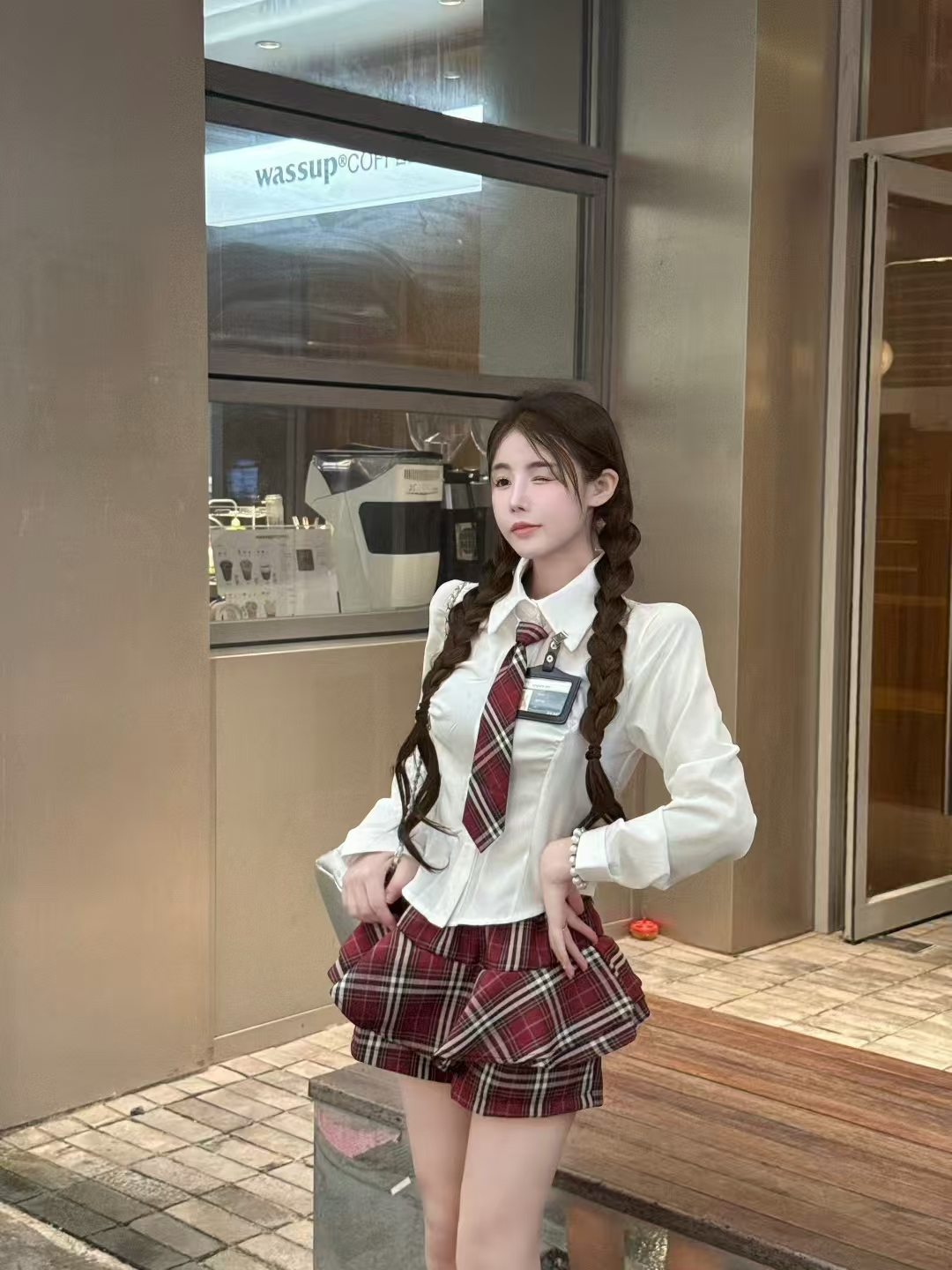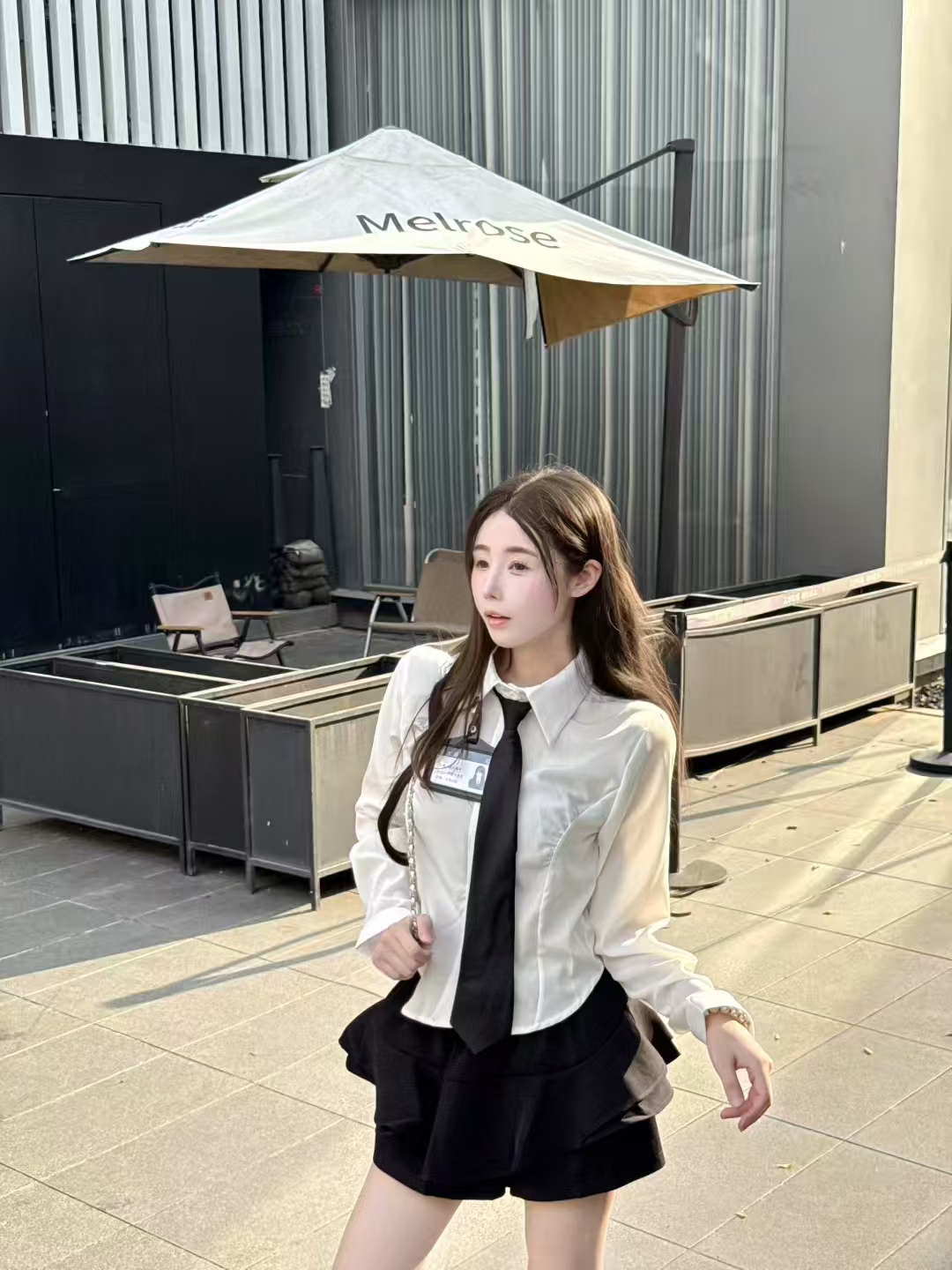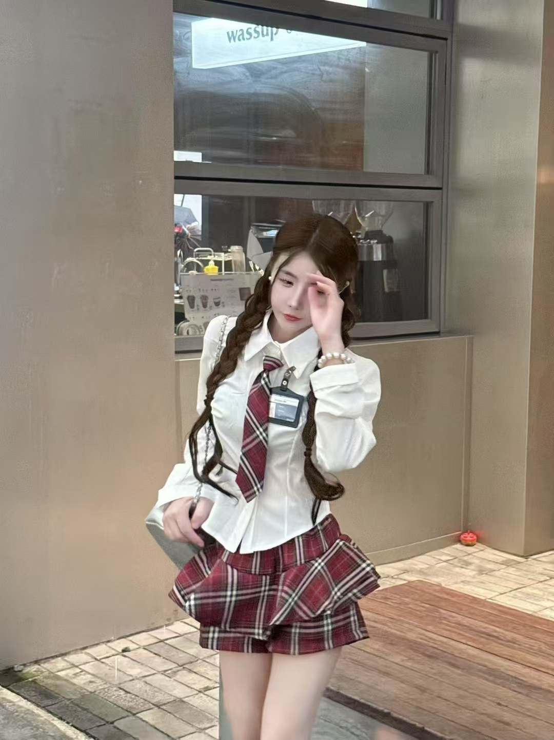 MY13582# POLO领气质修身衬衣+高腰短裙学院风辣妹套装女裝貨源服裝批發