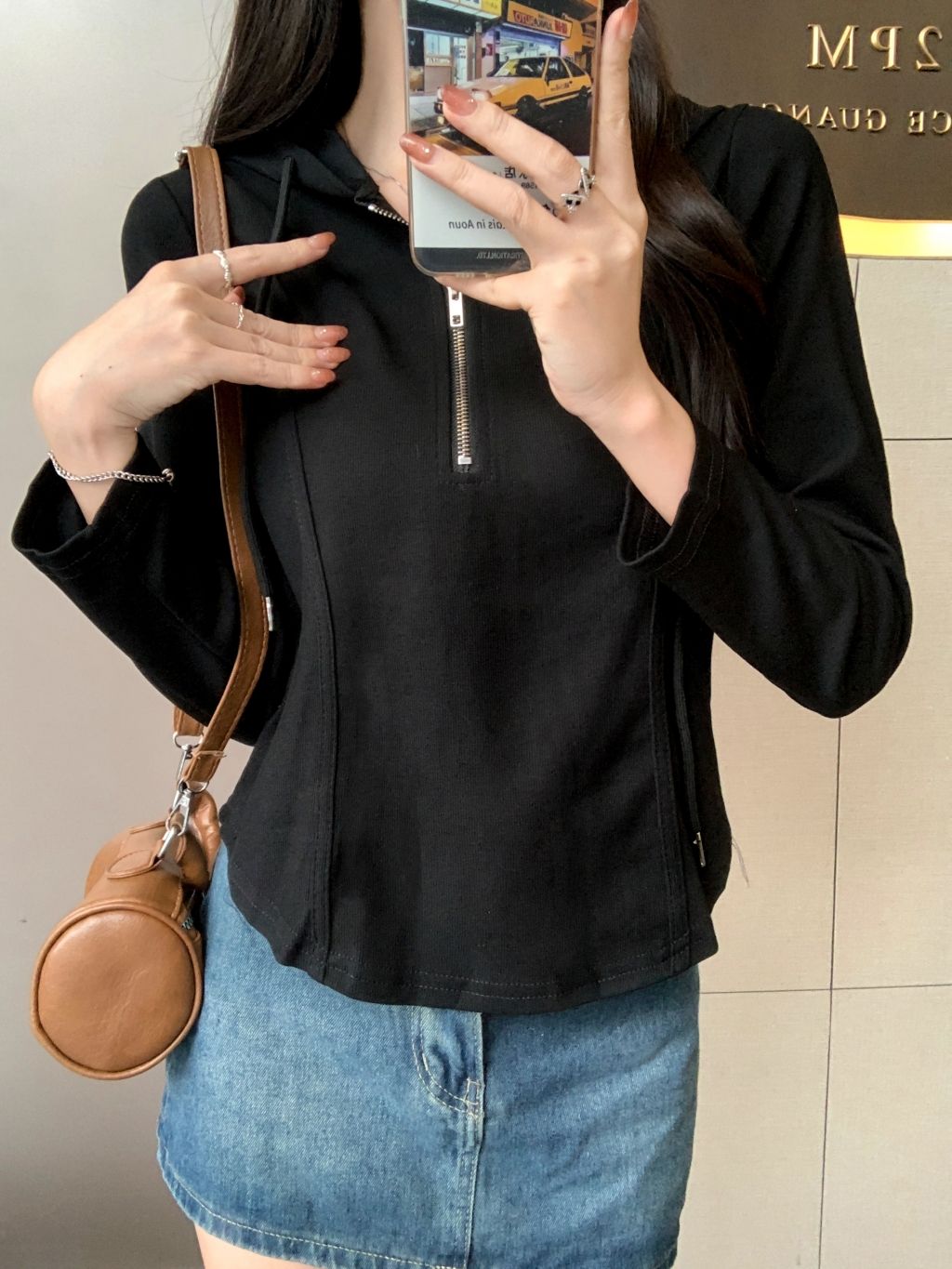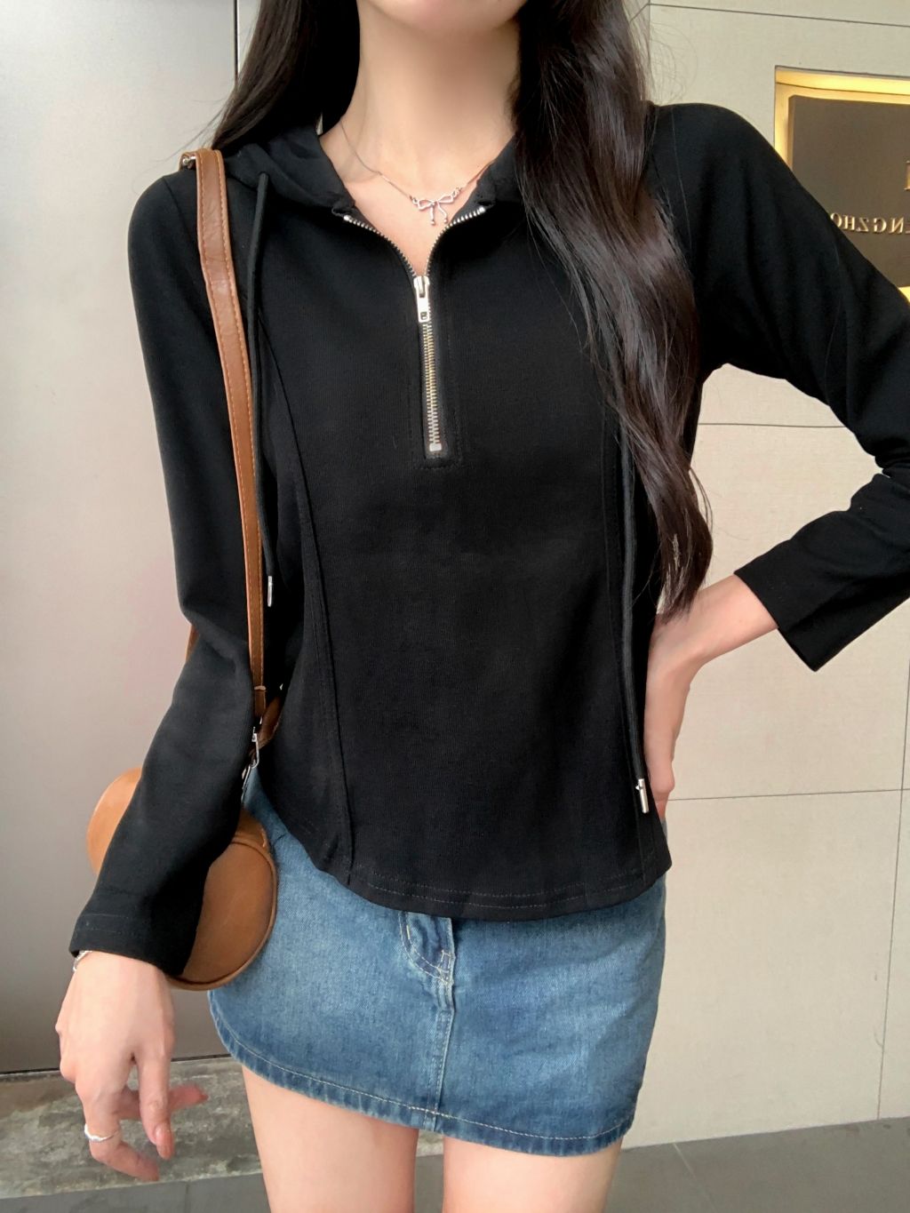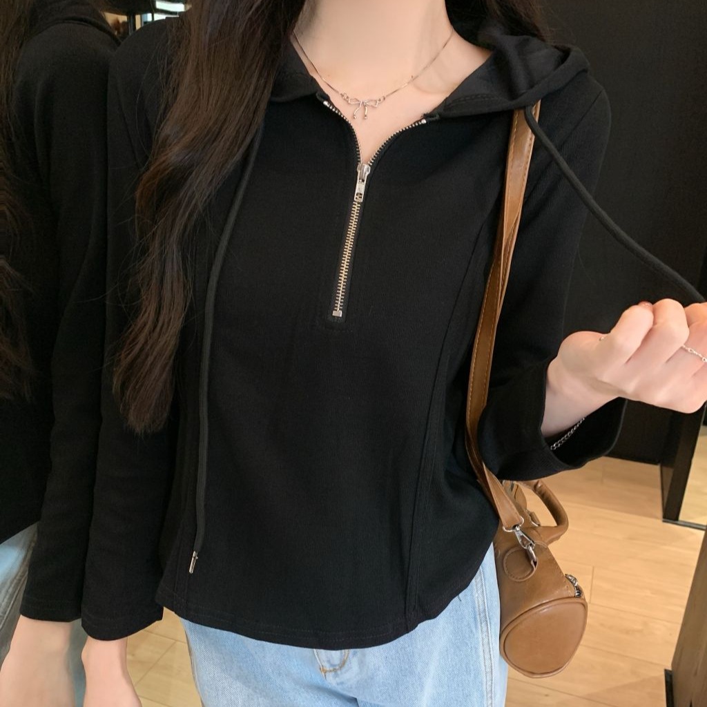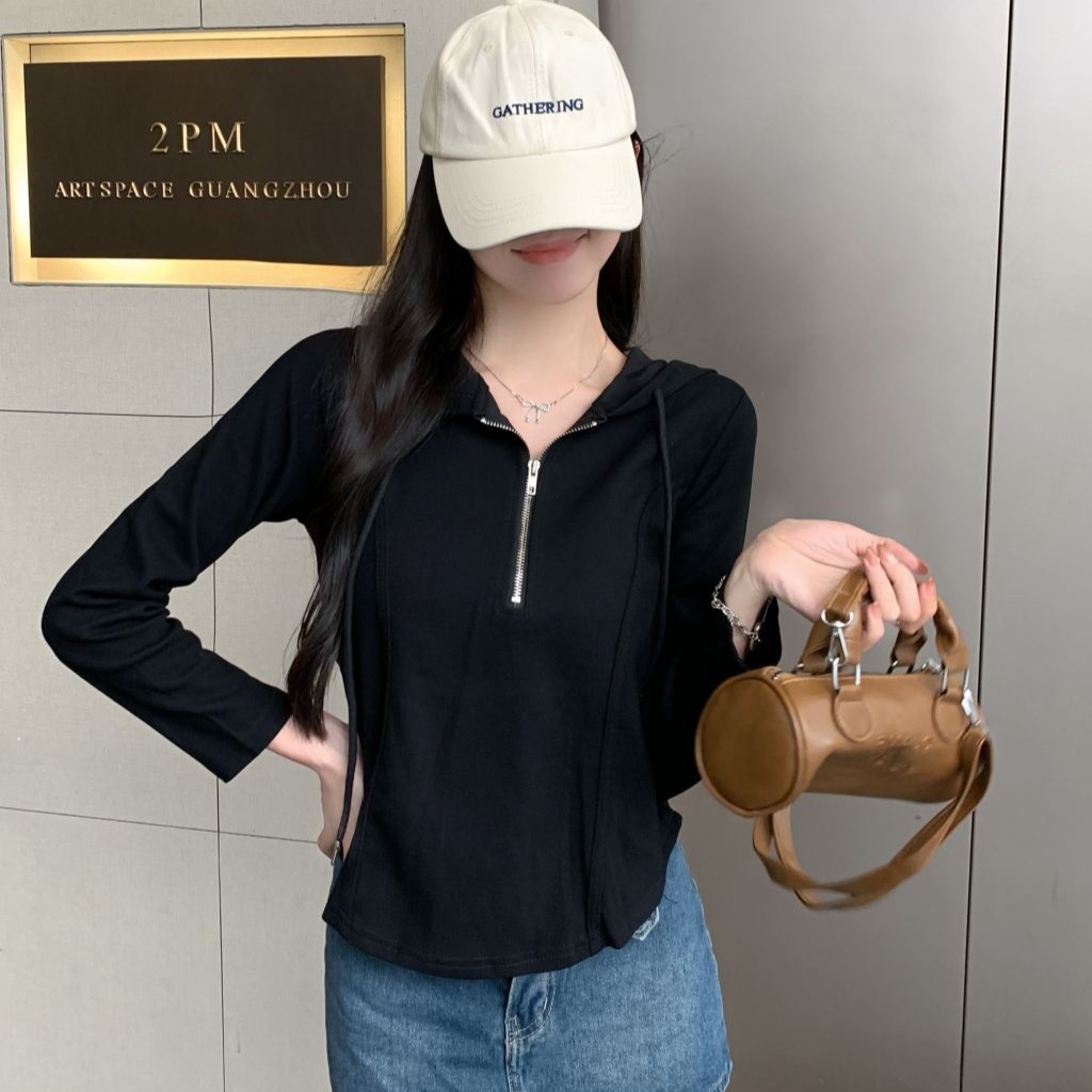 MY15848# 华棉复合 内搭短款白色连帽卫衣女打底衫帽衫女裝貨源服裝批發