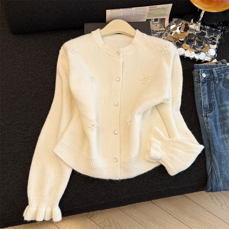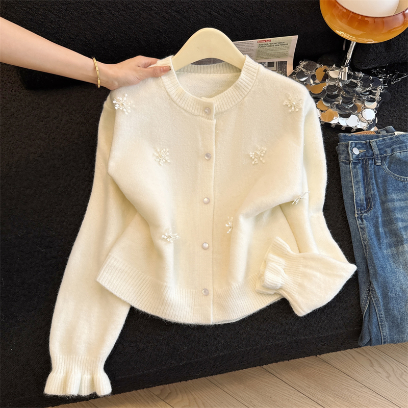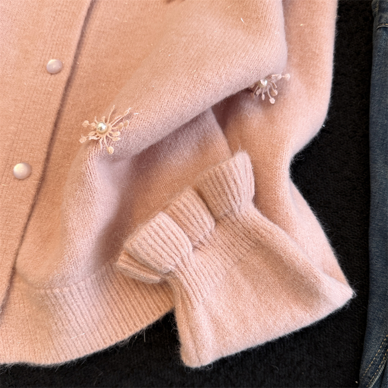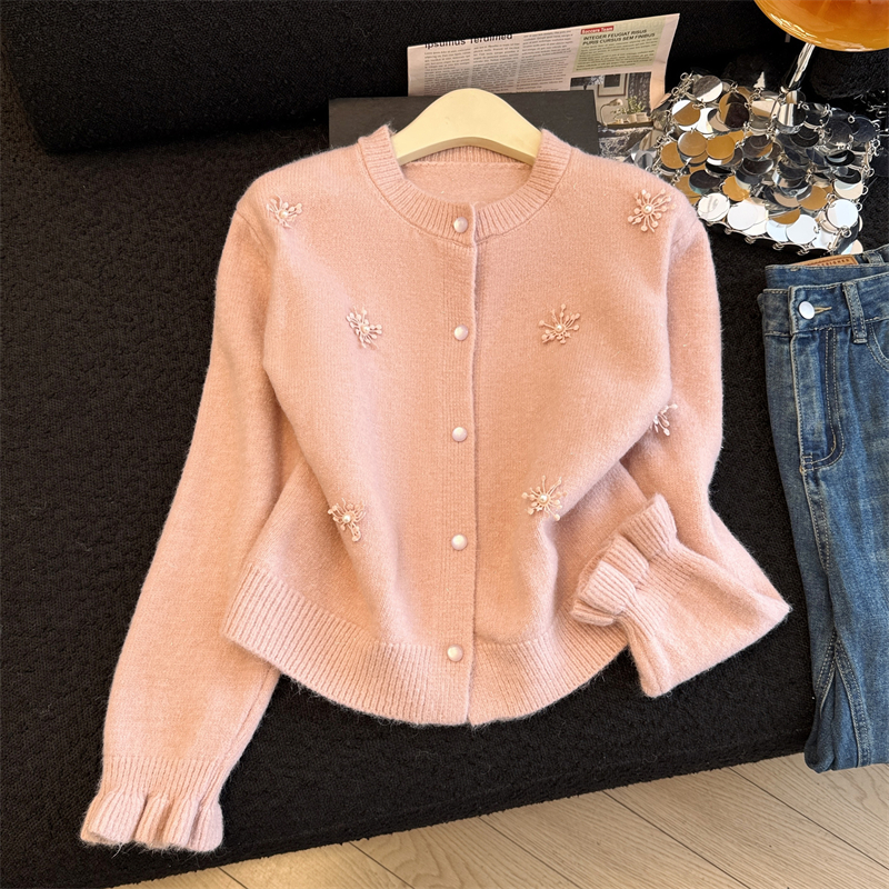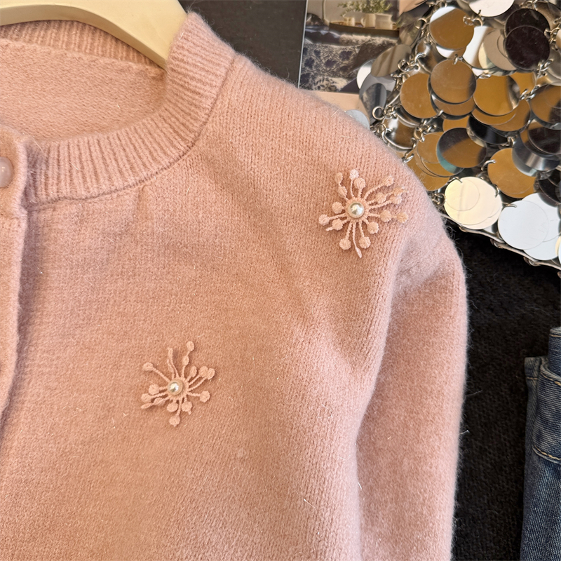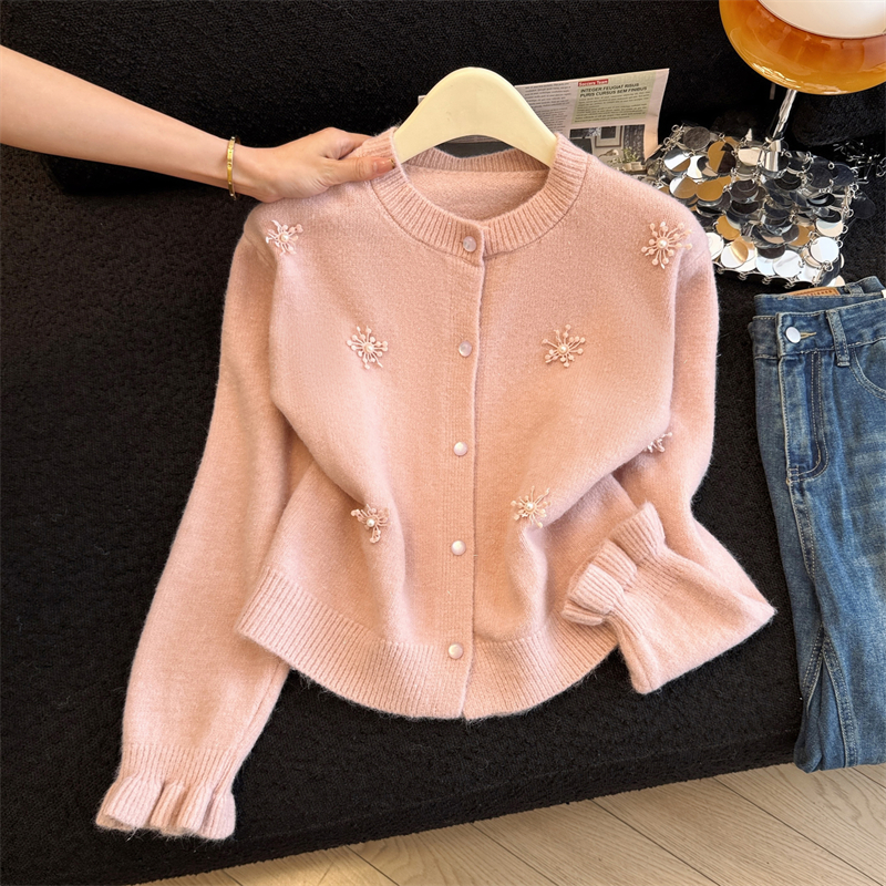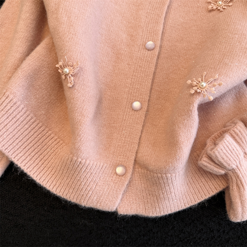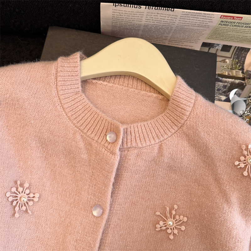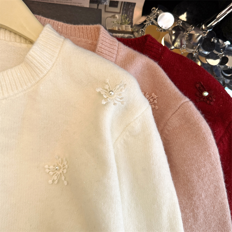 MY16212# 新年红重工钉珠毛衣外套新款设计感洋气本命年针织衫女裝貨源服裝批發