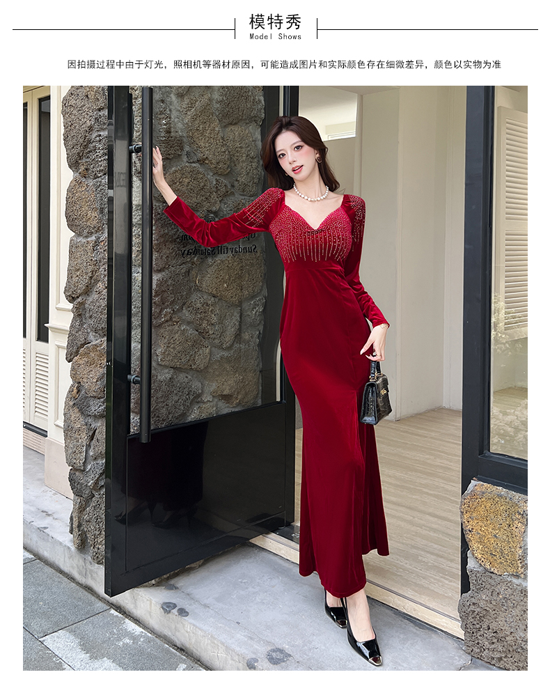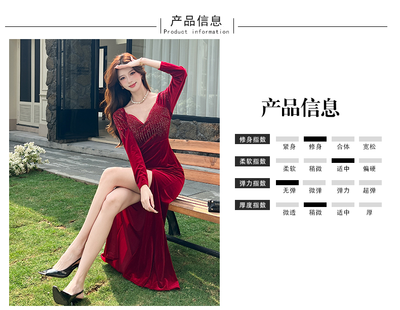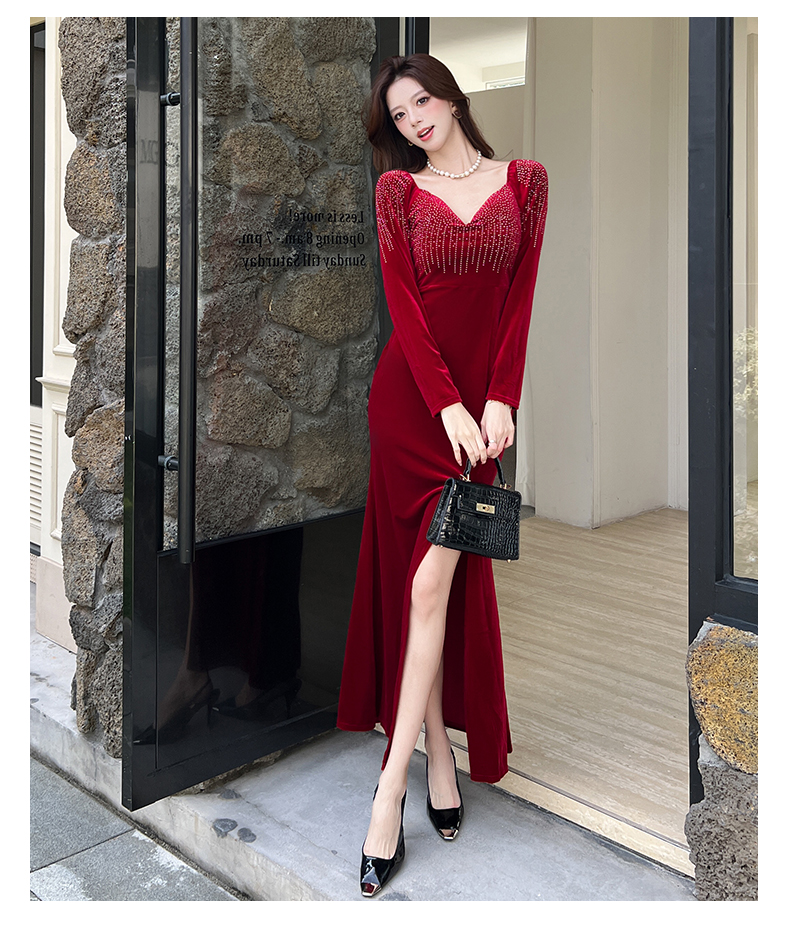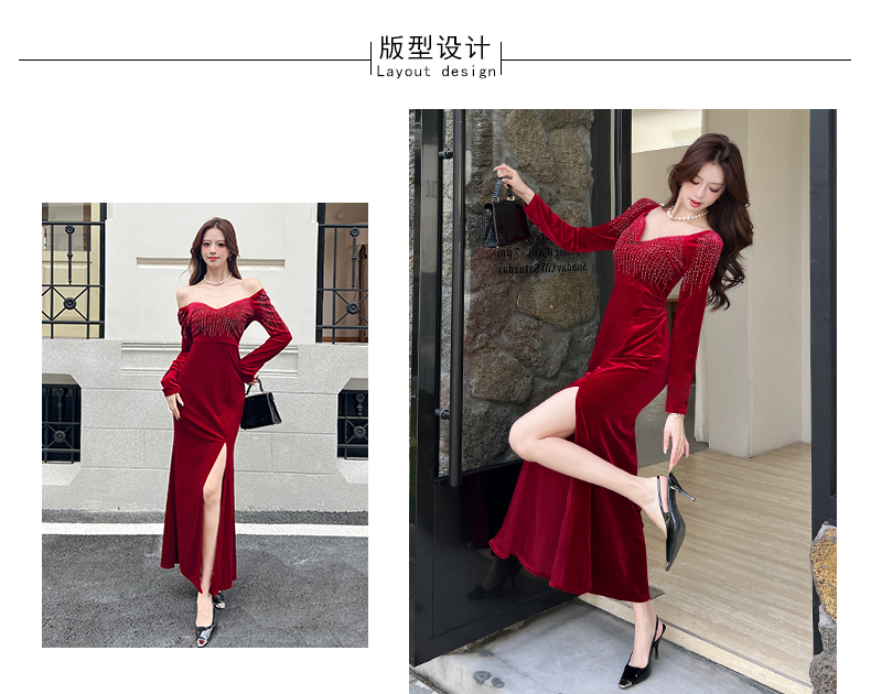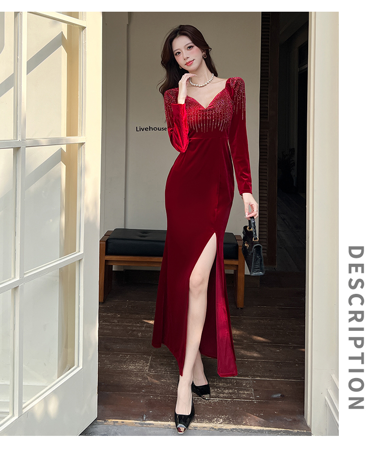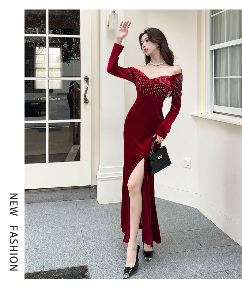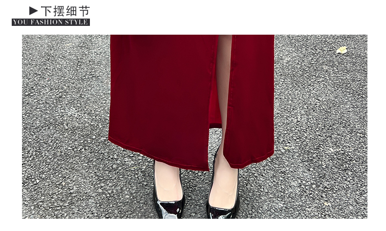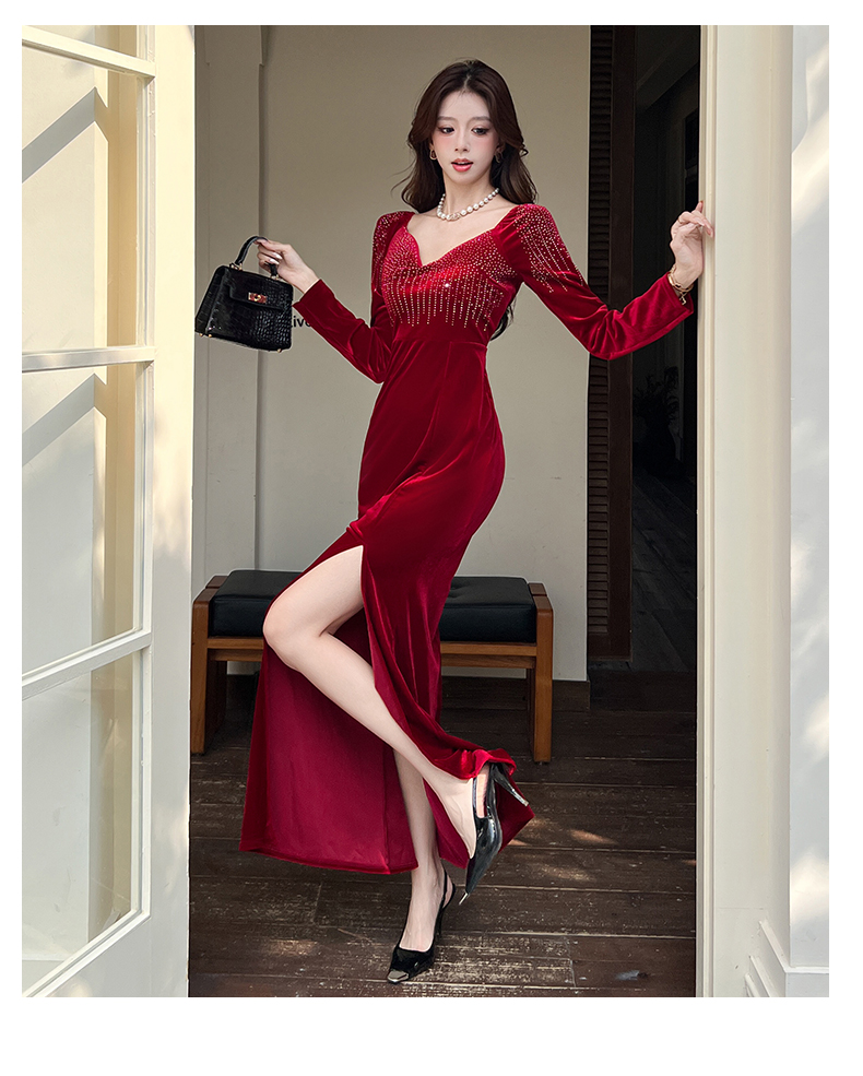 MY16221# 时尚气质金丝绒长裙开叉连衣裙女裝貨源服裝批發
