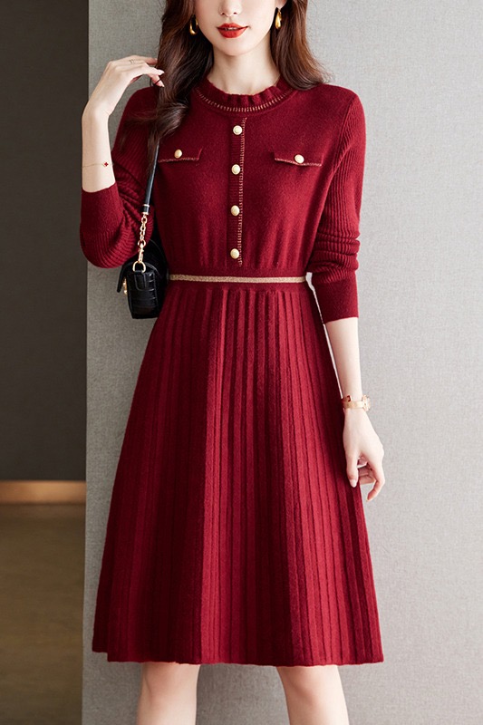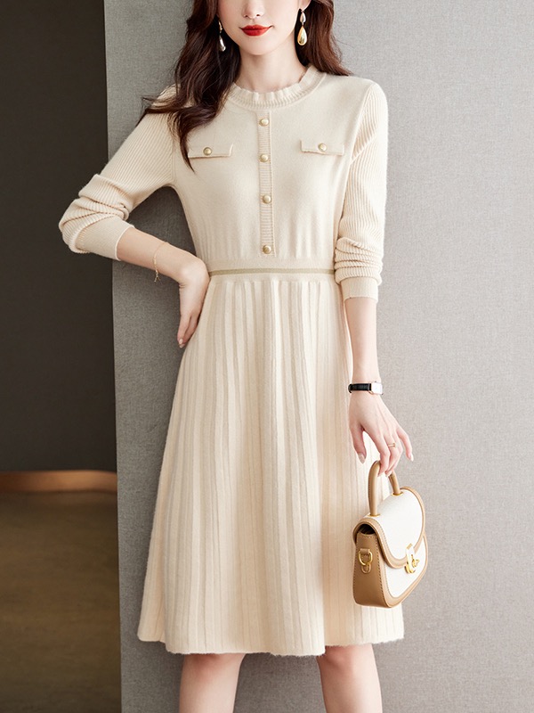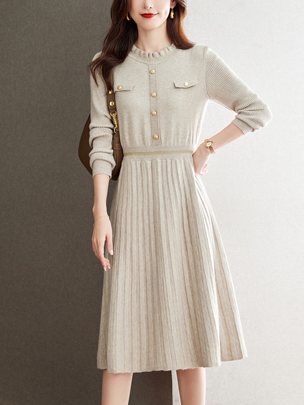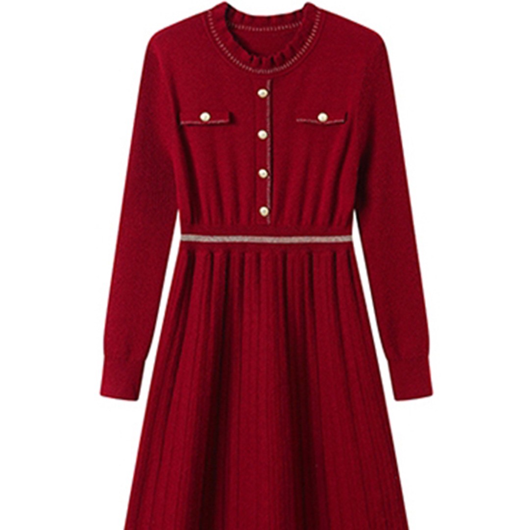 MY16232# 配大衣针织毛线连衣裙新款收腰显瘦外穿打底毛衣裙女裝貨源服裝批發