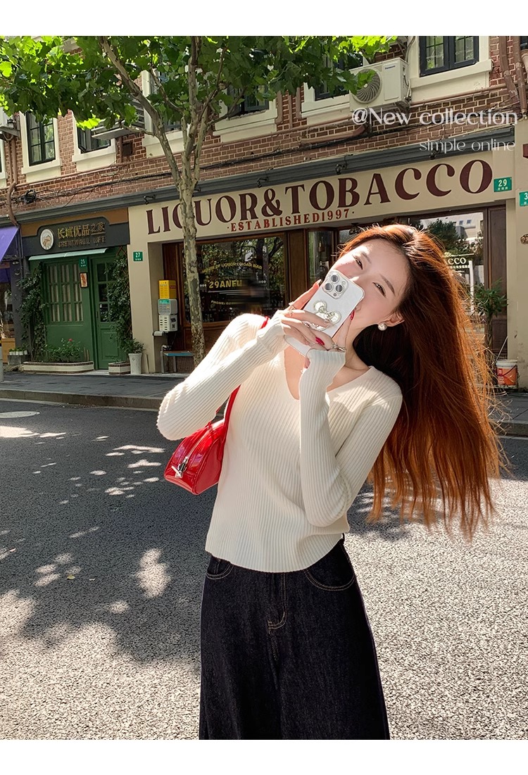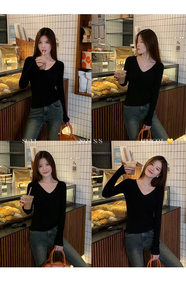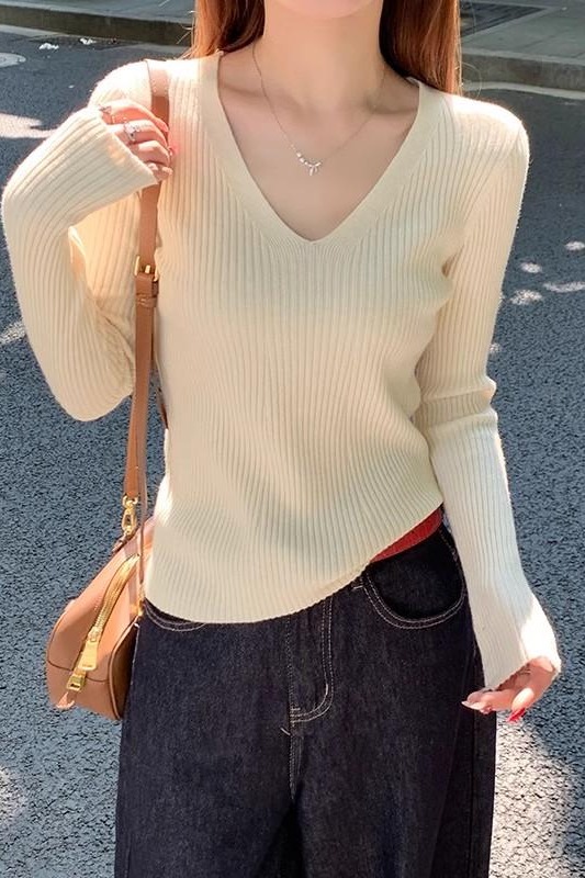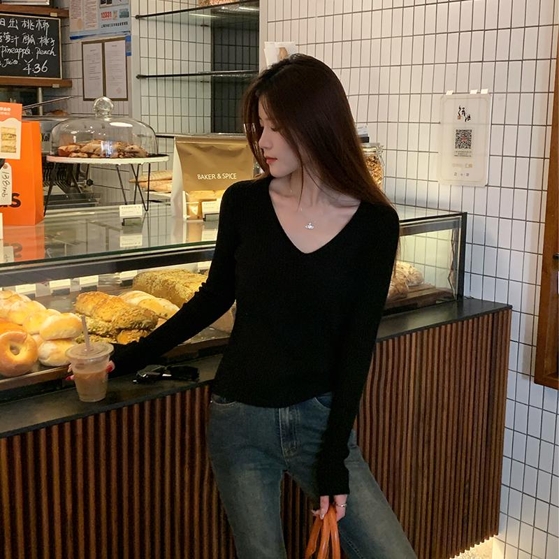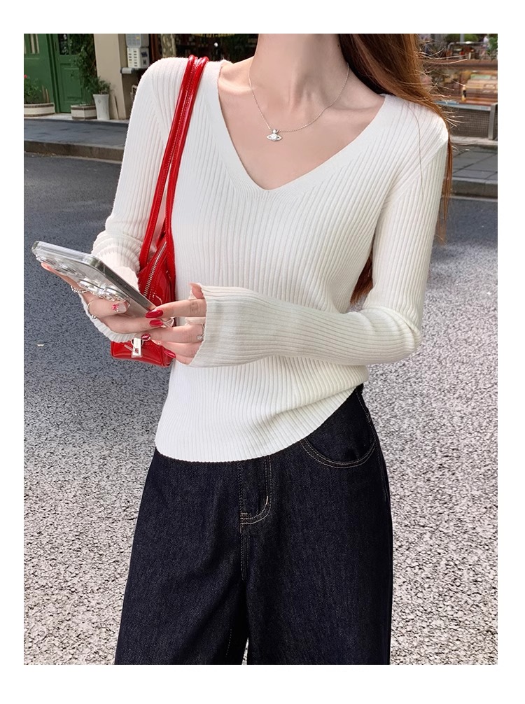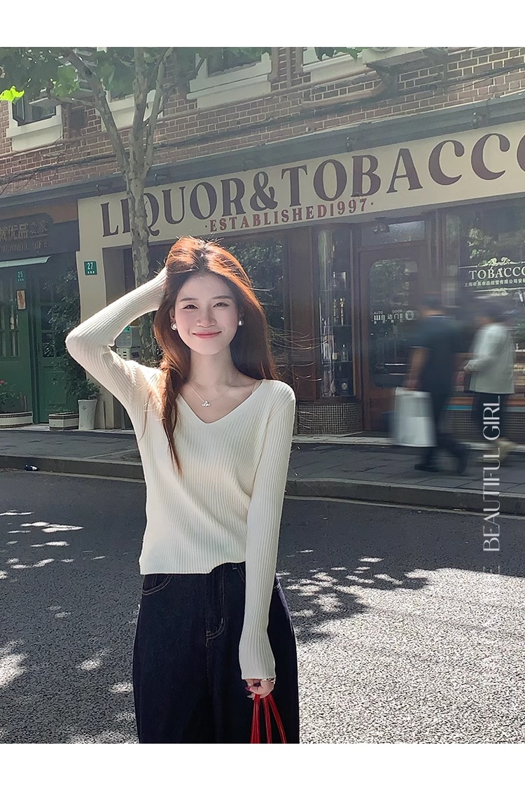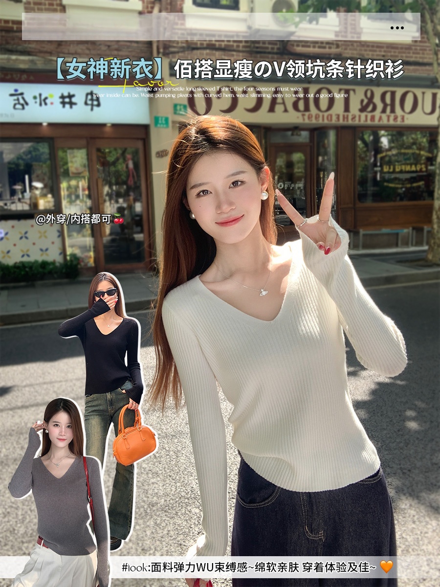MY16254# 粉色v领针织衫新款穿搭风衣内搭长袖打底毛衣秋冬上衣女裝貨源服裝批發