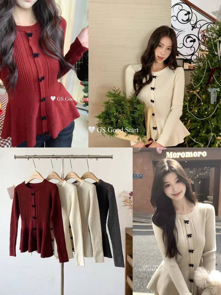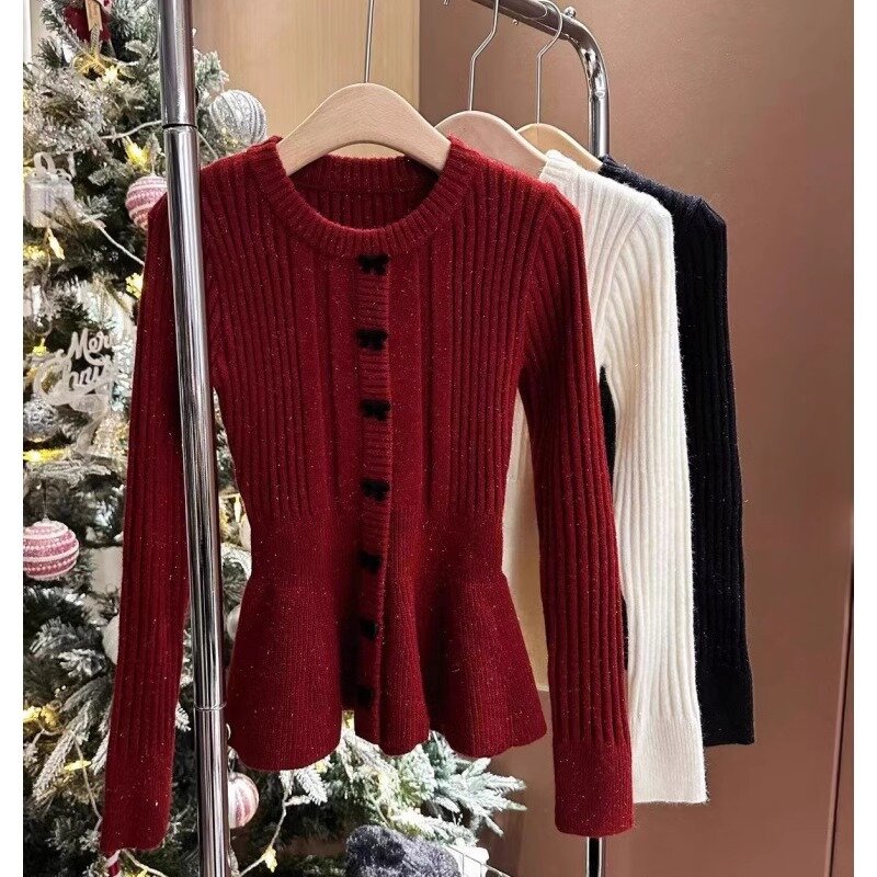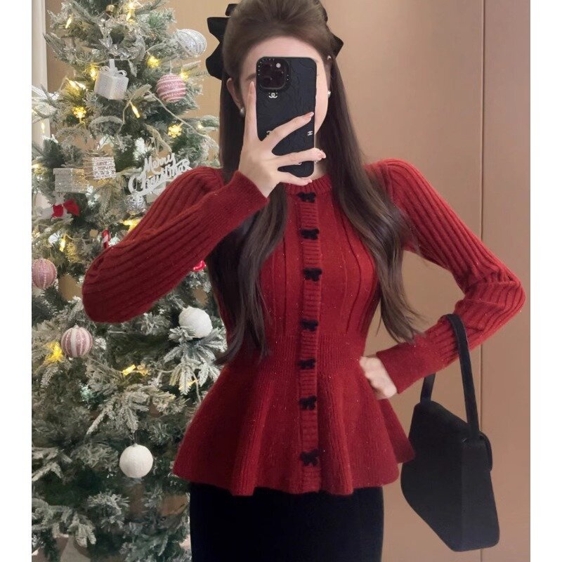 MY16282# 新年爆款龙年圣诞穿搭针织开衫内搭打底衫上衣红色毛衣女女裝貨源服裝批發