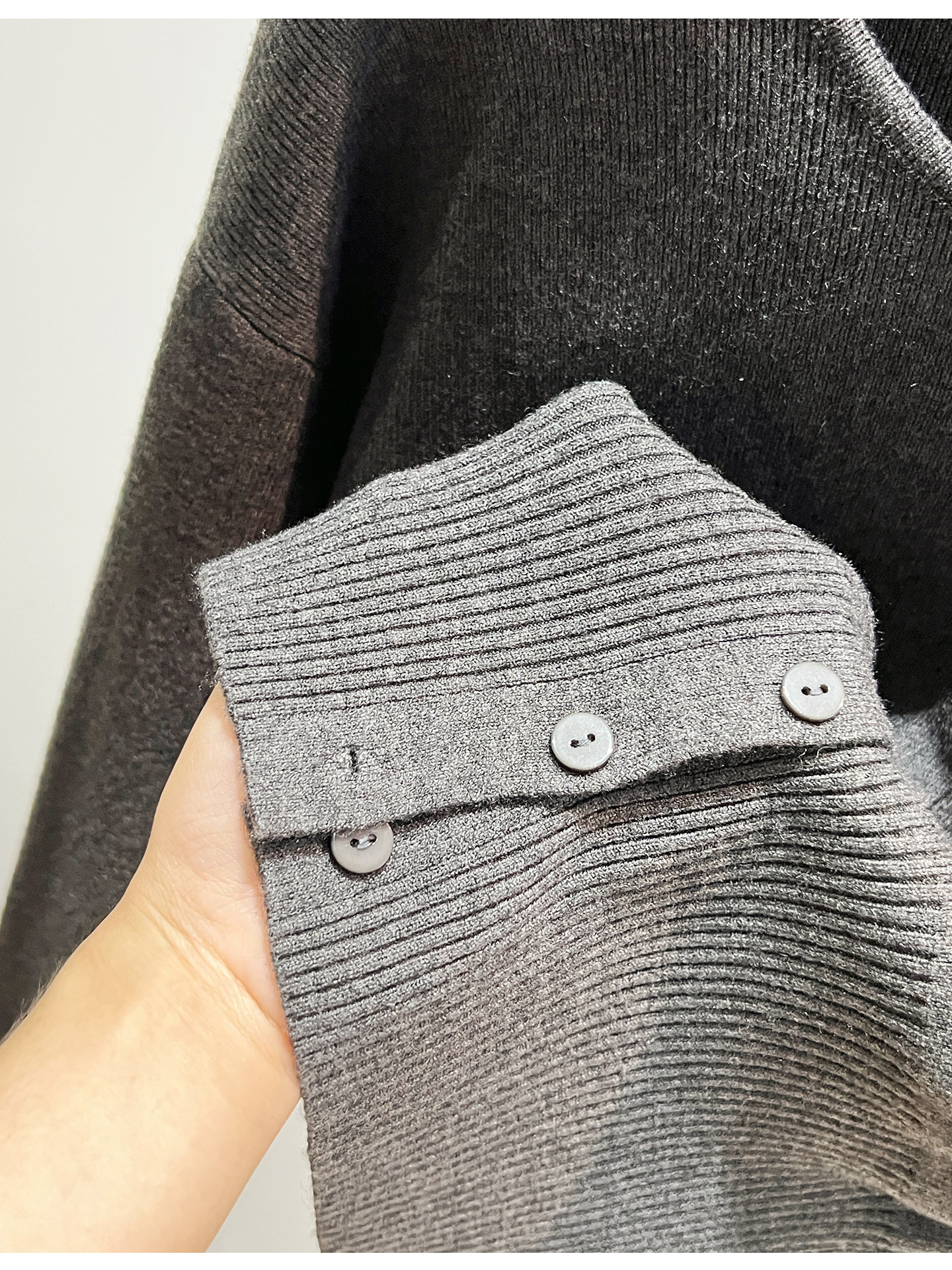 MY16252# 乌77拼接木耳边假两件v领毛衣女系带慵懒感软糯加厚短款开...