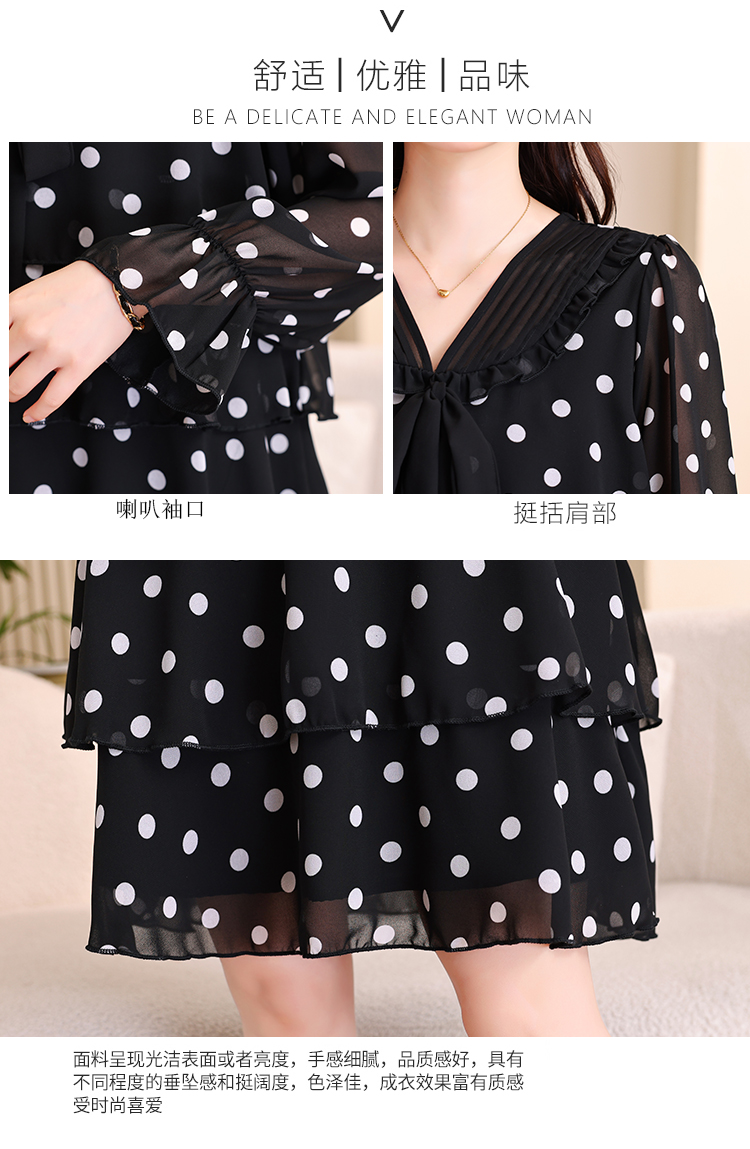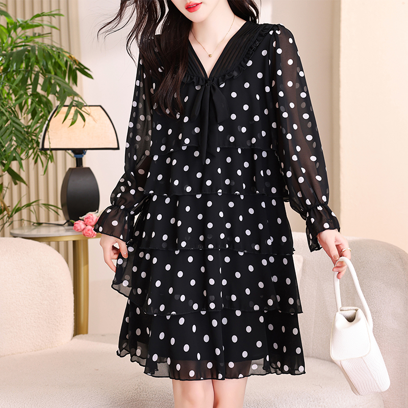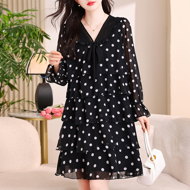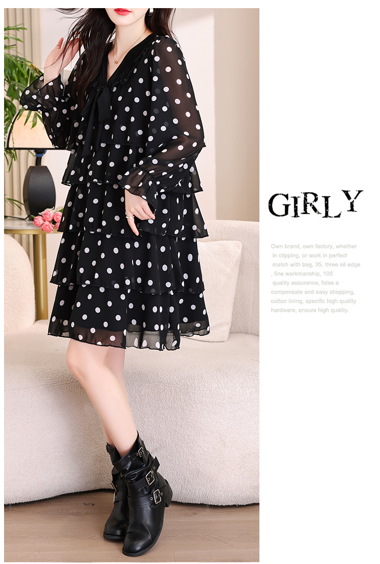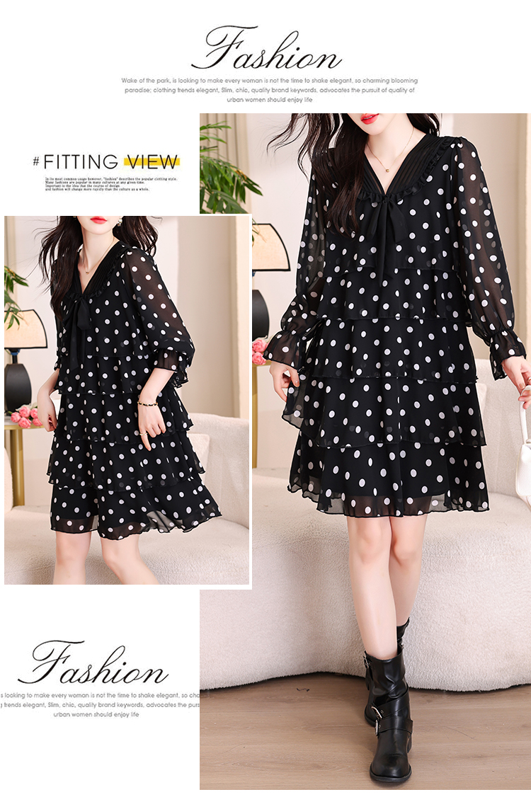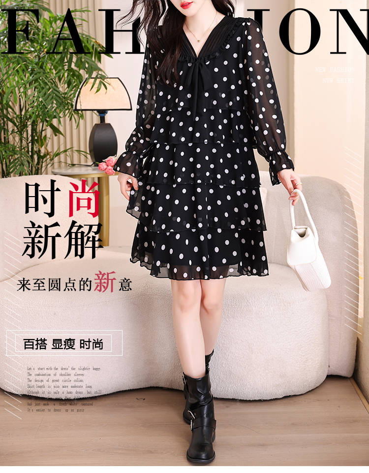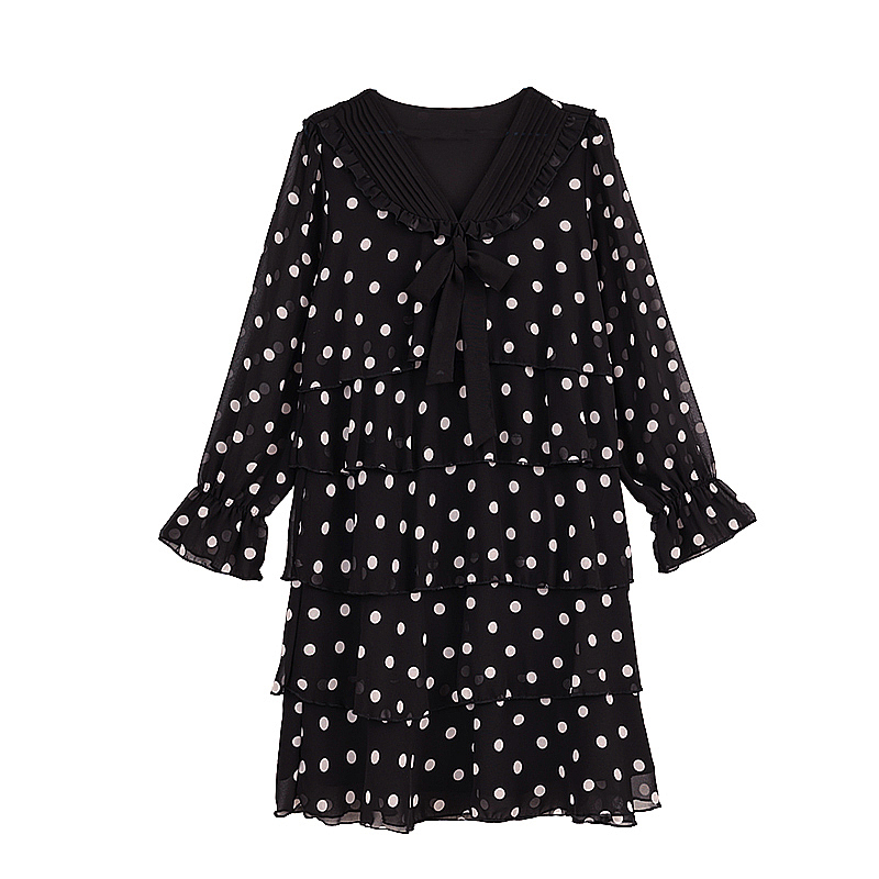 MY16286# 大码娃娃领雪纺连衣裙新款胖mm遮肉显瘦长袖蛋糕裙女裝貨源服裝批發