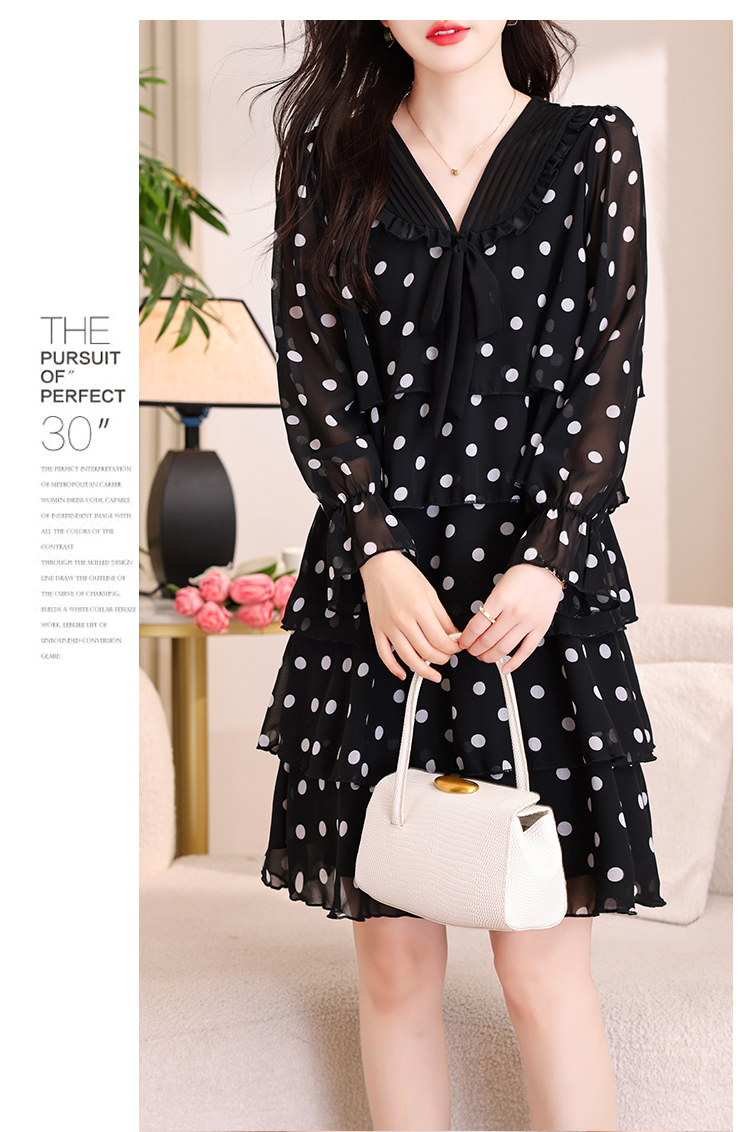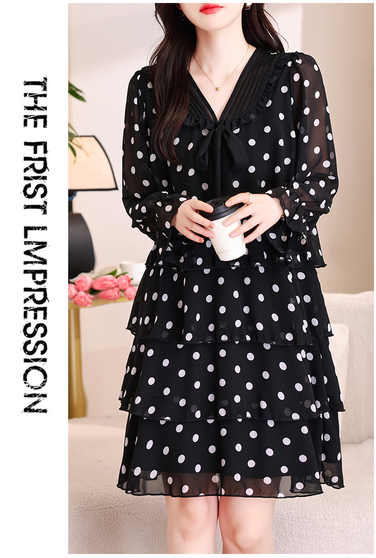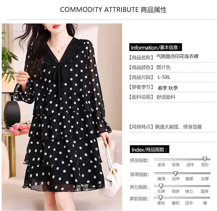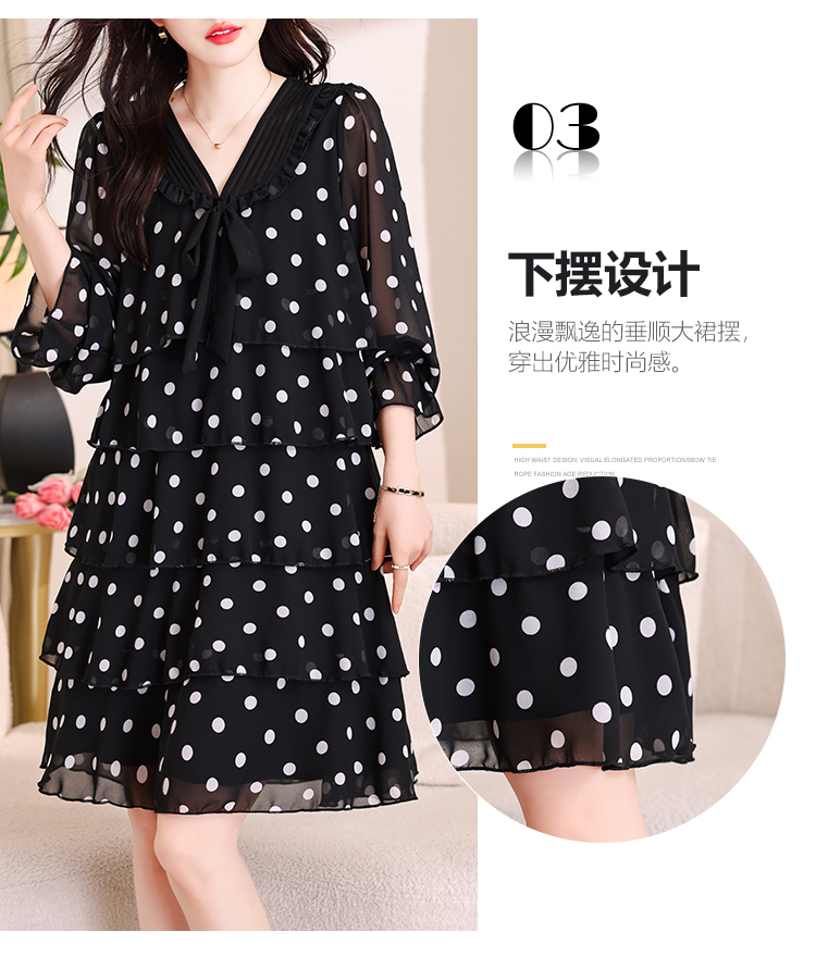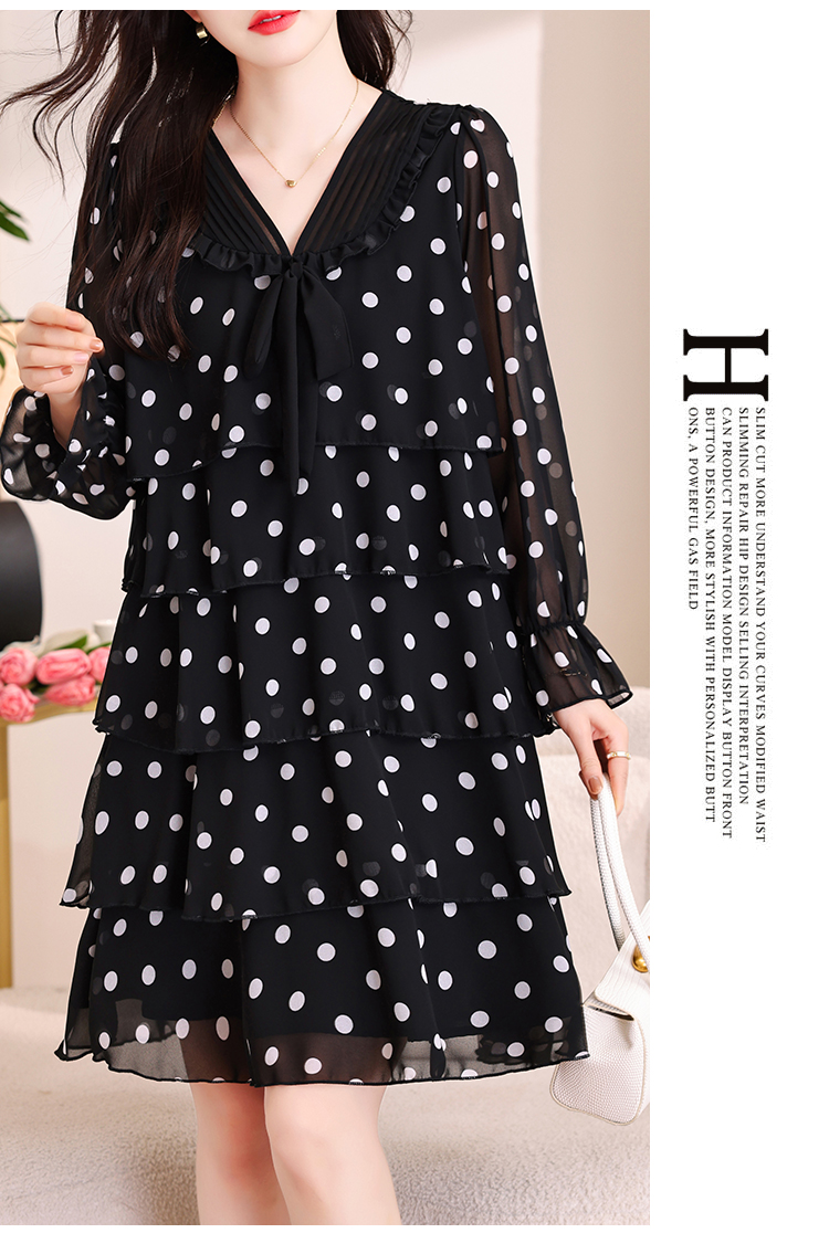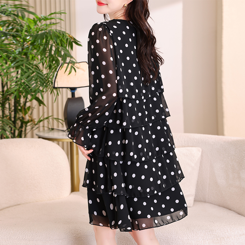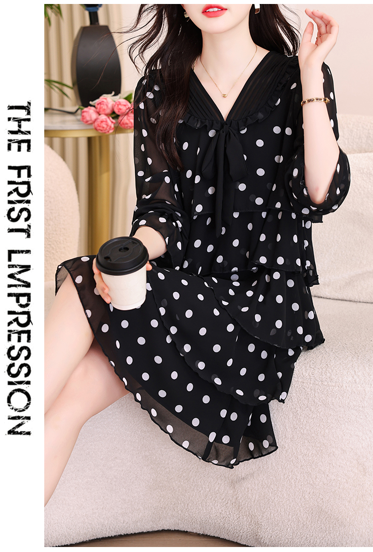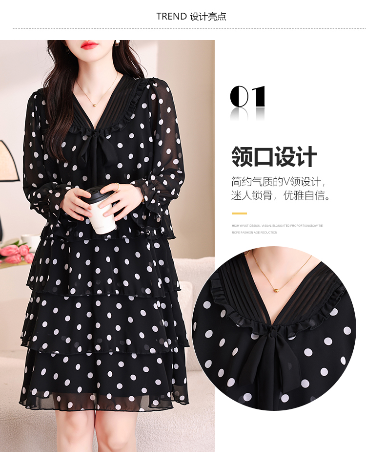 MY16286# 大码娃娃领雪纺连衣裙新款胖mm遮肉显瘦长袖蛋糕裙女裝貨源服裝批發