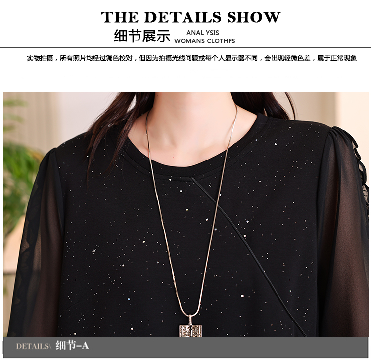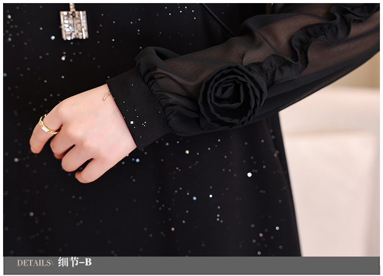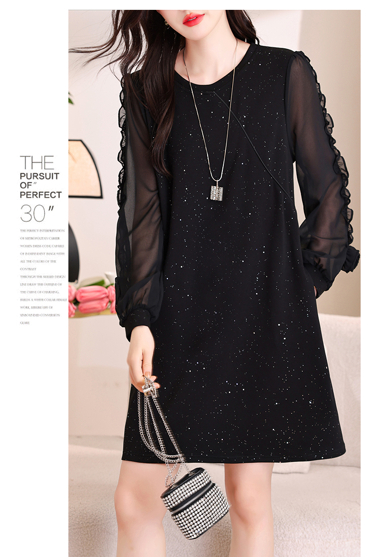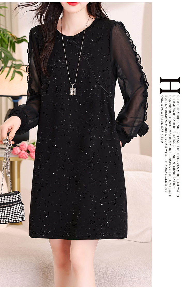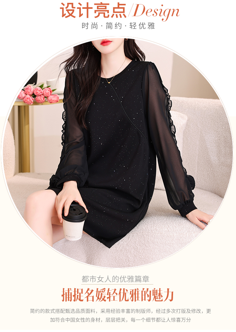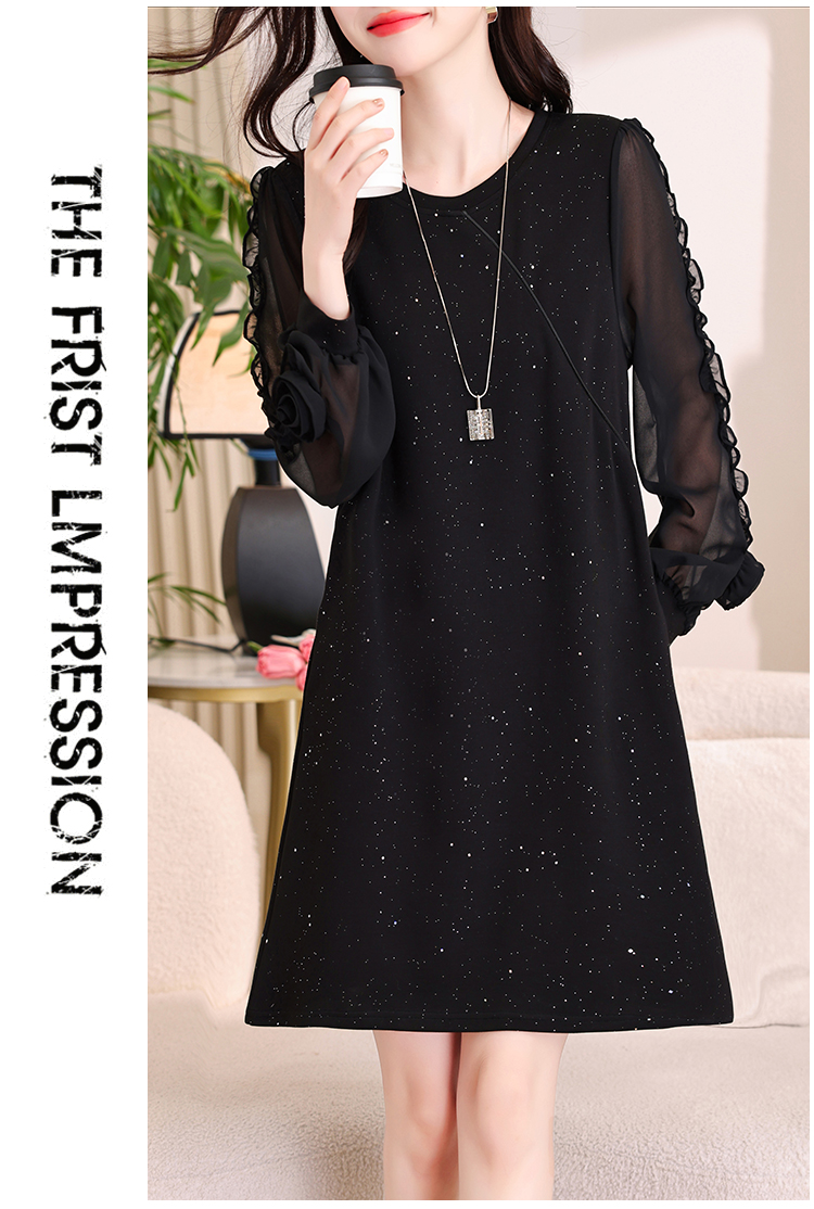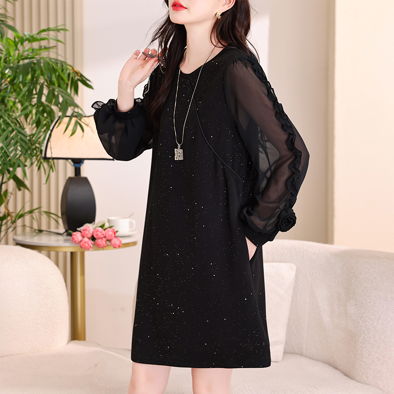 MY16288# 大码连衣裙新款宽松显瘦胖mm花朵袖亮闪闪中长裙女裝貨源服裝批發