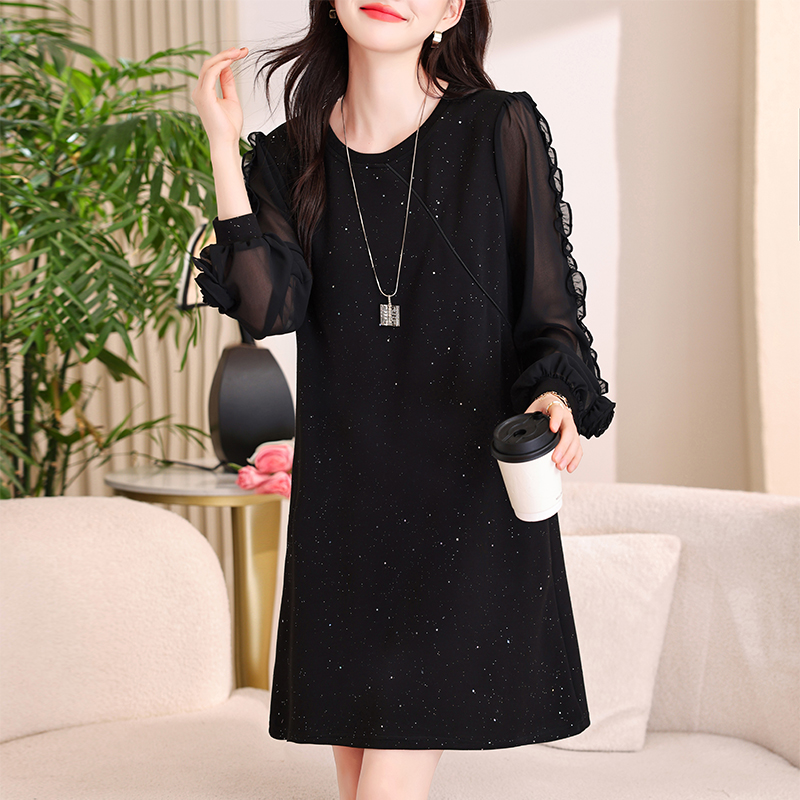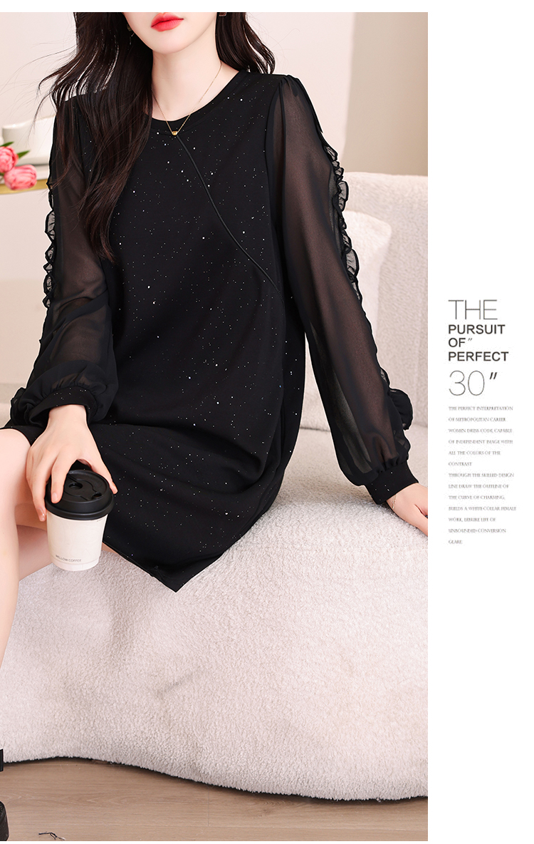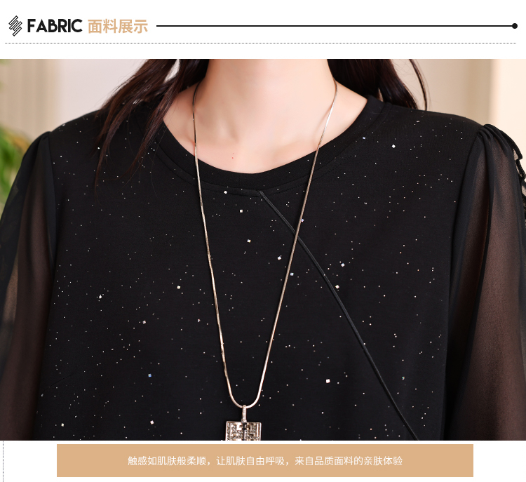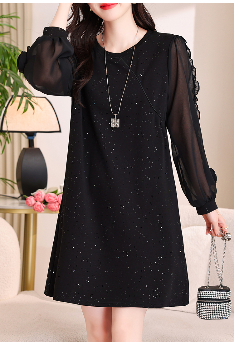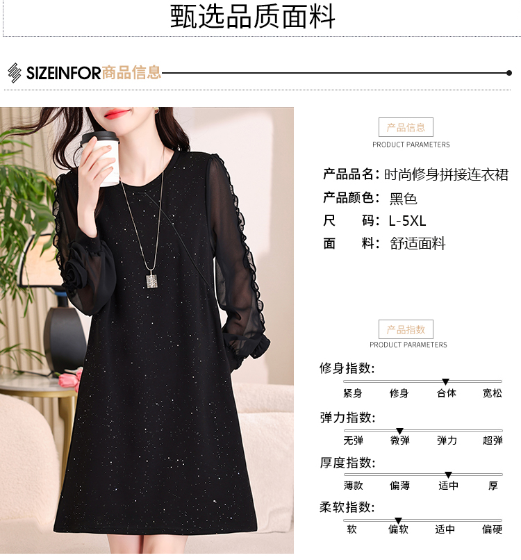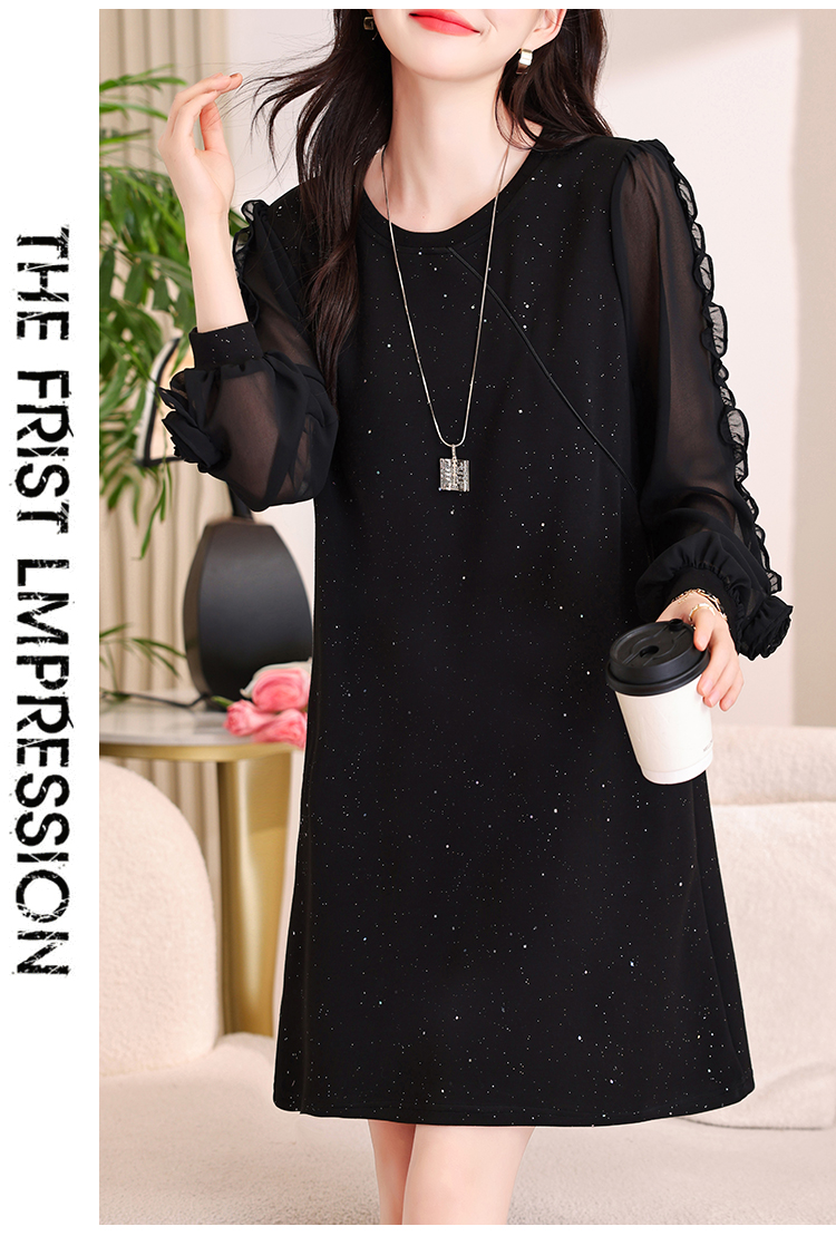 MY16288# 大码连衣裙新款宽松显瘦胖mm花朵袖亮闪闪中长裙女裝貨源服裝批發
