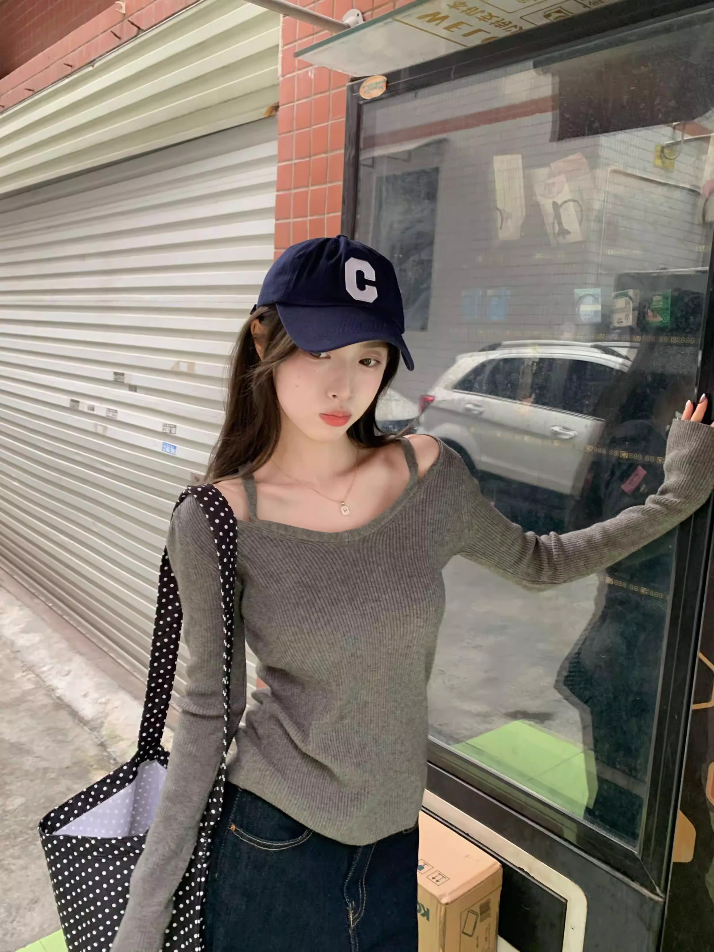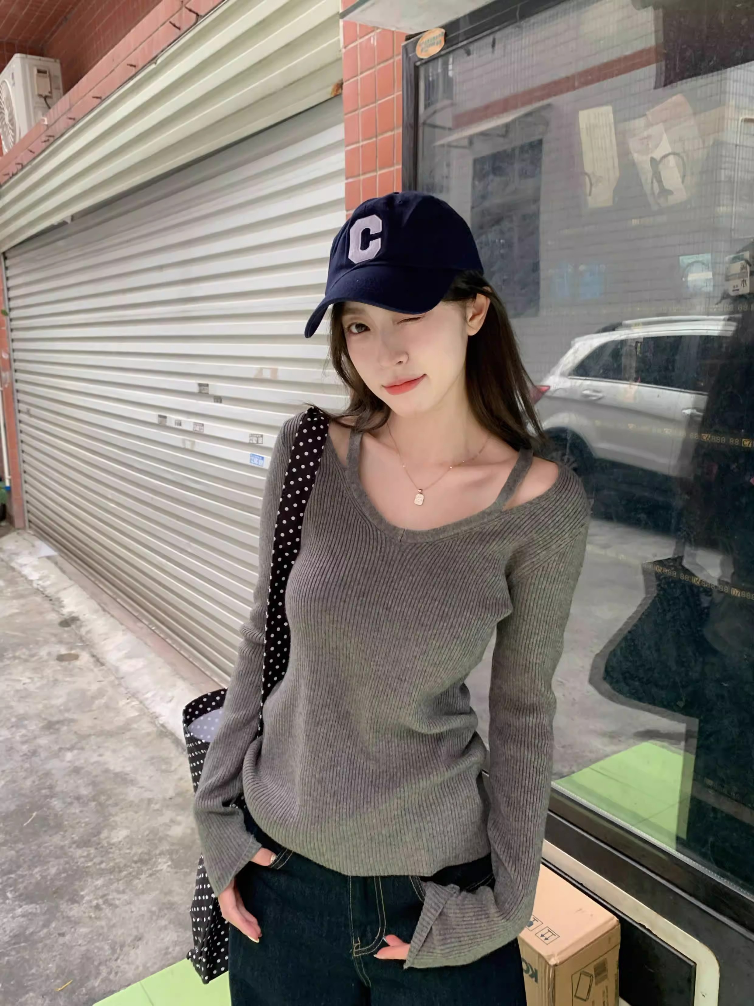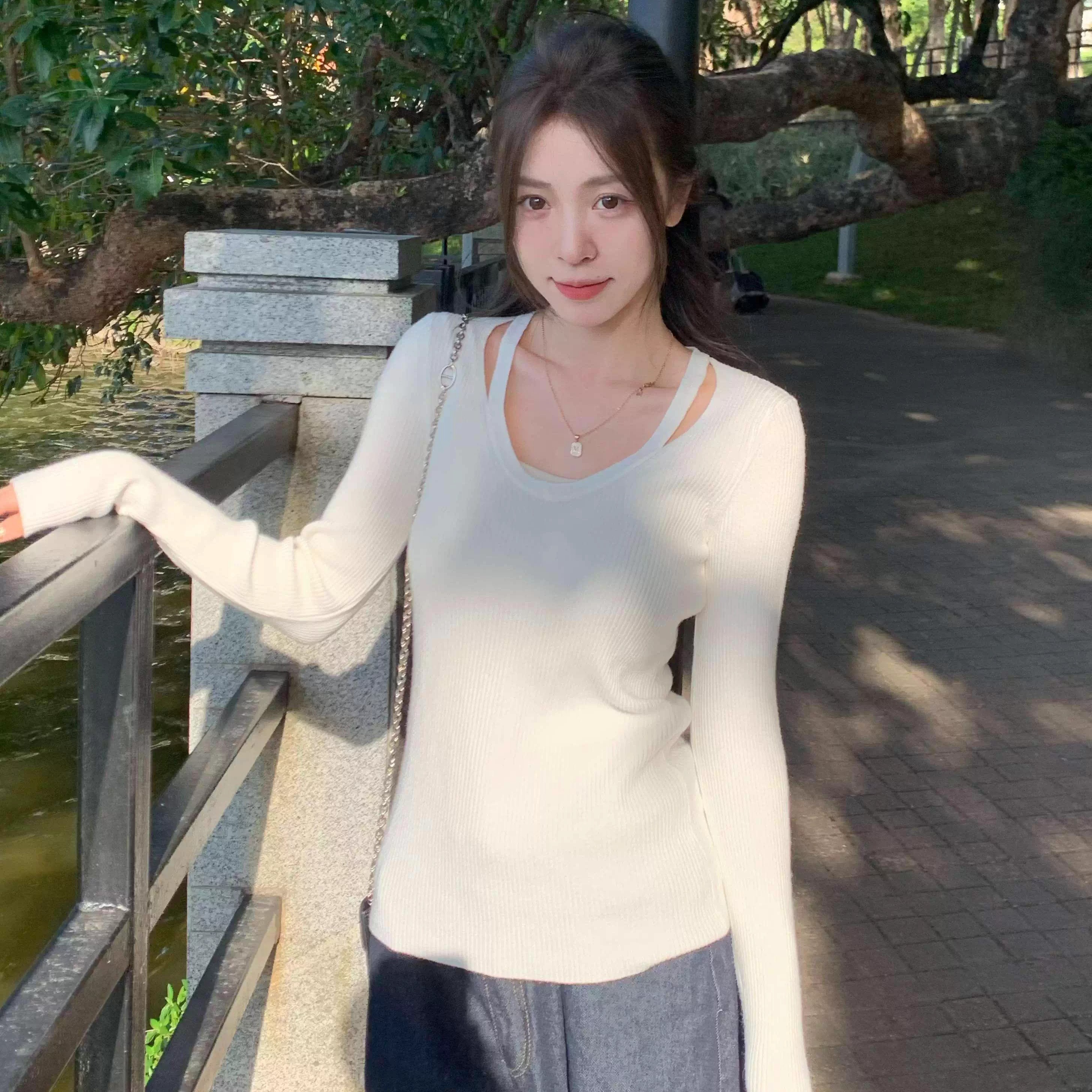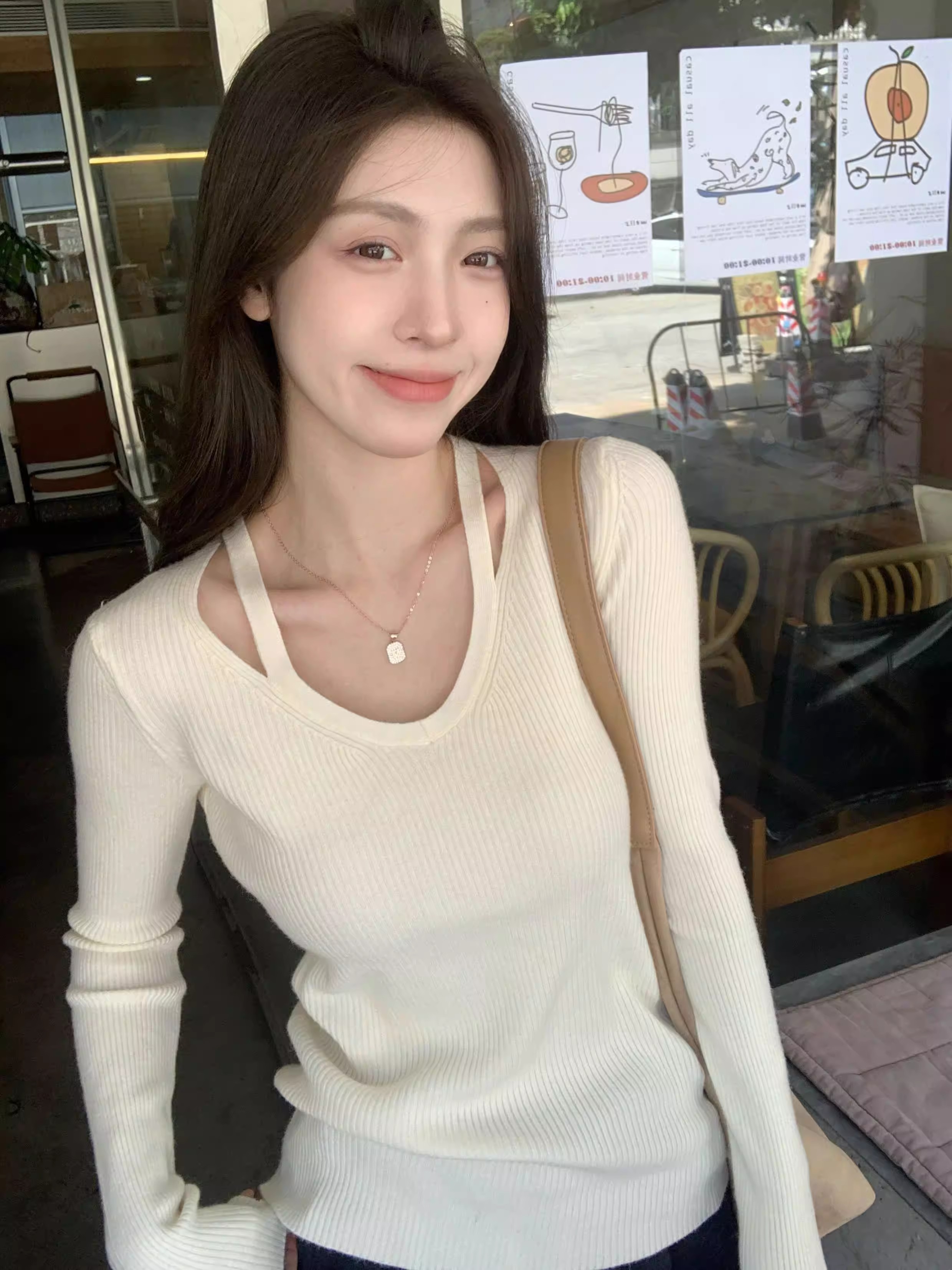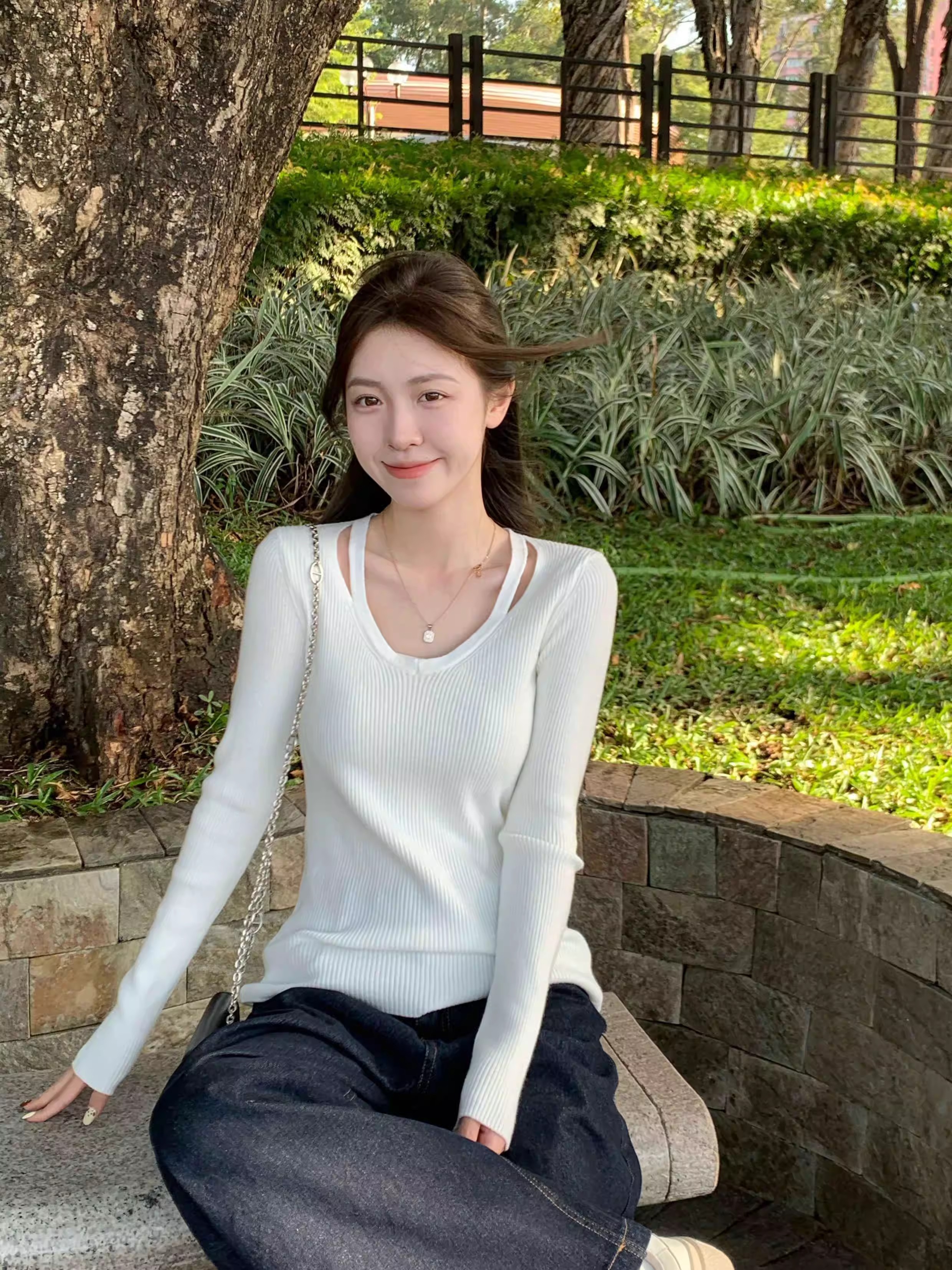 MY16292# 韩系纯欲别致低领内搭打底衫女心机镂空修身毛衣T恤针织上衣女裝貨源服裝批發