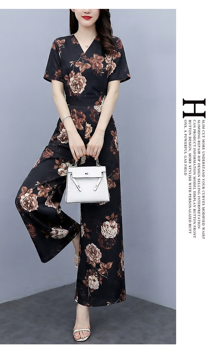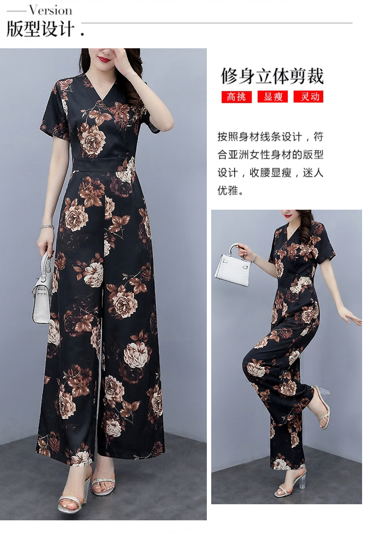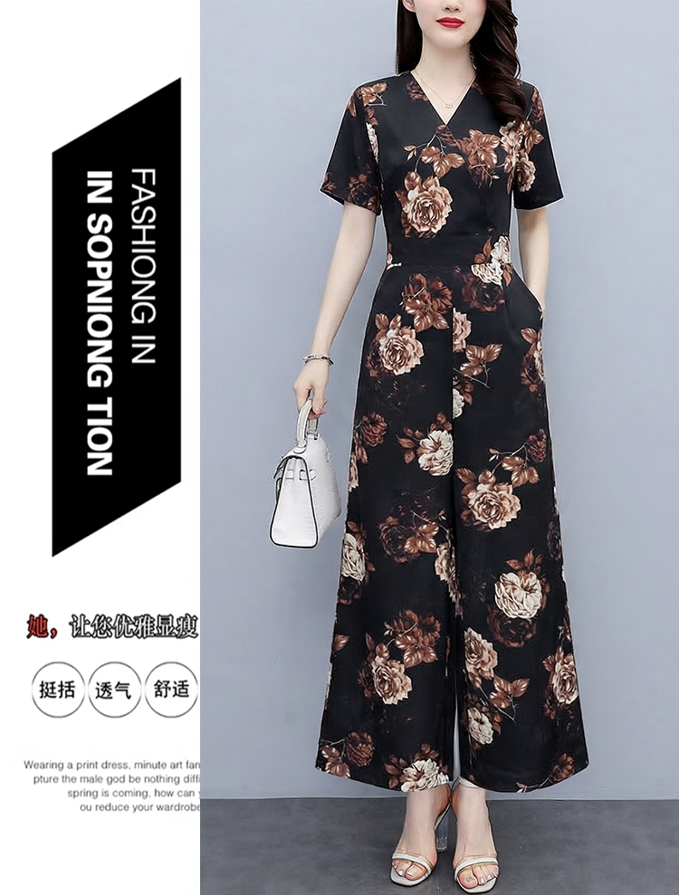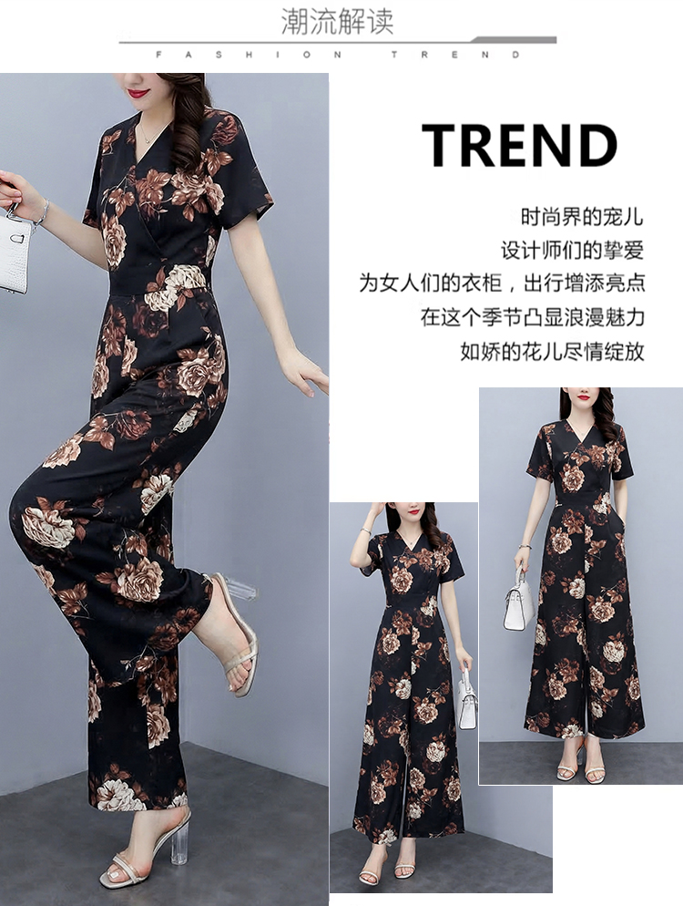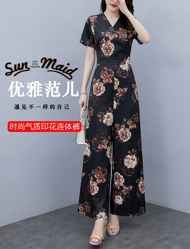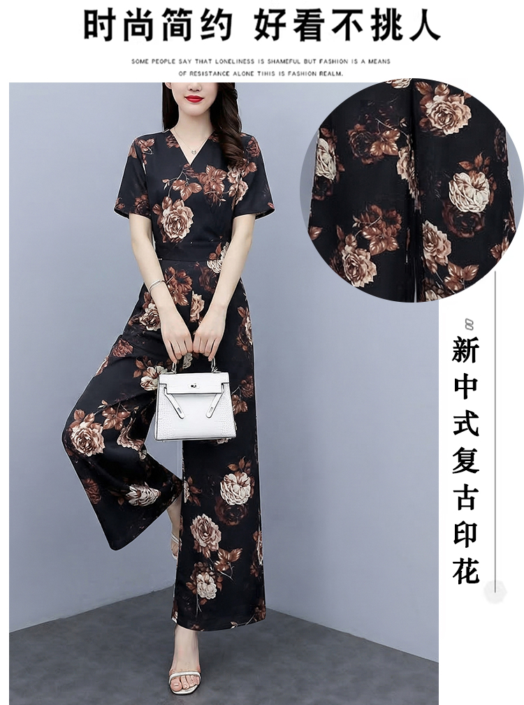 RY1810# 2026新款高端独特印花连体裤套装超好看时尚连体裤假两件套...