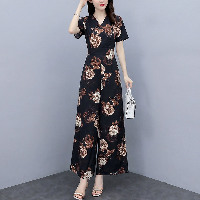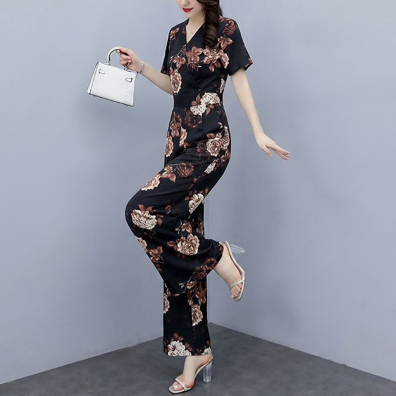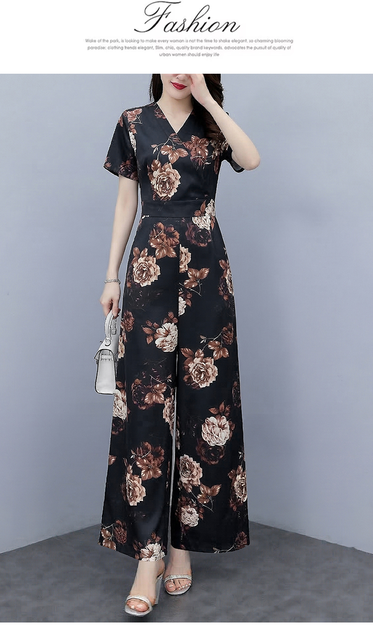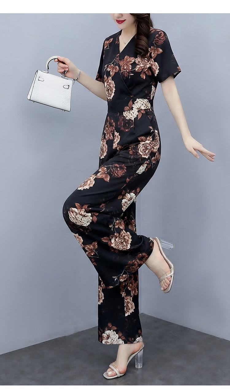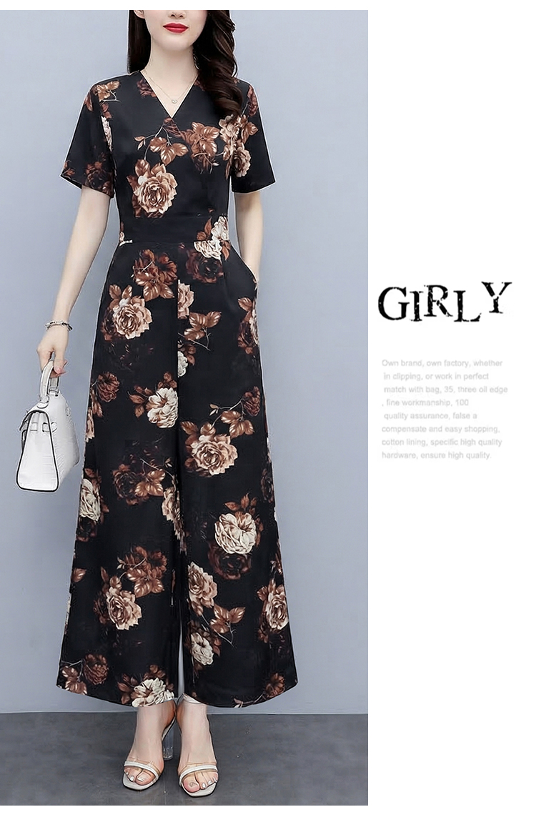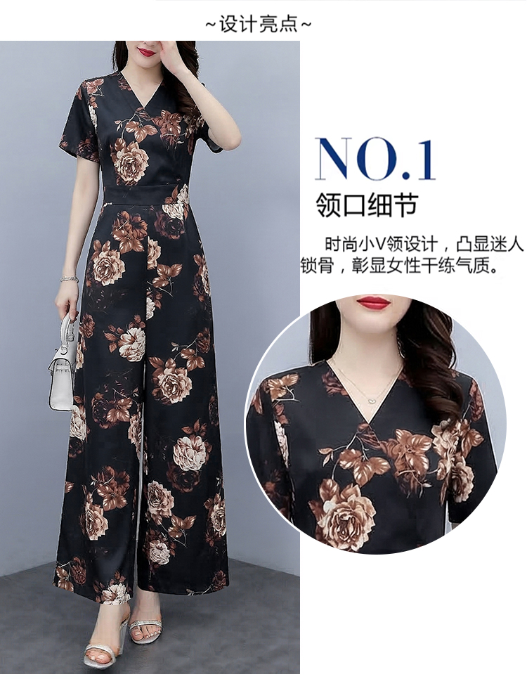 RY1810# 2026新款高端独特印花连体裤套装超好看时尚连体裤假两件套...