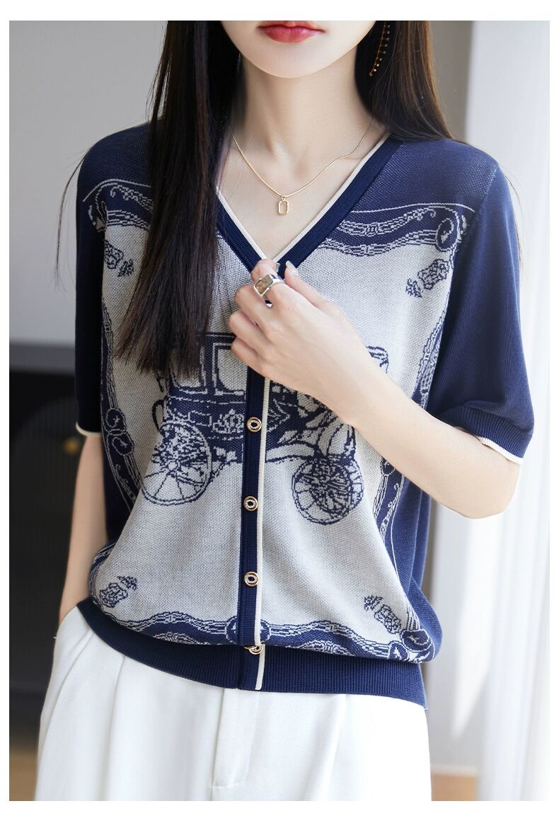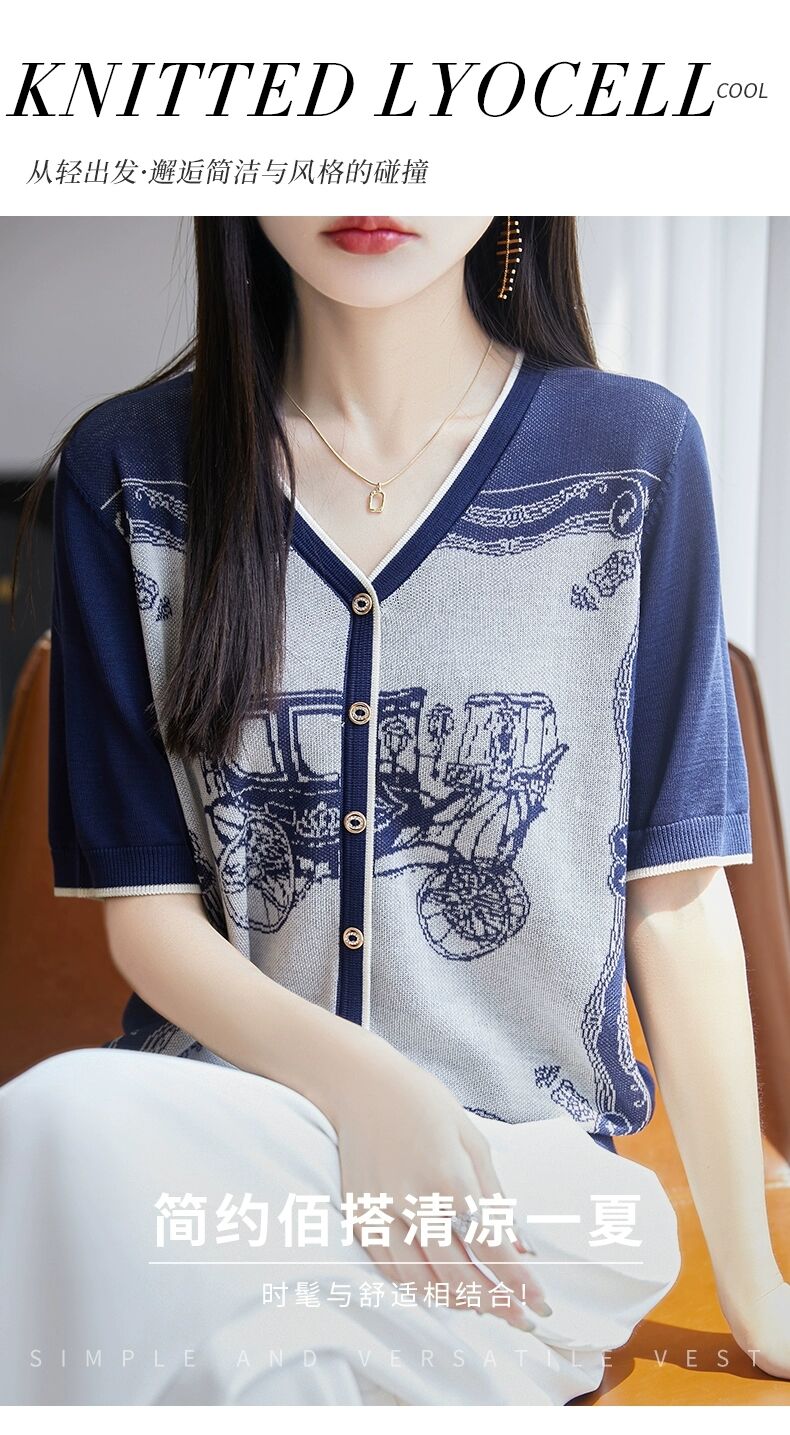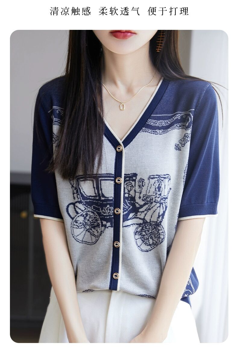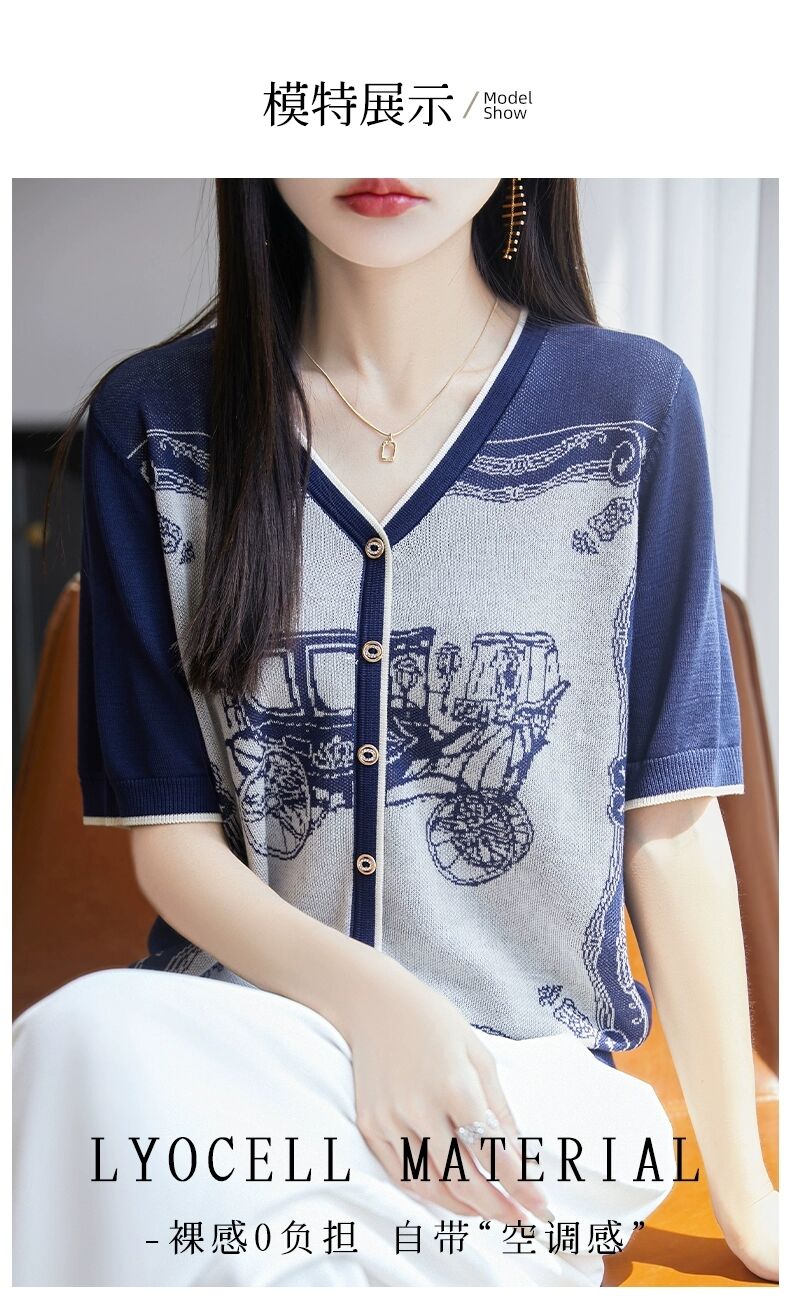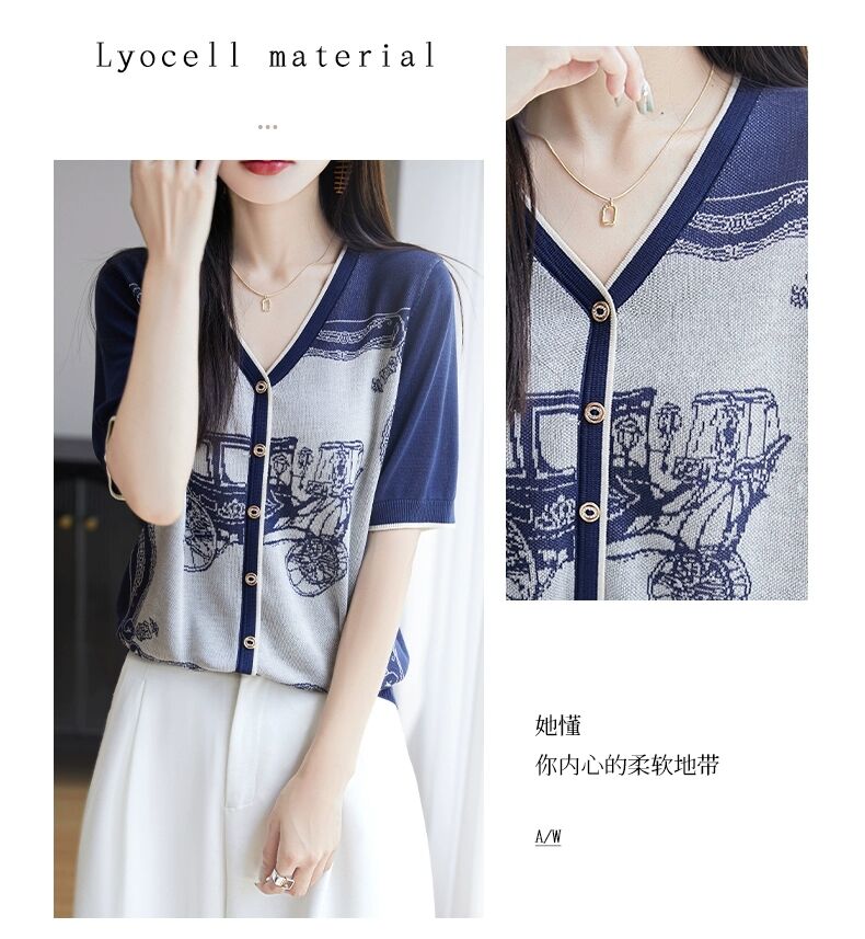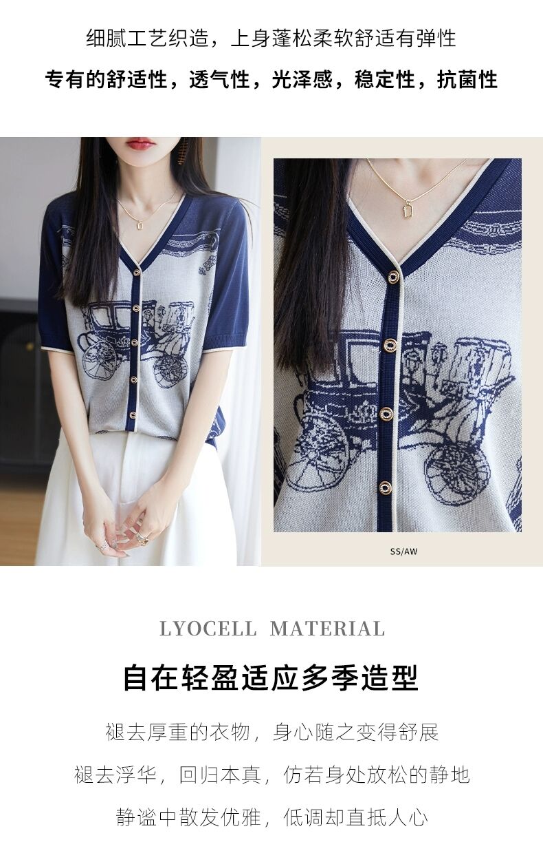 RY3306# 2026春夏新款针织短袖开衫女V领外搭空调衫外套