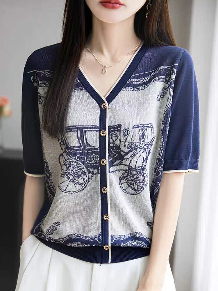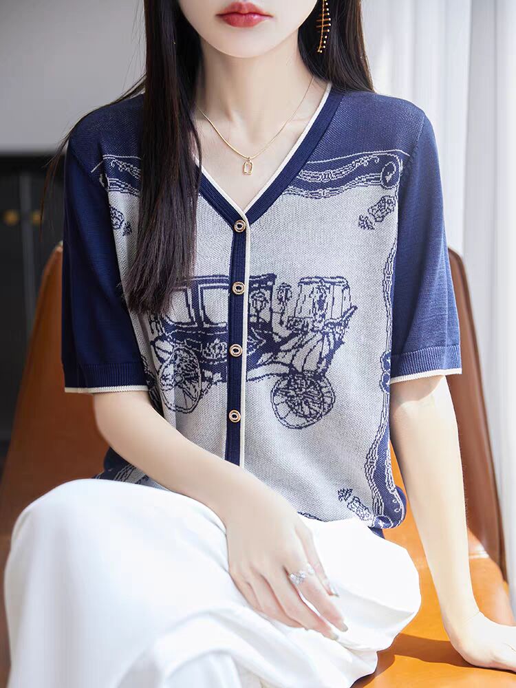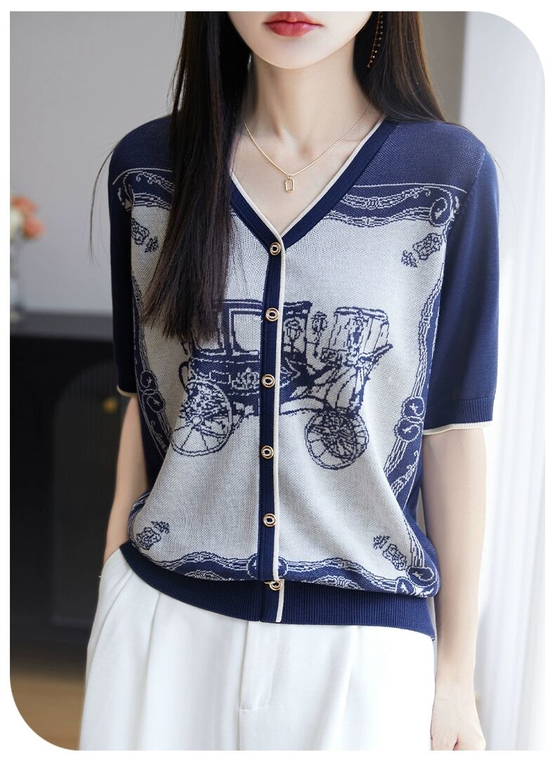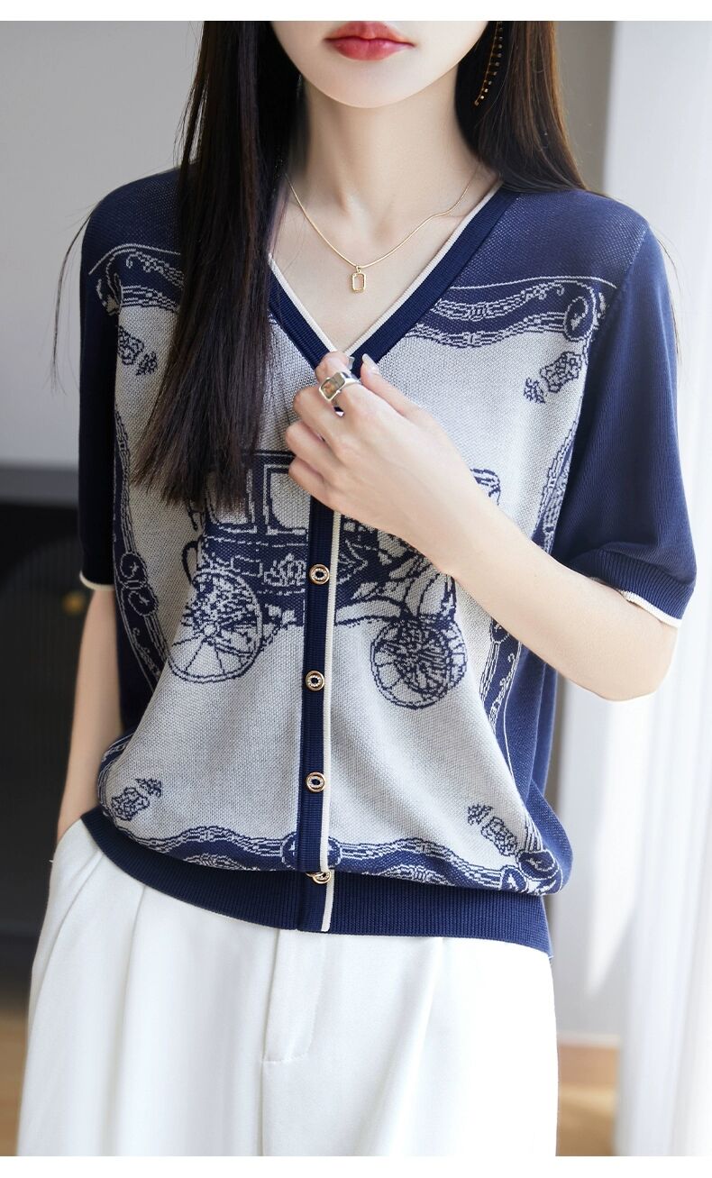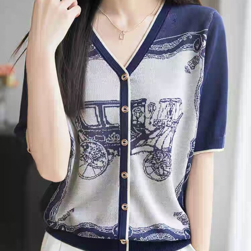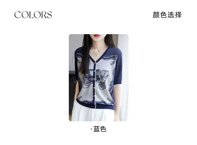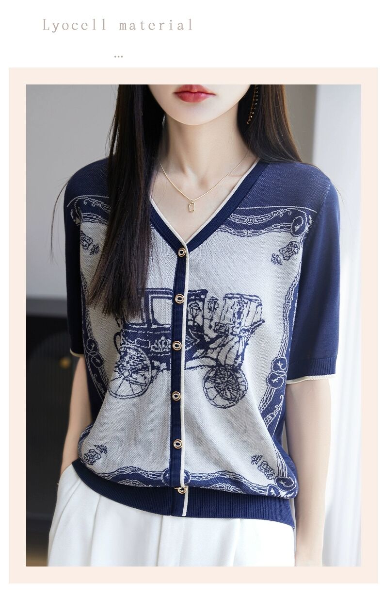 RY3306# 2026春夏新款针织短袖开衫女V领外搭空调衫外套