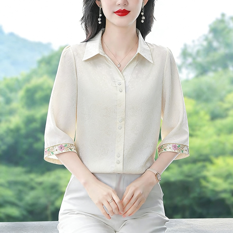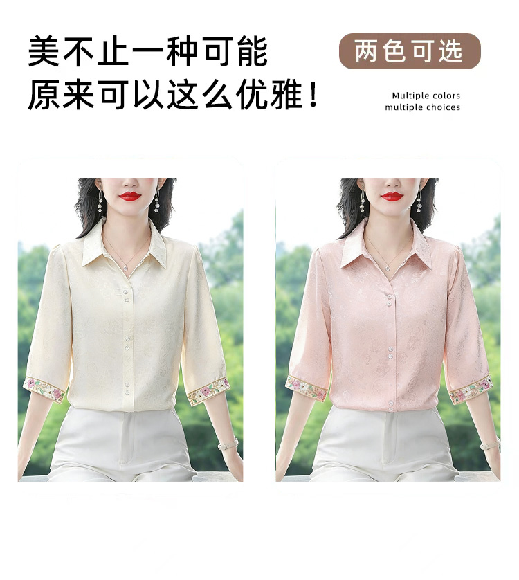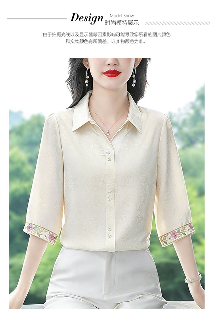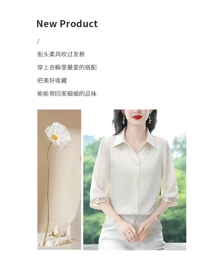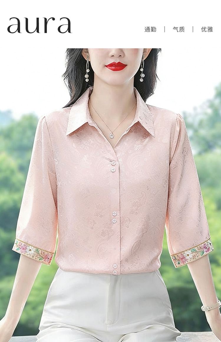 RY3313# 实拍2026夏季新款时尚设计感衬衫简约刺绣缎面提花雪纺衫上衣女