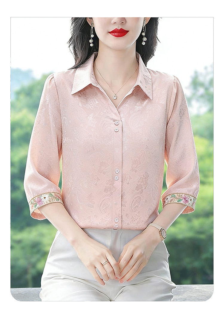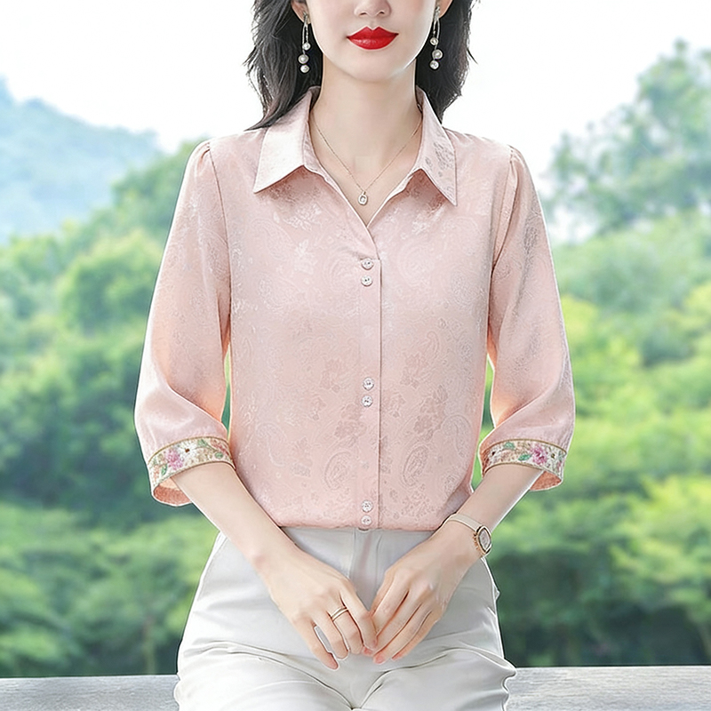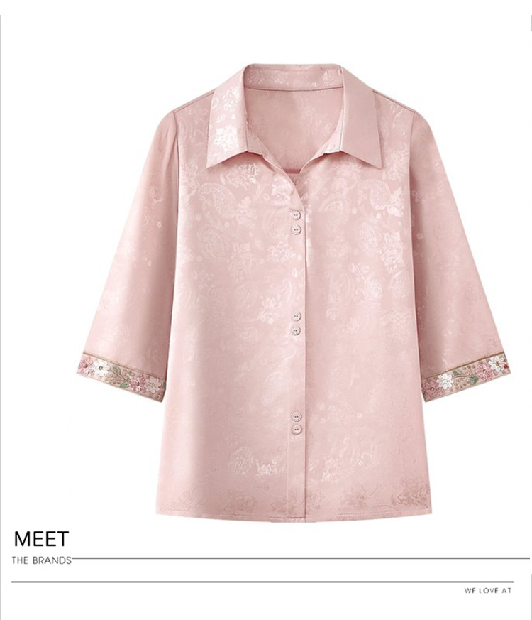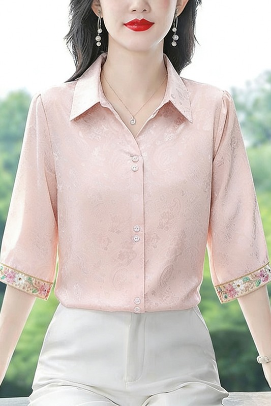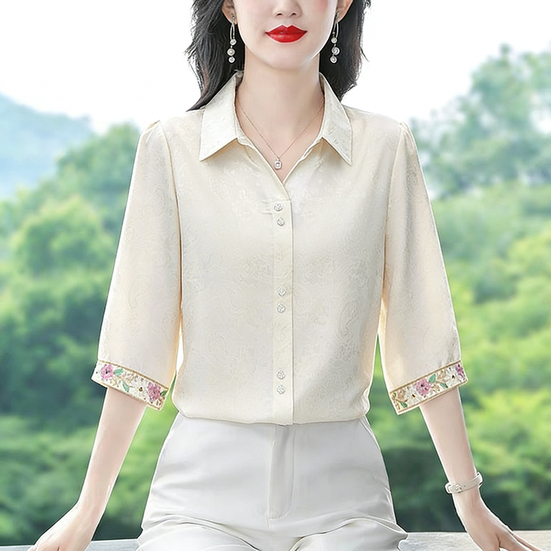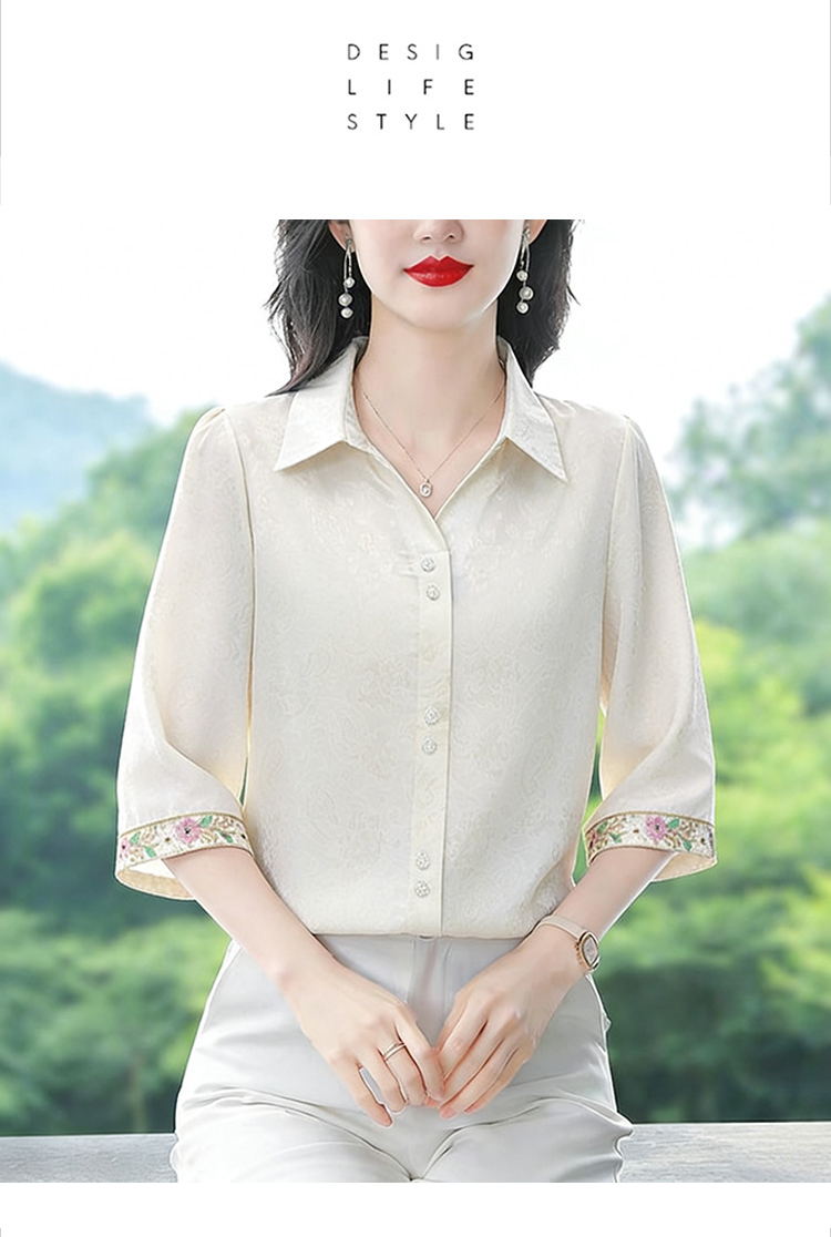 RY3313# 实拍2026夏季新款时尚设计感衬衫简约刺绣缎面提花雪纺衫上衣女