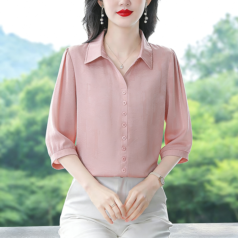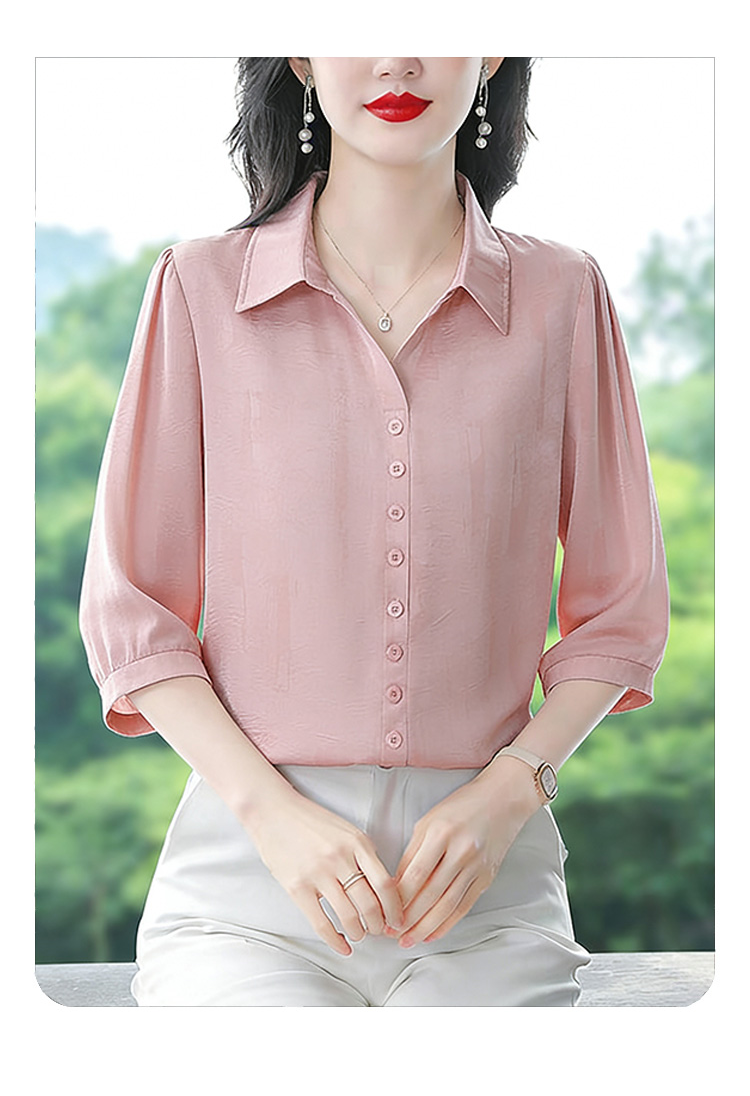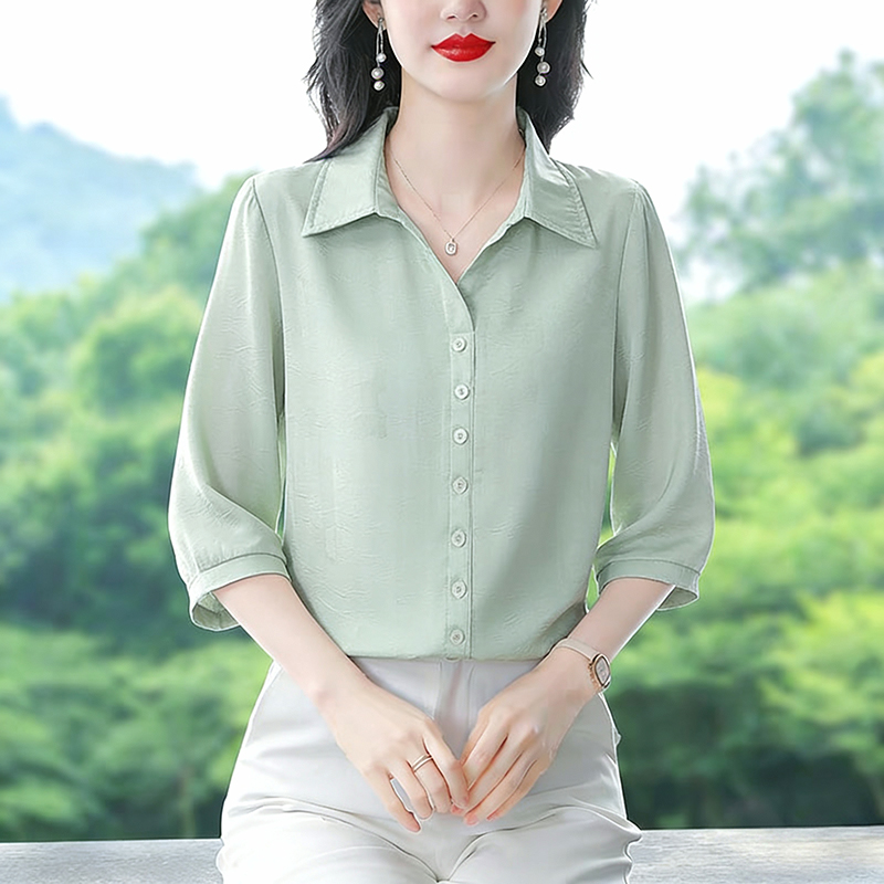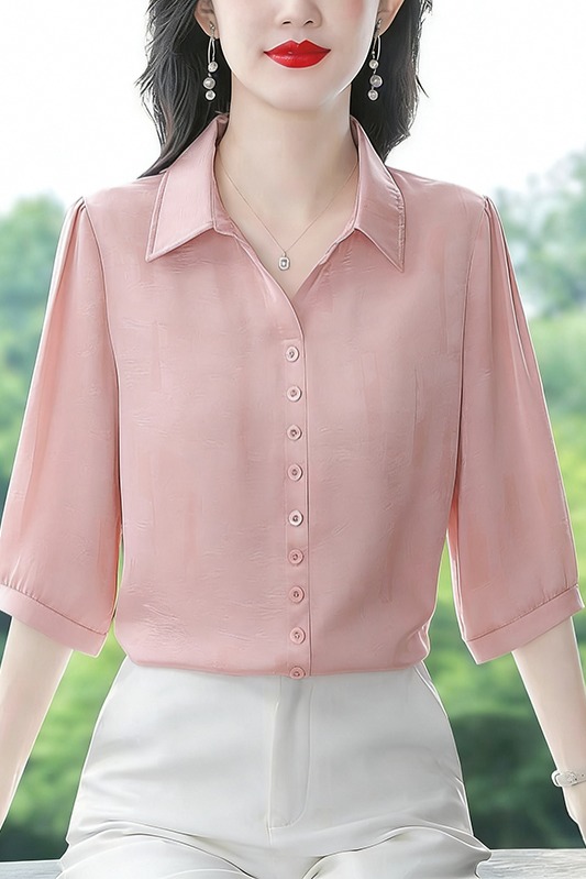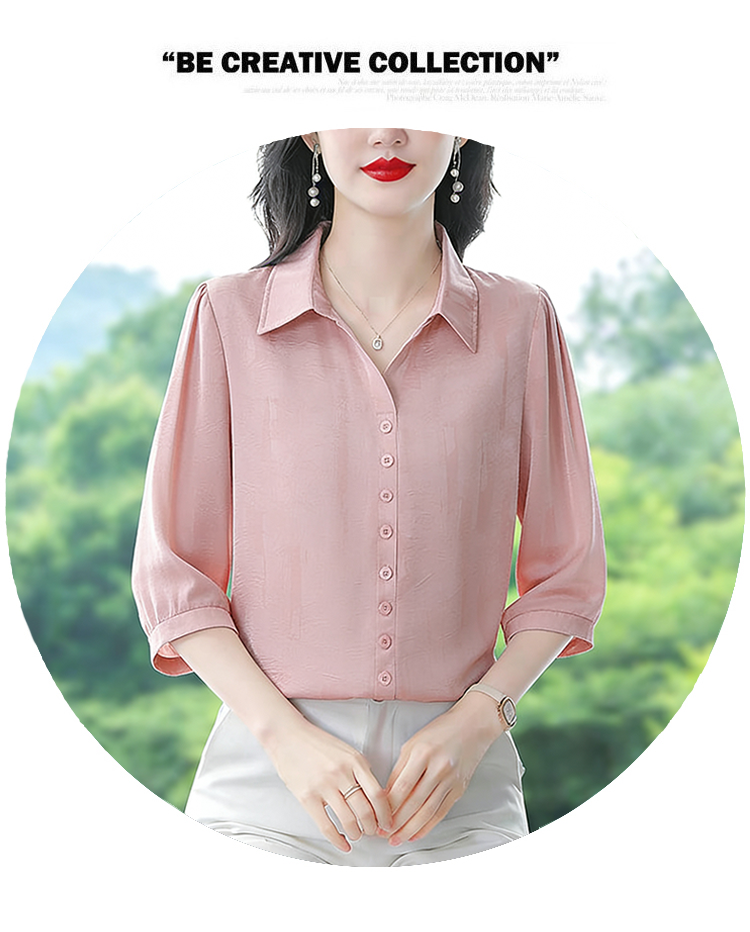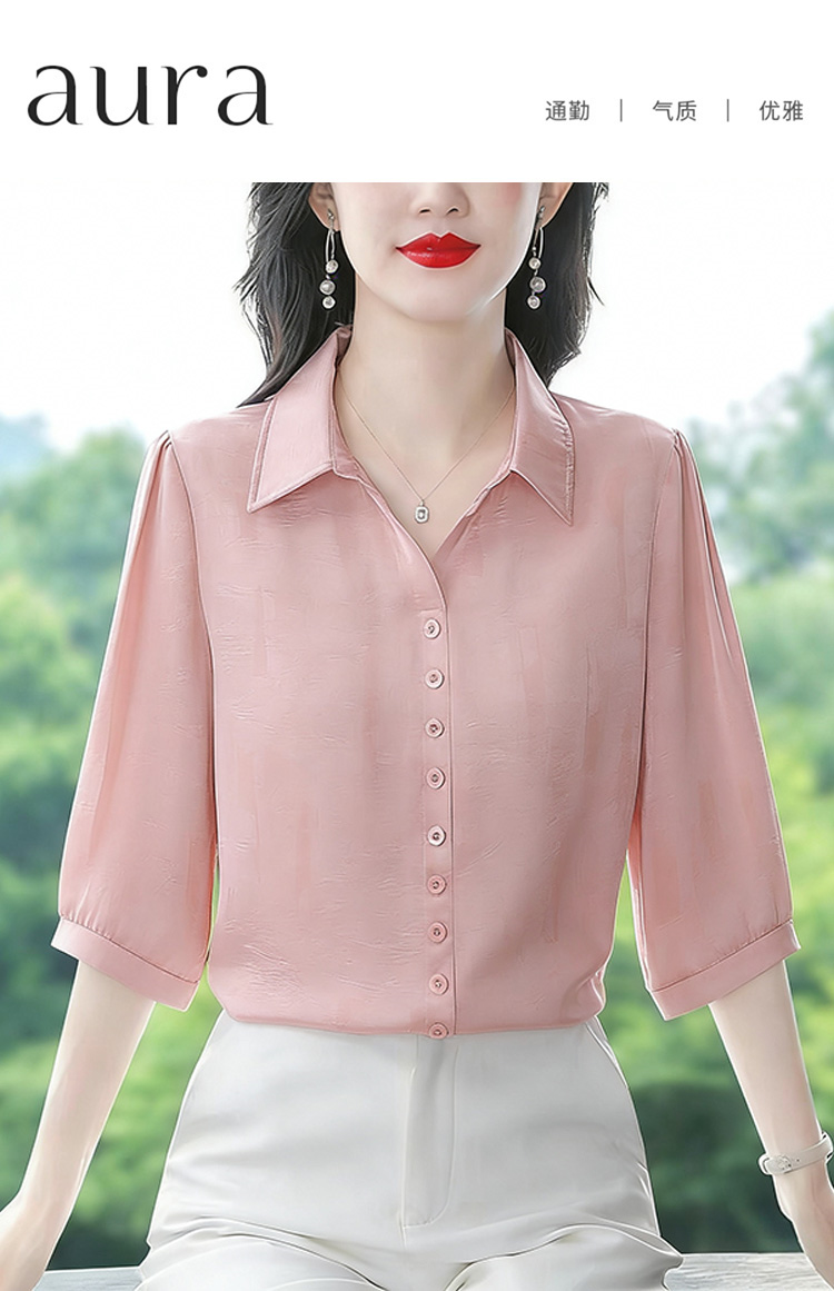RY3316# 实拍2026夏季新款时尚简约韩版衬衫宽松显瘦上衣气质短袖雪纺衫