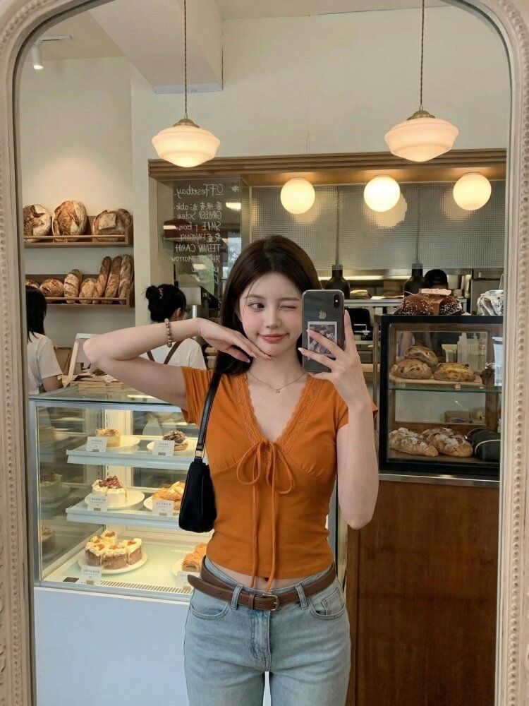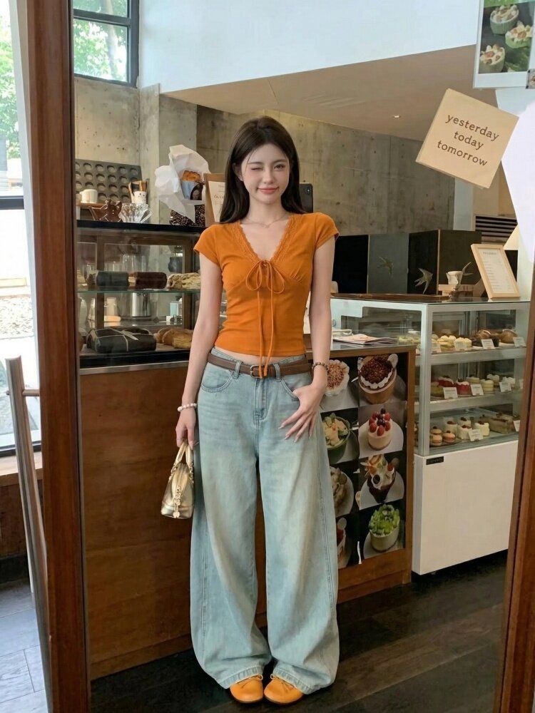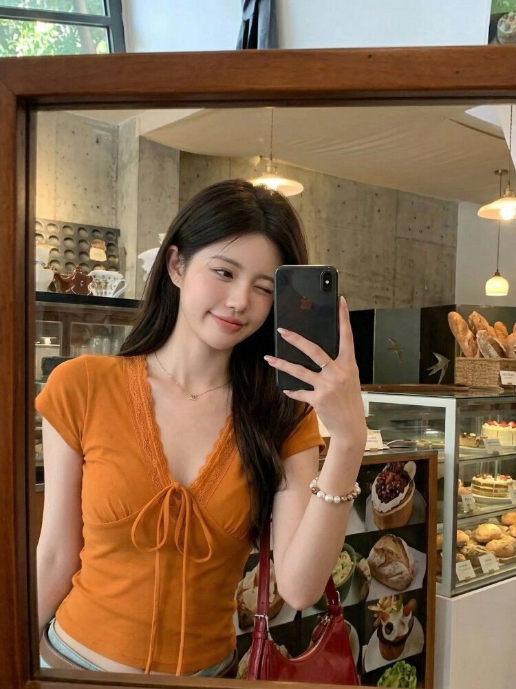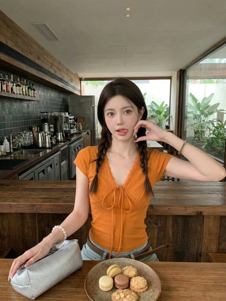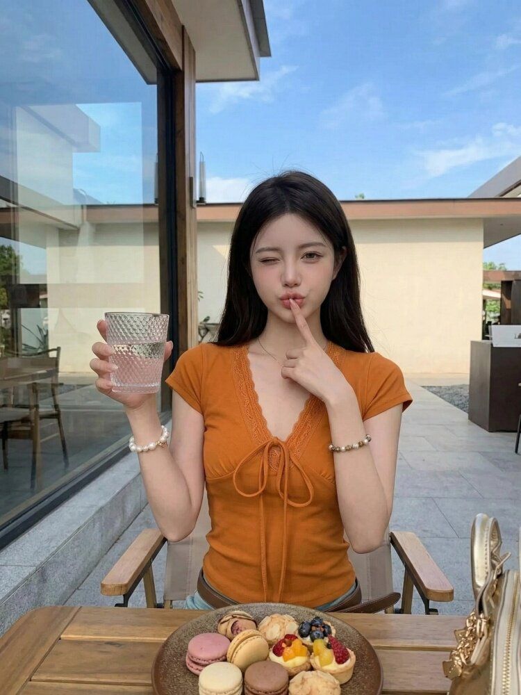 RY3298# 杏色荷叶边上衣夏季2026新款气质独特设计感漂亮简约修身无...