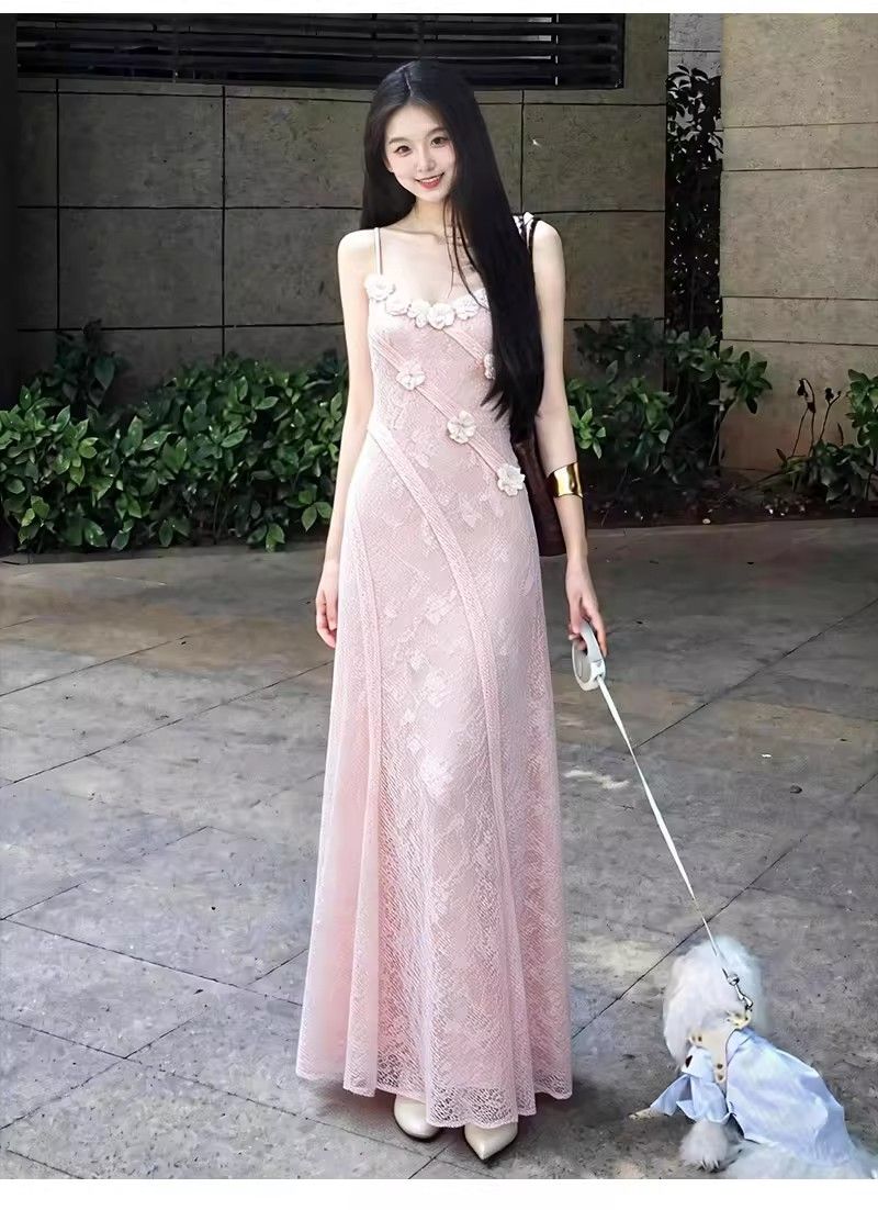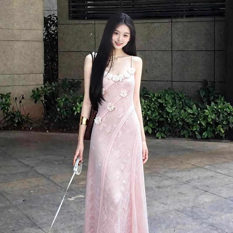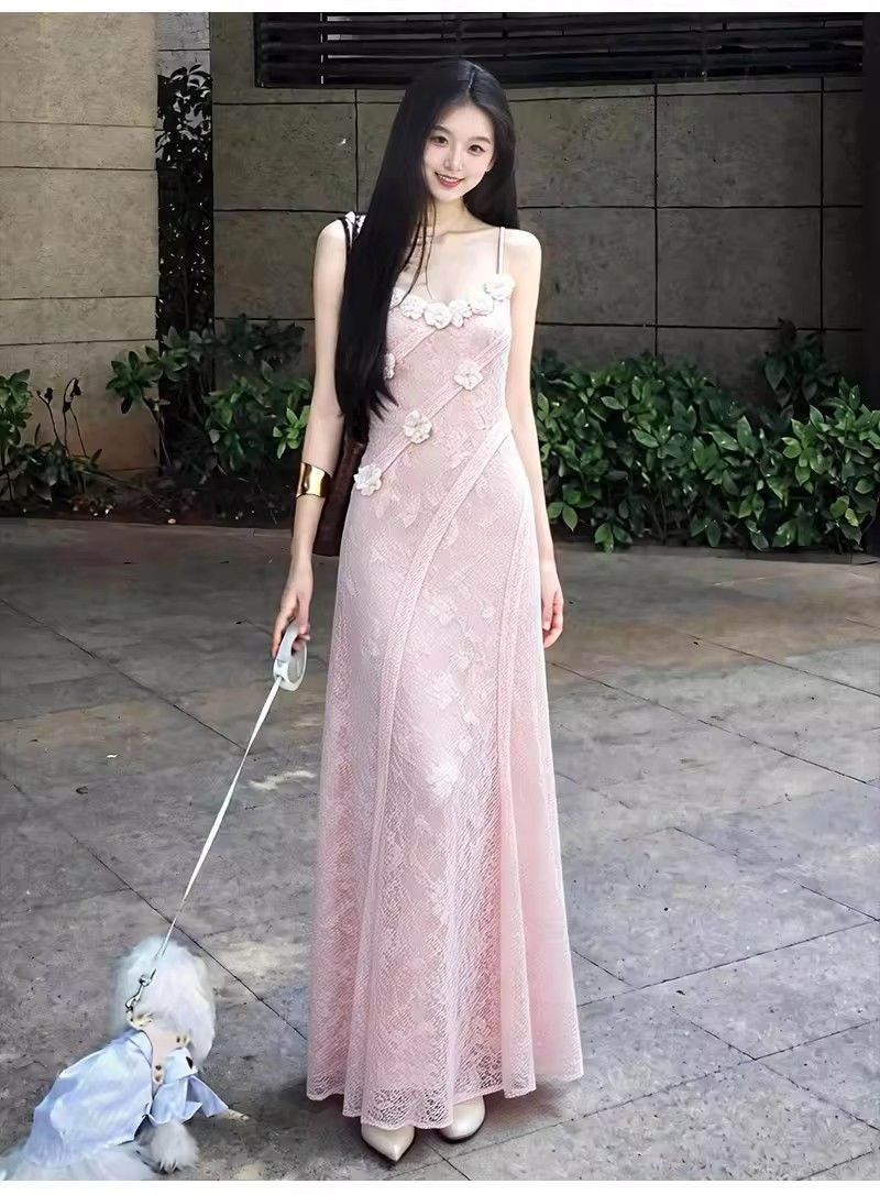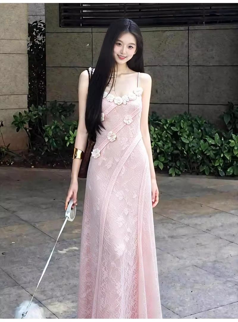 RY3341# 气质粉色吊带连衣裙女26春小个子度假收腰高级感独特超好看长裙子