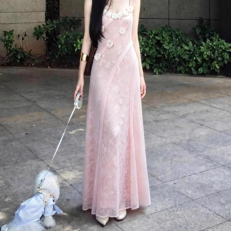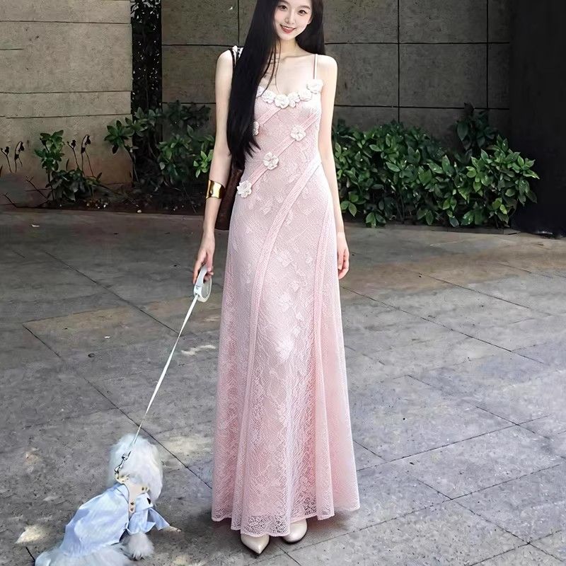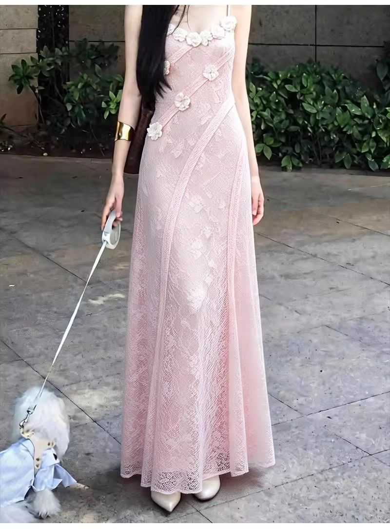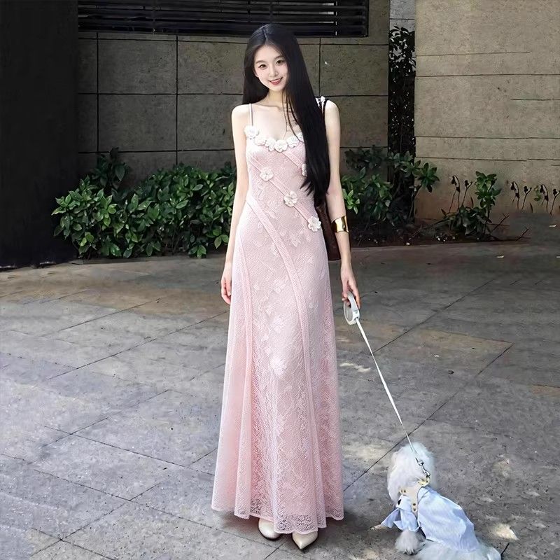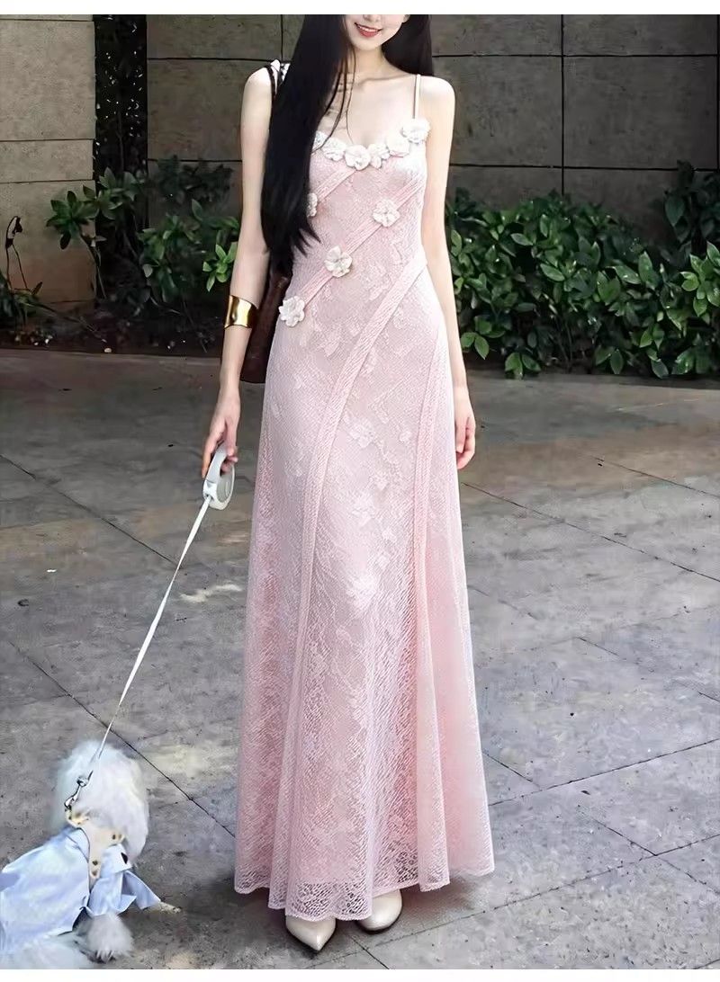 RY3341# 气质粉色吊带连衣裙女26春小个子度假收腰高级感独特超好看长裙子