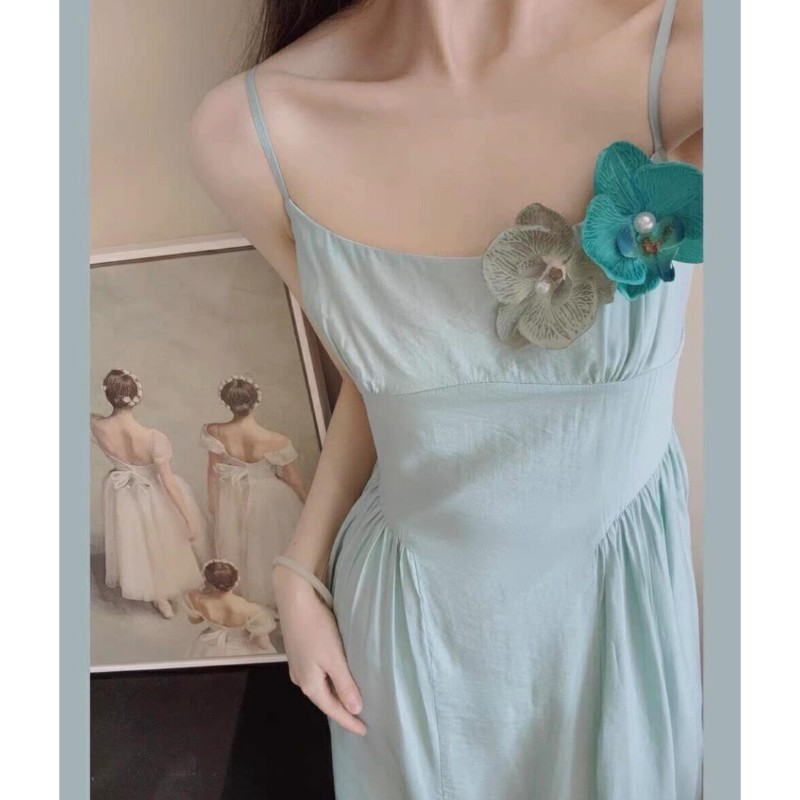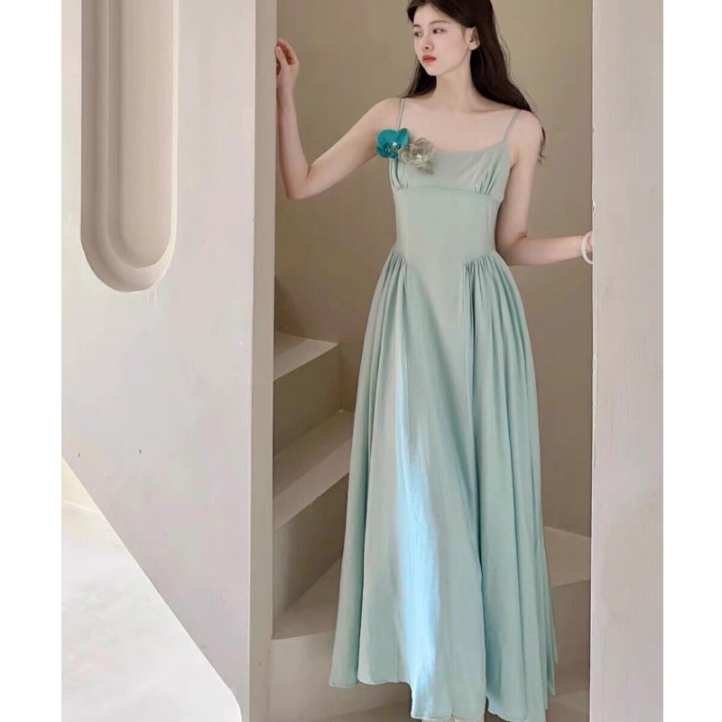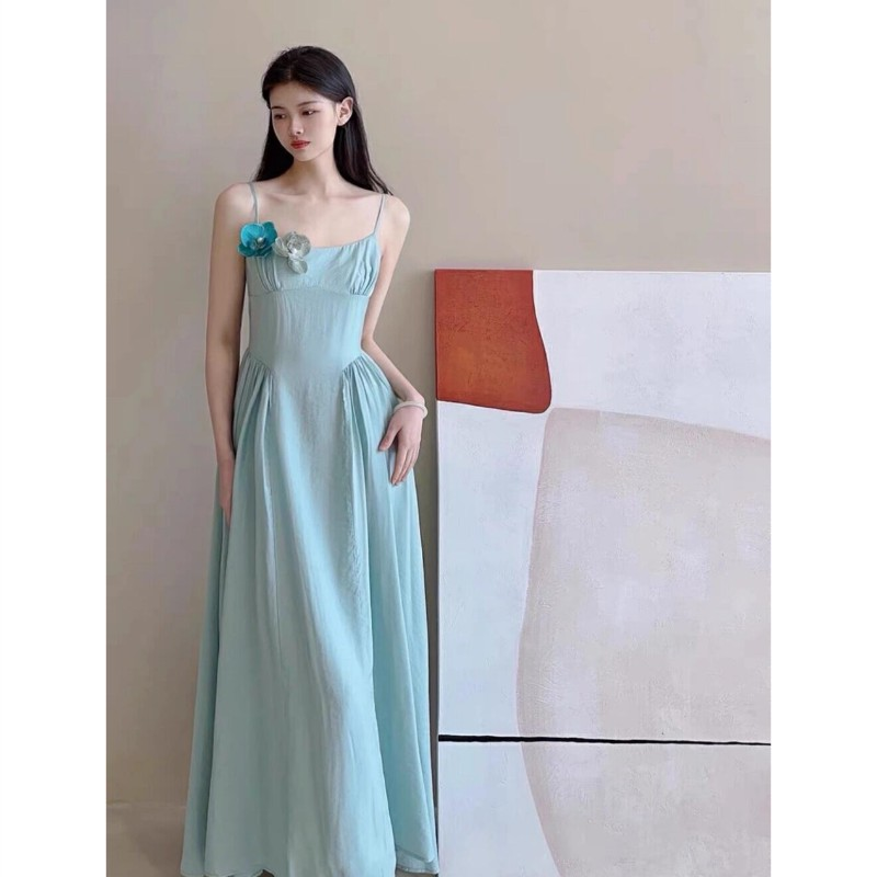 RY3342# 法式小众绝美气质吊带连衣裙仙女夏季高级感海边度假收腰沙滩长裙