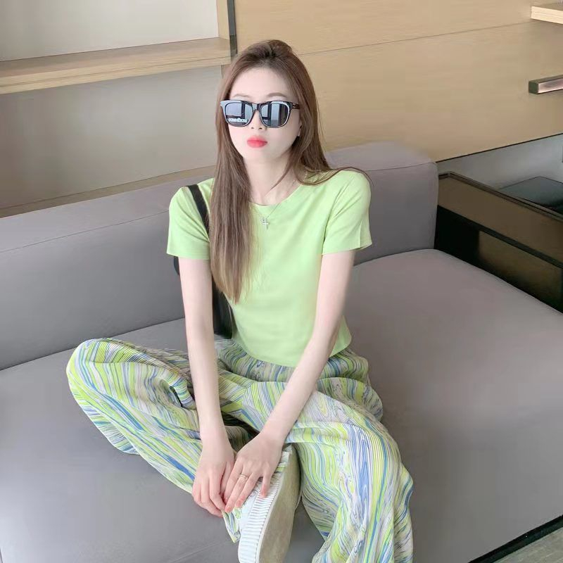 CP1303#长期特价促销款!网红炸街时尚套装女百搭t恤高腰垂感撞色阔腿休闲裤