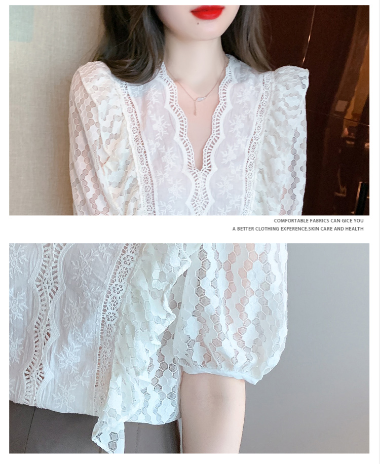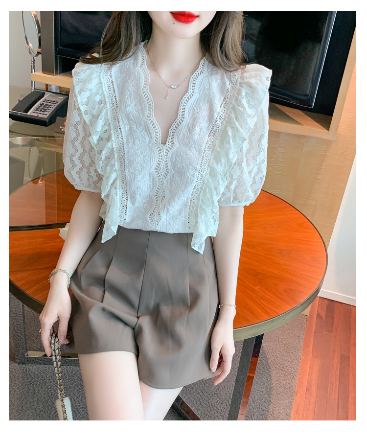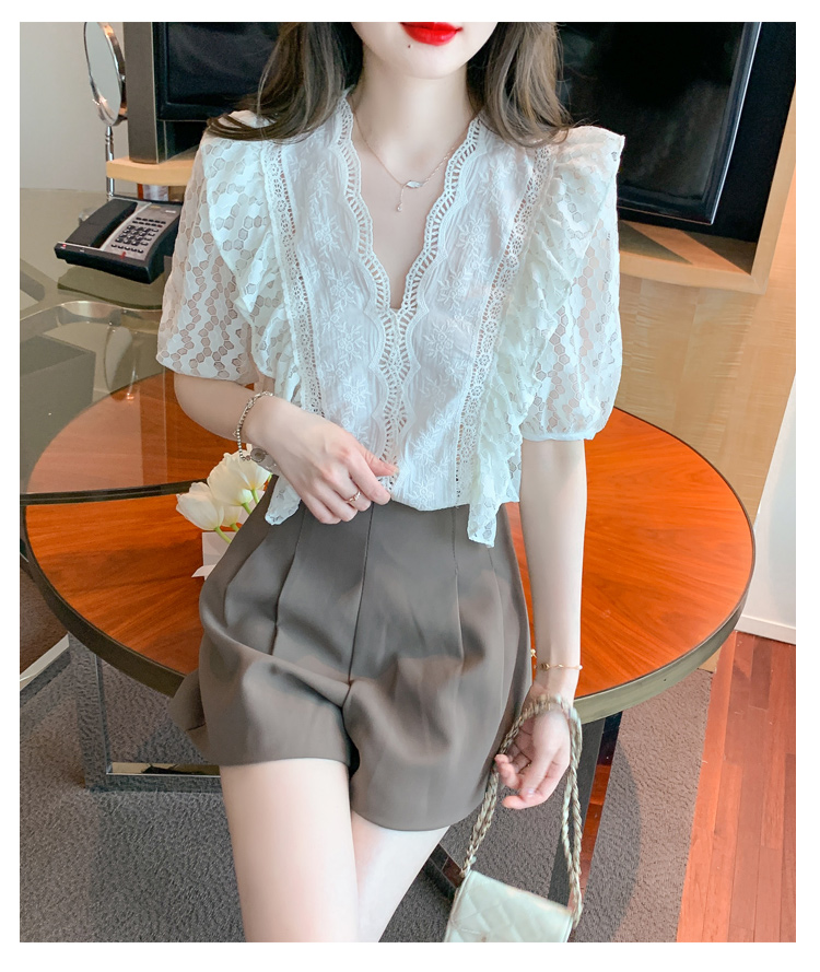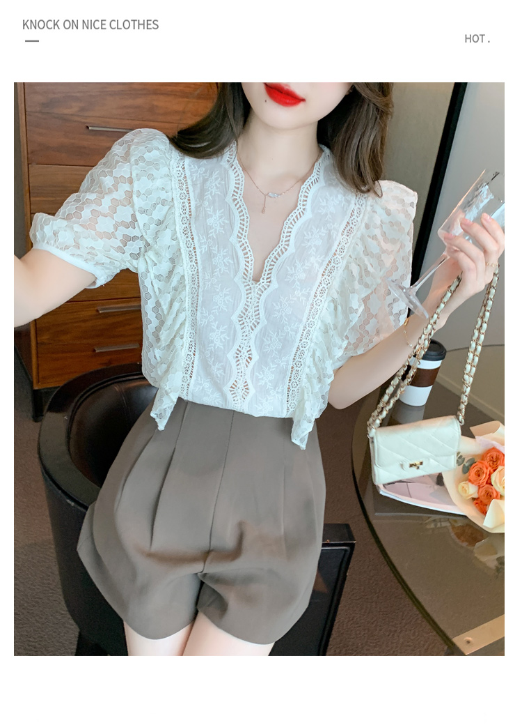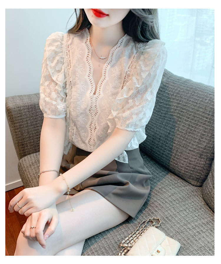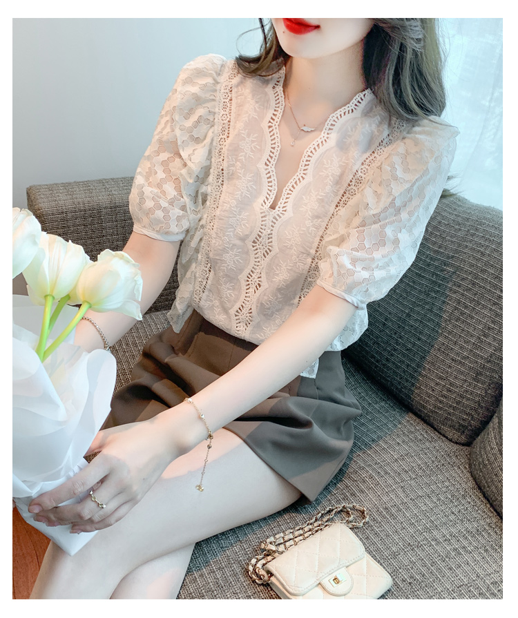 RM5570#夏季新款V领花边蕾丝衫雪纺衫超仙显瘦洋气短袖小衫女