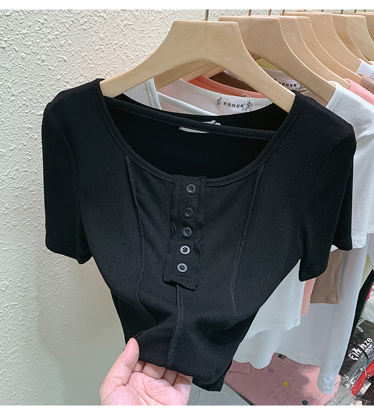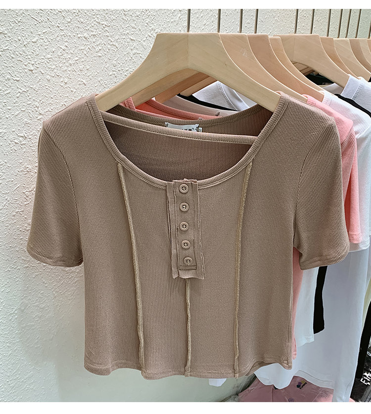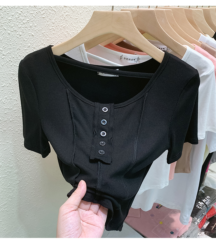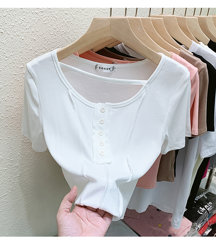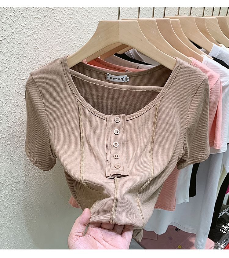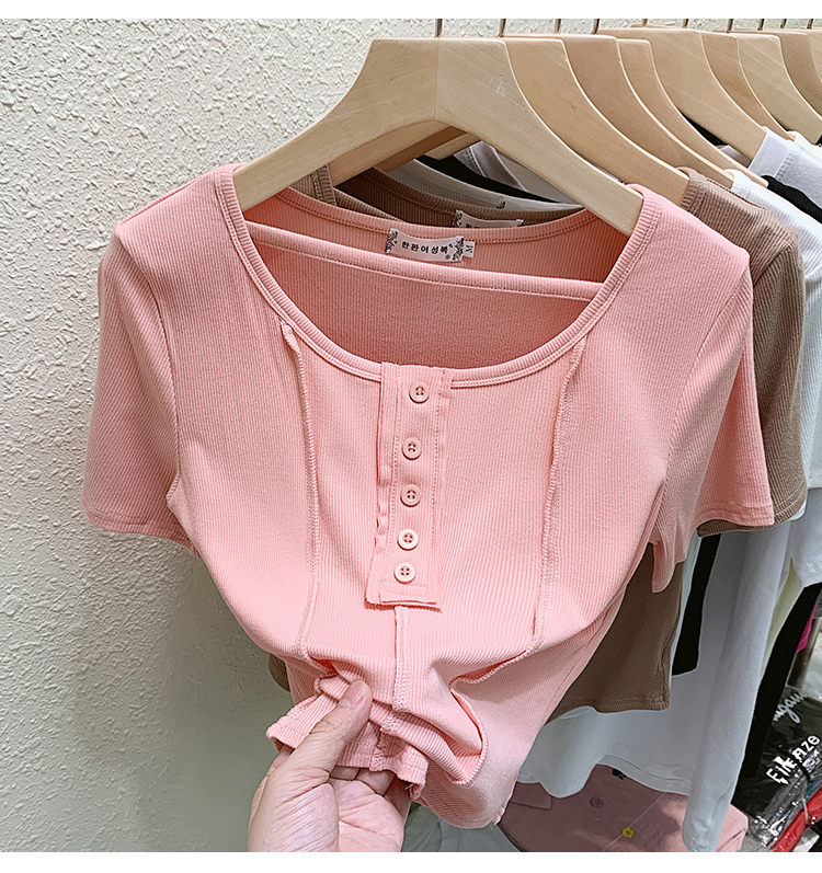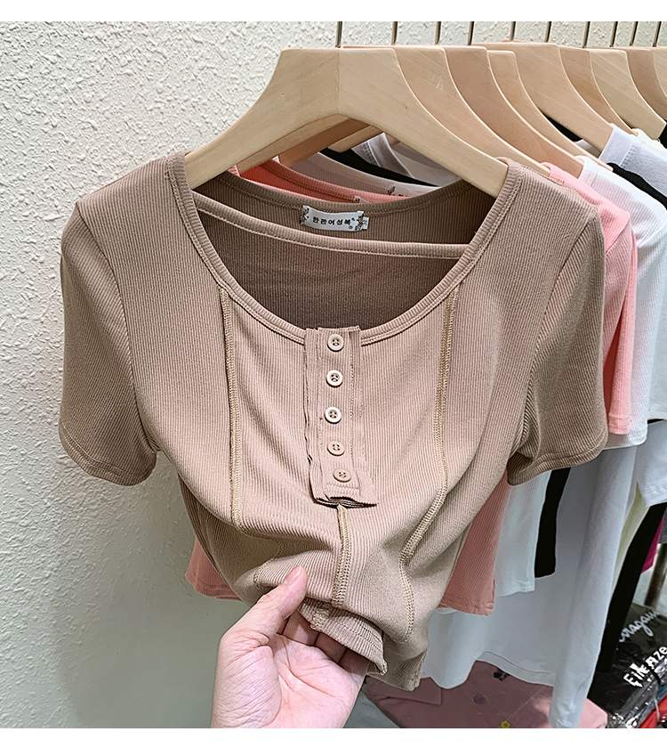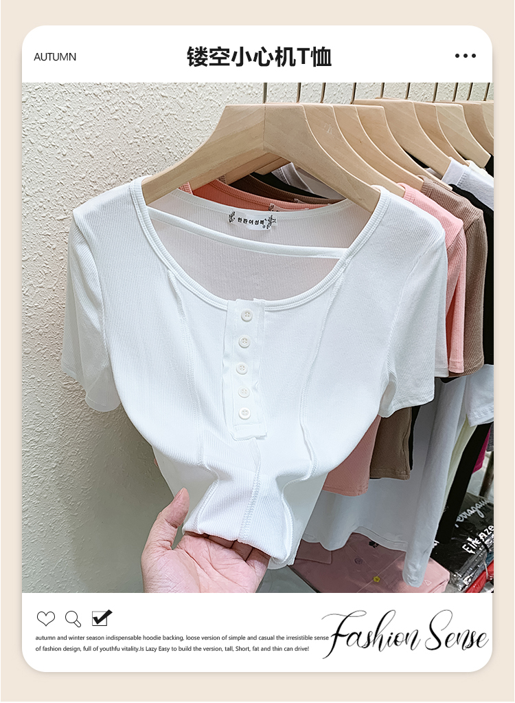 RM5583#小心机辣妹短袖T恤女夏设计感洋气百搭新款短款内搭半袖上衣