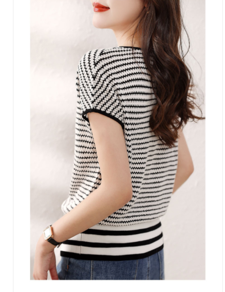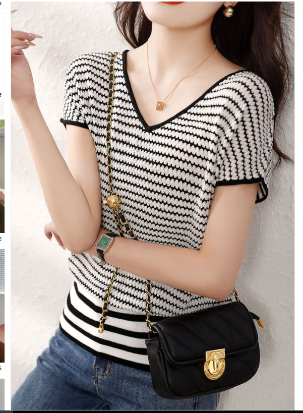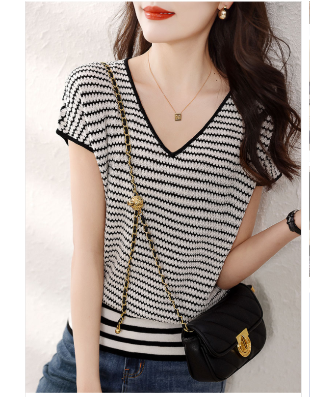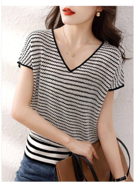RM5688#夏季新款韩版气质针织衫百搭上衣女V领显瘦针织T恤女