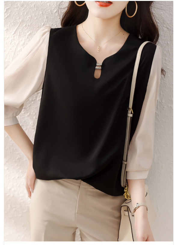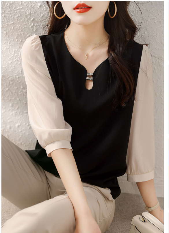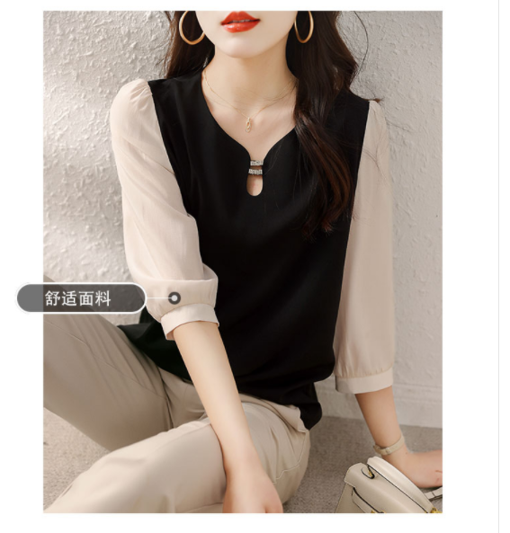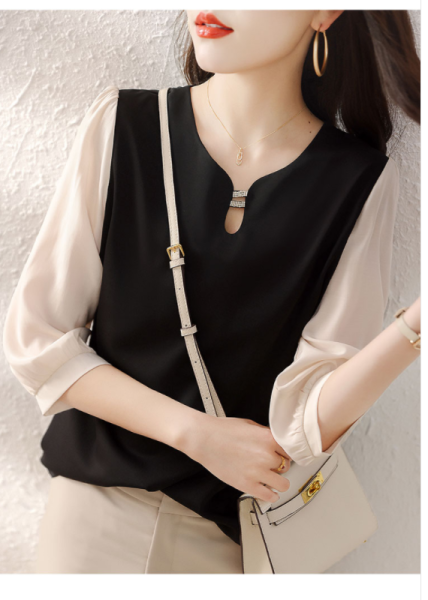 RM5702#春夏新款撞色拼接设计感衬衣女春装上衣通勤长袖衬衫女