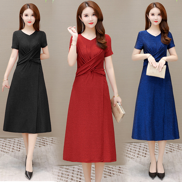RM5968#夏季新款加肥加大连衣裙妈妈装遮肚子弹力大过膝