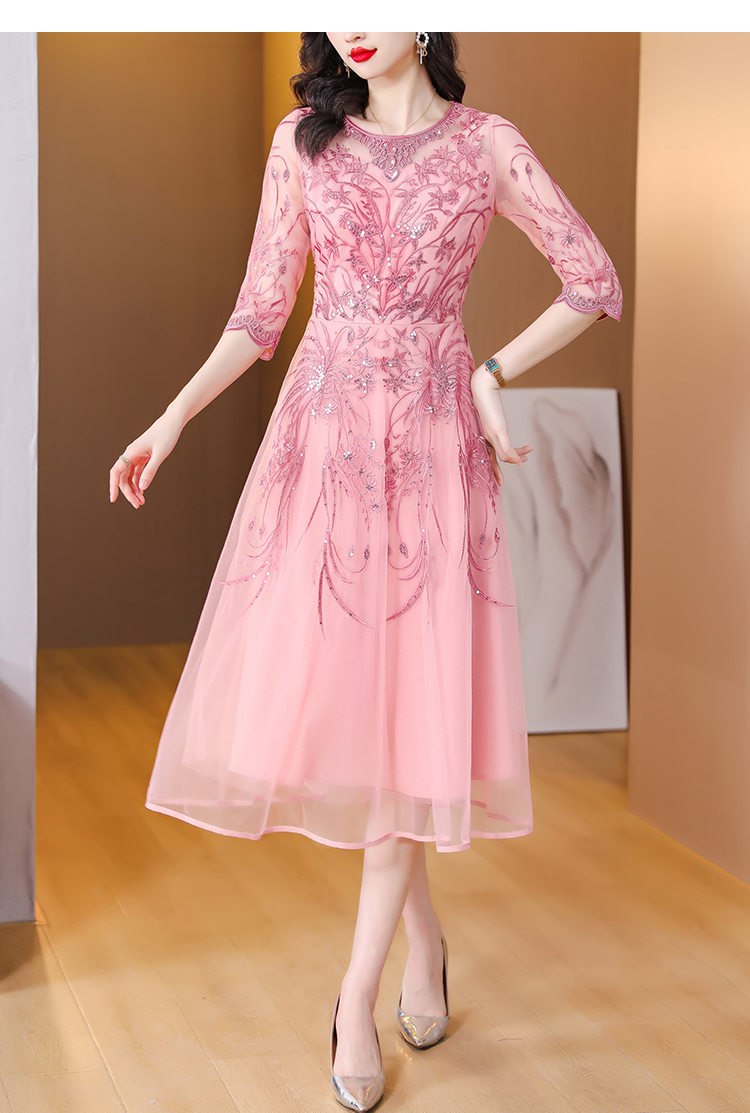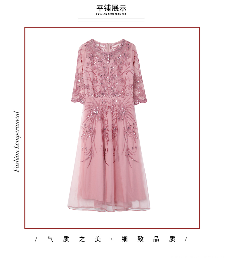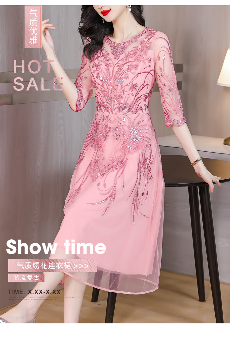 RM6292#喜婆婆婚宴装刺绣中长款礼服秋女儿结婚气质年轻婚礼妈妈装连衣裙