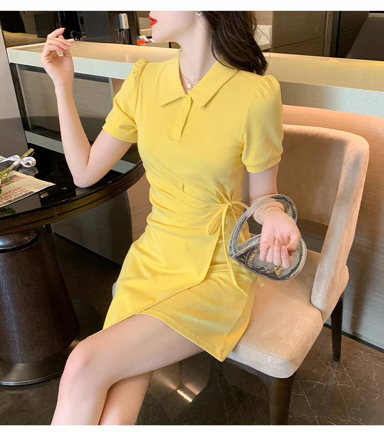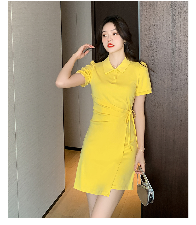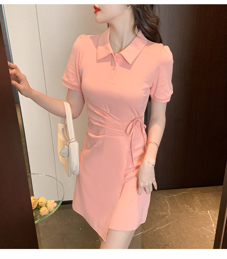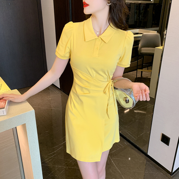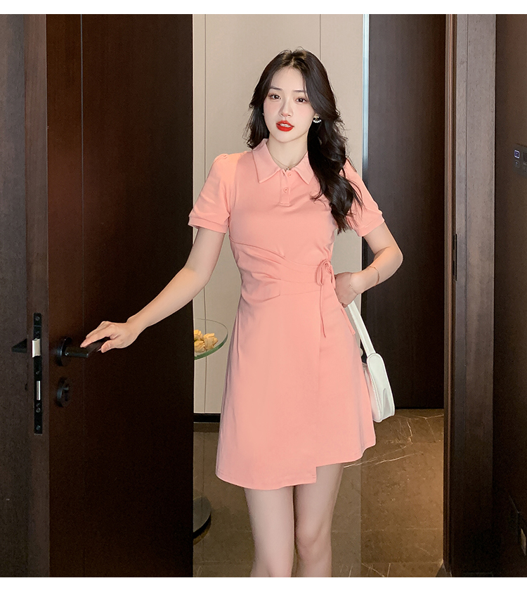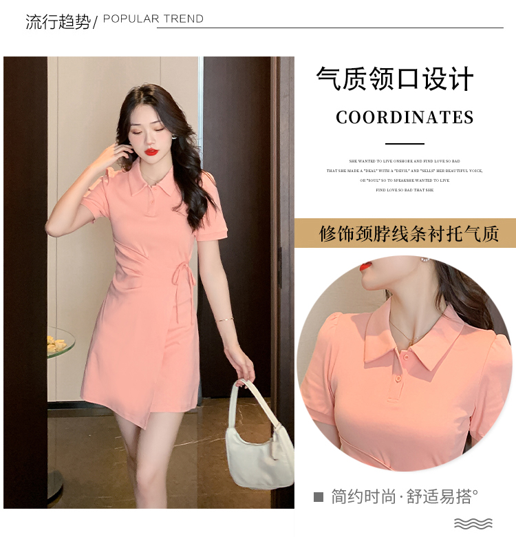 RM6335#polo领连衣裙女夏新款仙女抽绳小个子收腰修身甜辣纯欲风短裙