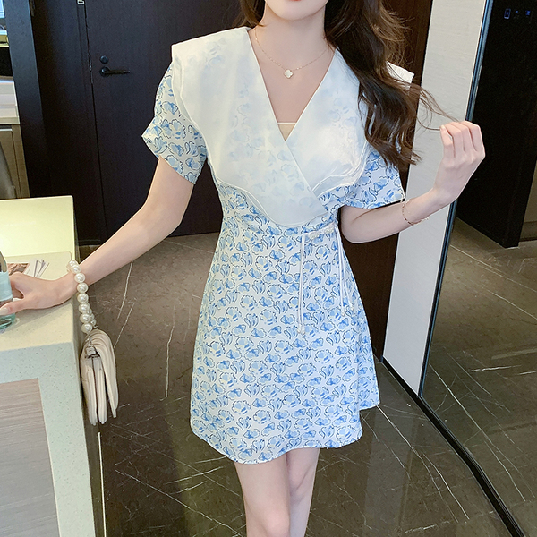 RM6683#法式娃娃领雪纺碎花连衣裙女夏装2023年新款小众设计感初恋裙