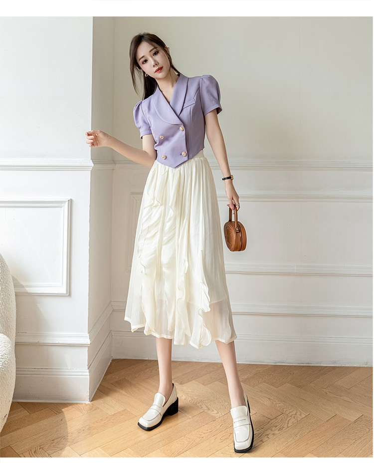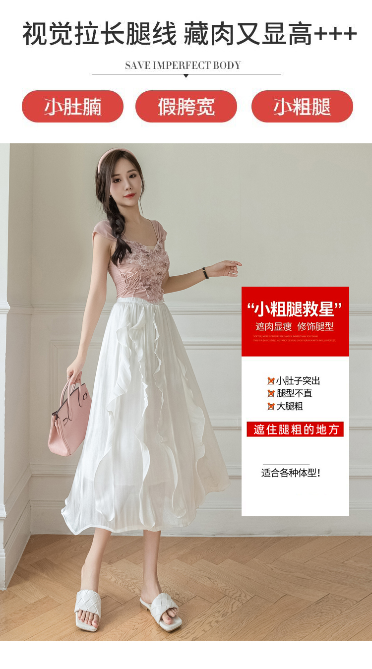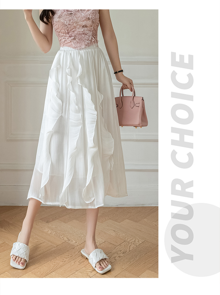 RM7456#高腰显瘦超仙不规则荷叶边设计感流光亮丝木耳边半身裙
