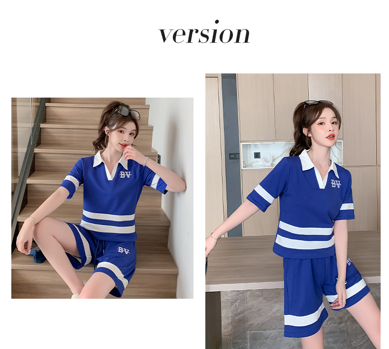 RM7659#休闲时尚运动套装2023夏季新款洋气减龄V领短袖两件套装