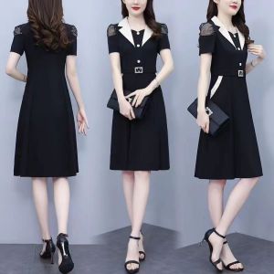 RM9690#爆款赫本风西装领短袖连衣裙2023新款气质修身显瘦裙子女夏天