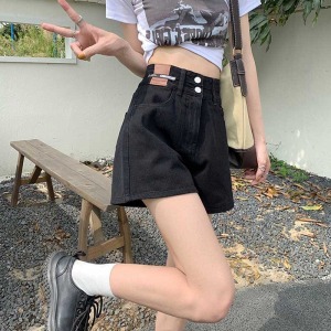 RM10209#梨型身材穿搭牛仔遮肉a字短裤大码女胖mm高腰阔腿遮胯显瘦