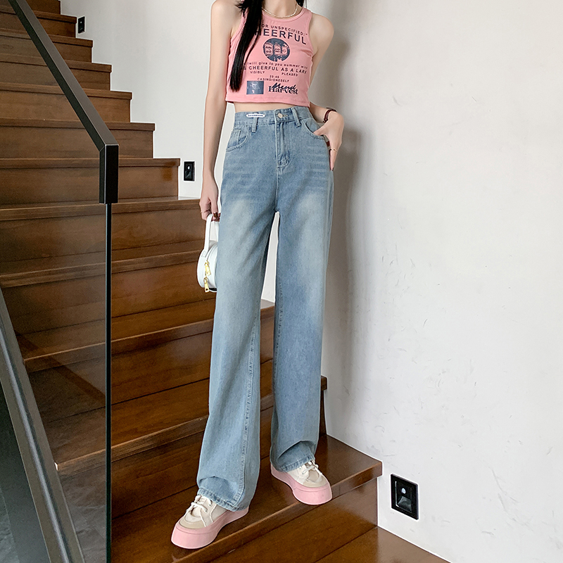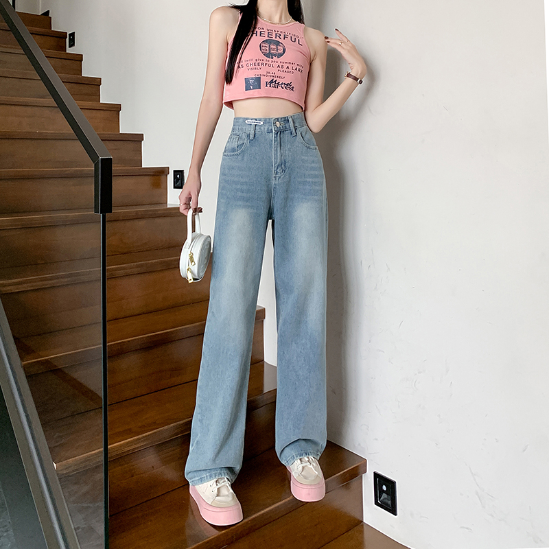 RM10237#复古百搭牛仔裤女高腰显瘦直筒裤阔腿裤拖地裤长裤
