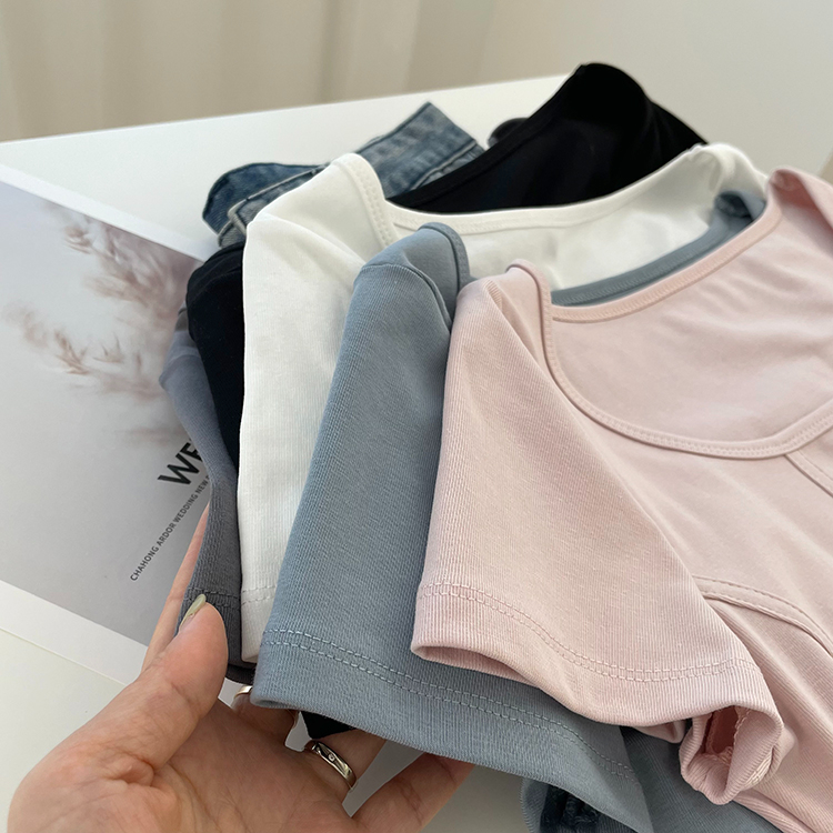 RM10321#纯棉后包条210克40支92棉8氨纶 短袖T恤女纯色 天猫抖音质量