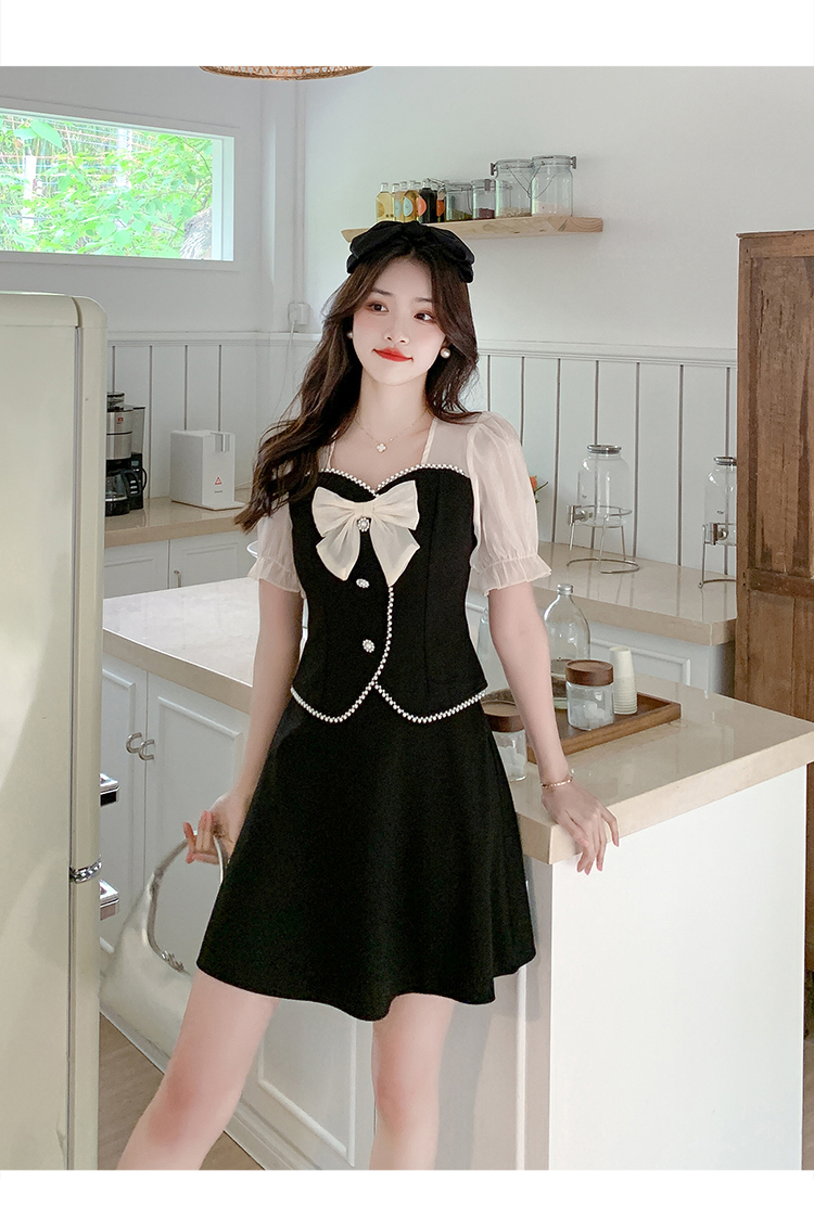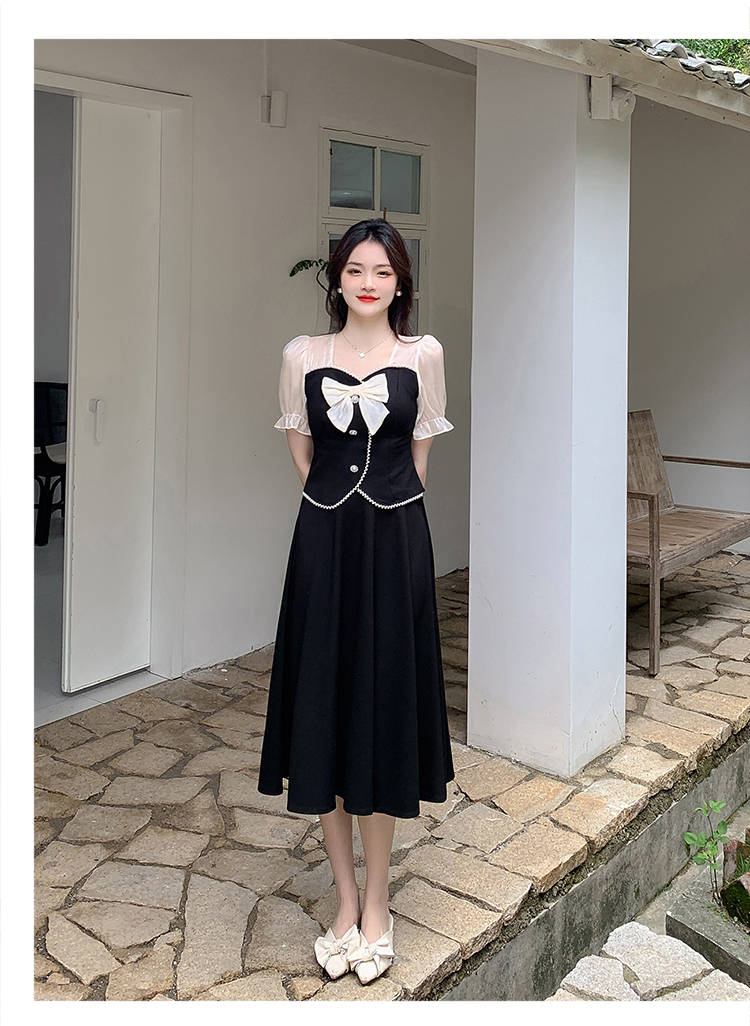 RM10791#夏季新款拼接蝴蝶结法式小香风上衣甜美温柔半身裙两件套