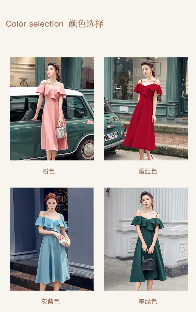 RM10800#连衣裙女新款 吊带露肩荷叶边显瘦过膝姐妹裙伴娘裙