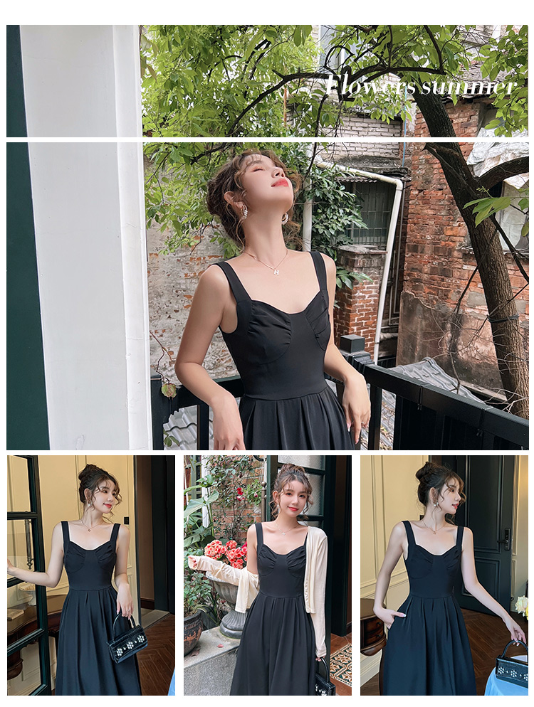 RM10805#新款赫本风小黑裙御姐法式气质显瘦黑色吊带女简约长裙