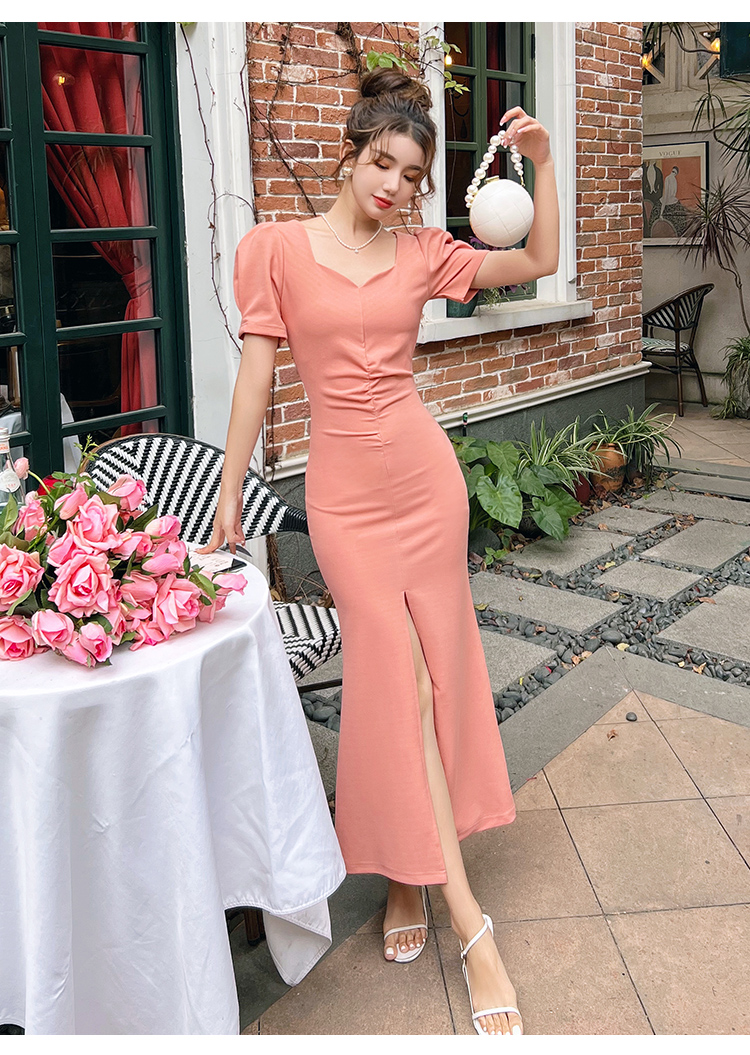 RM10811#气质女神 自制款短袖连衣裙女夏季新款高品质紧身显瘦包臀长裙