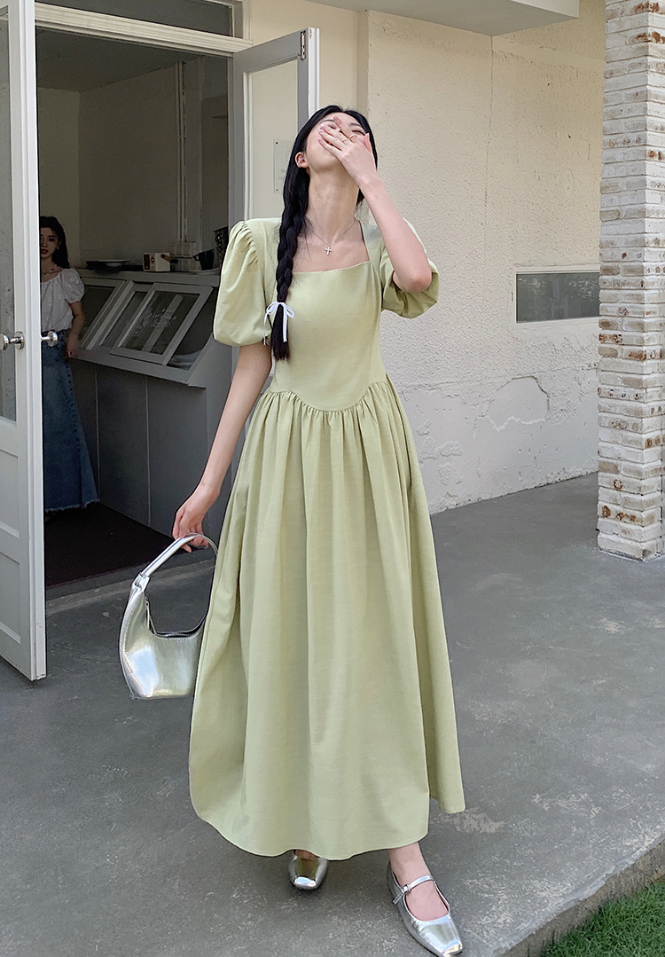 RM10899#大码女装法式高级感韩版气质淑女温柔风收腰泡泡袖连衣裙夏季