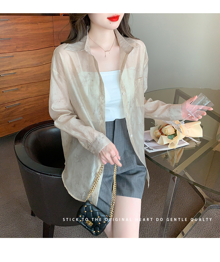 RM11015#夏季新款防紫外线水墨晕染薄款微透宽松百搭防晒衬衫