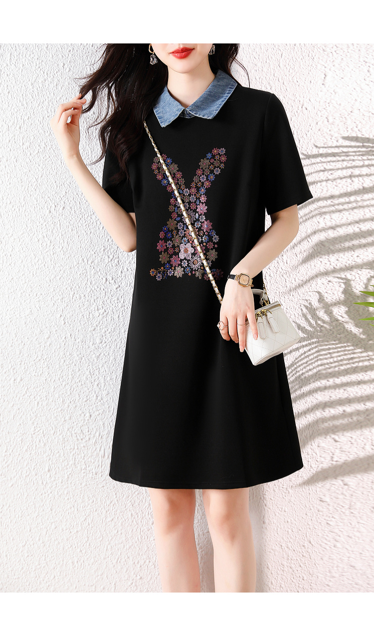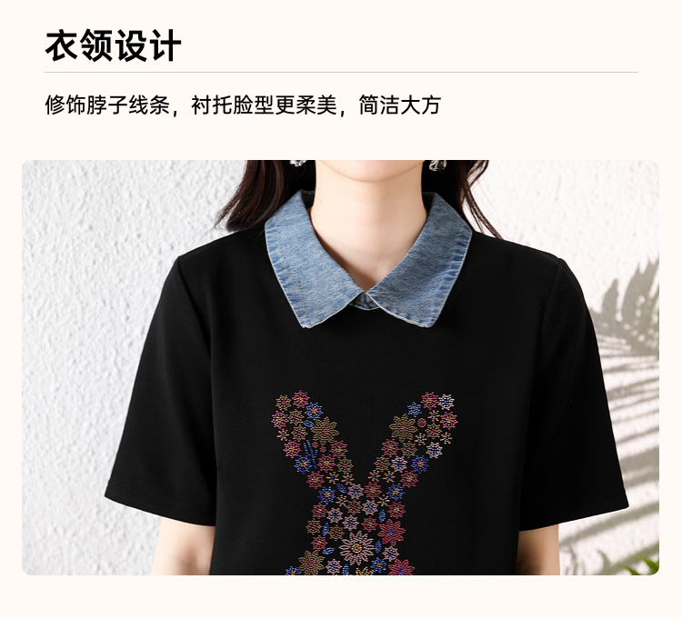 RM11022#轻奢时尚翻领烫钻卫衣裙短袖连衣裙女