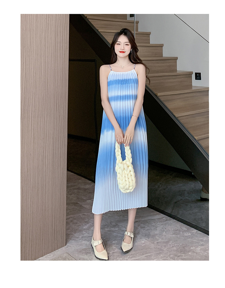 RM11807#法式蓝色渐变吊带设计感连衣裙女2023夏季新款海边度假裙子