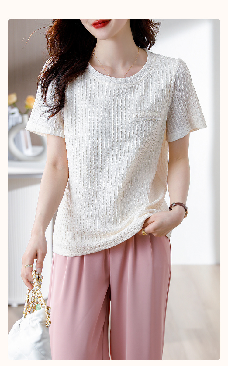 RM12629#洋气短袖T恤女2023年夏季新款百搭漂亮气质优雅圆领上衣