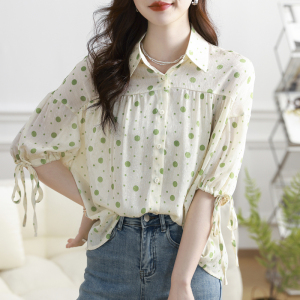 RM12703#飘逸仙女风2023夏季韩版衬衣女波点百搭翻领短袖衬衫女